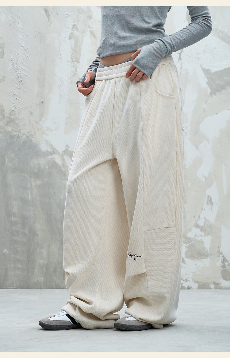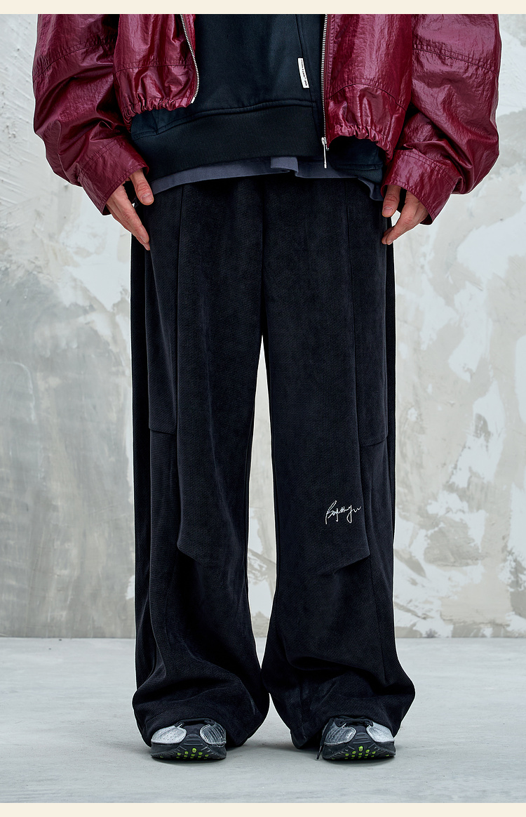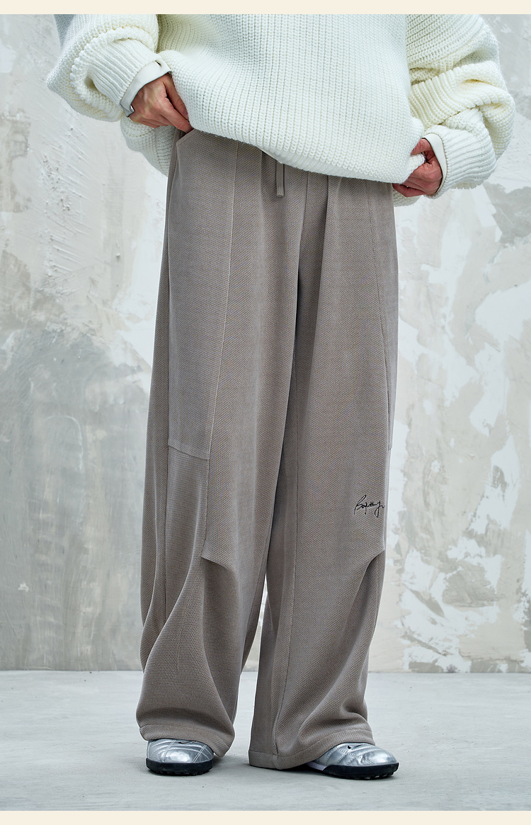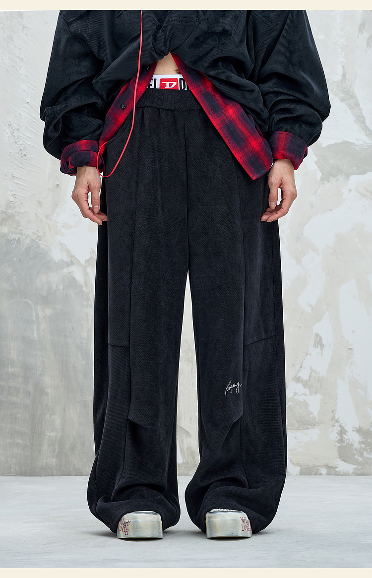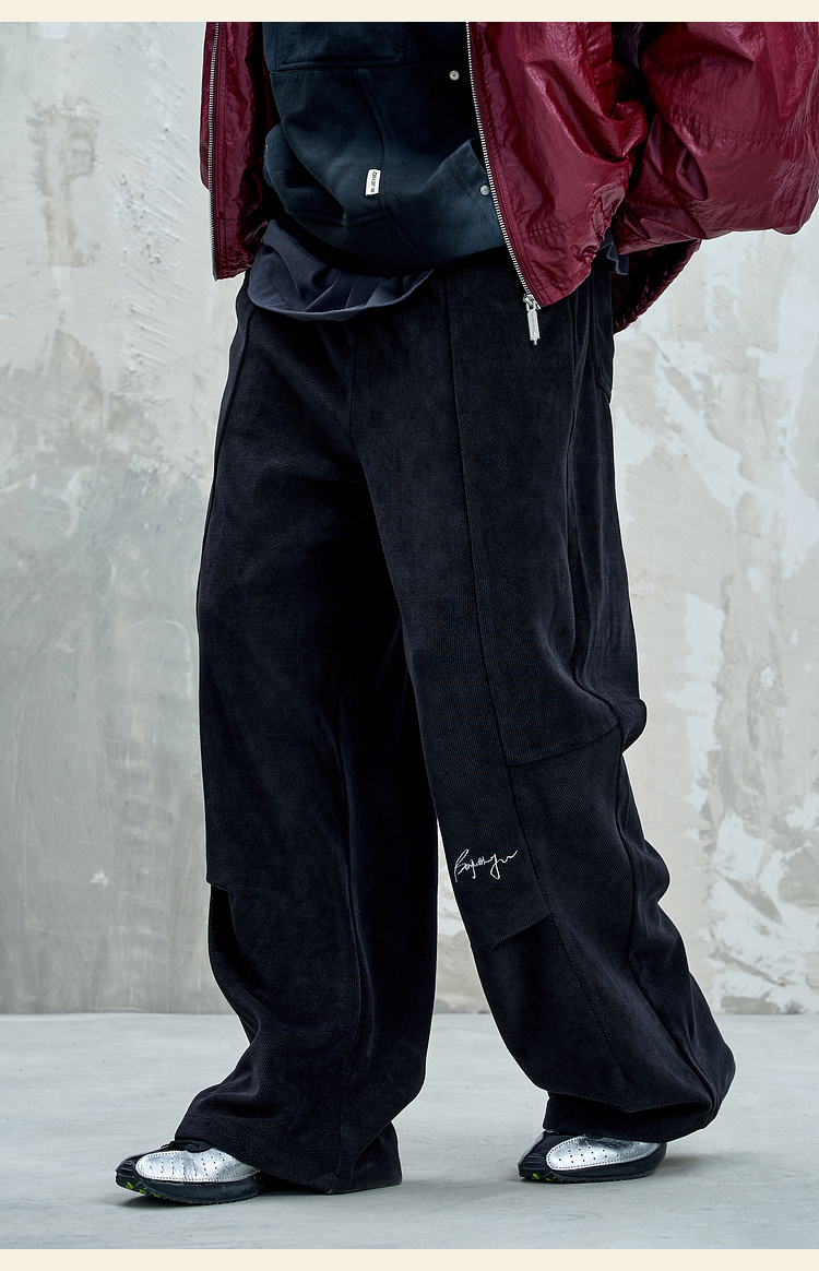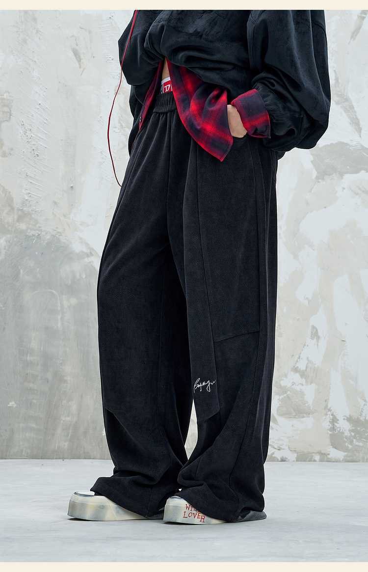 BJHG不计后果慵懒垂感休闲裤子男款秋季刺绣设计感针织阔腿裤子女