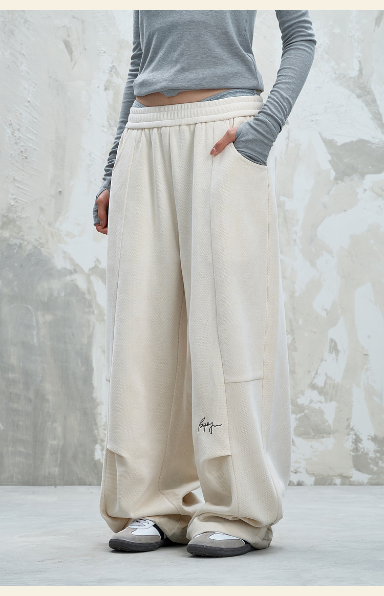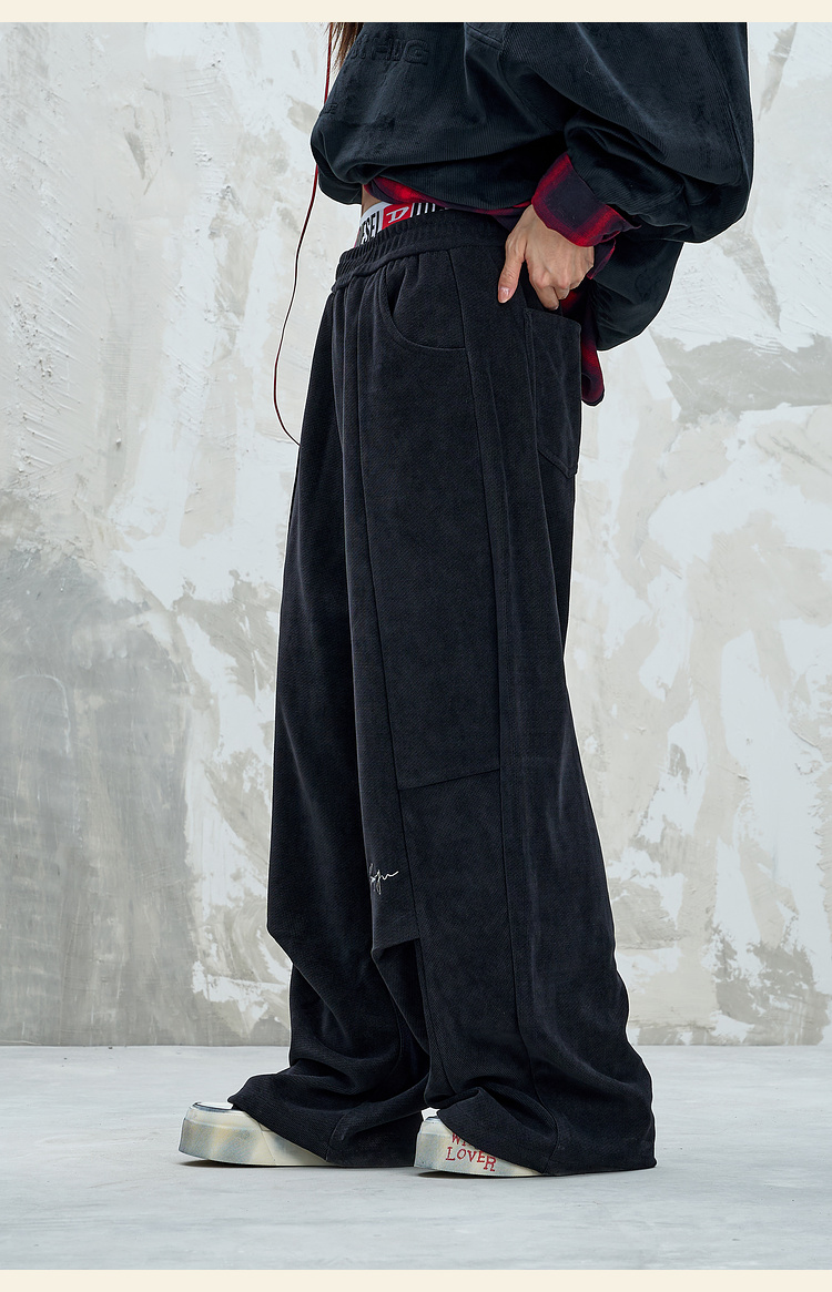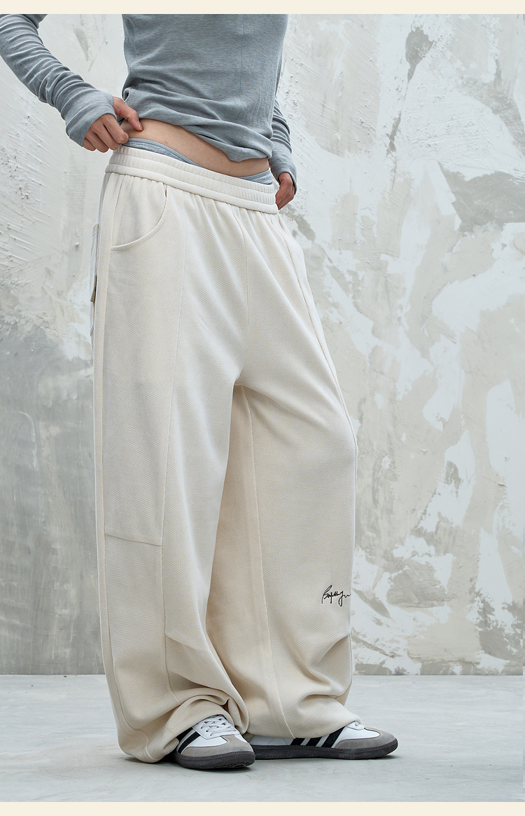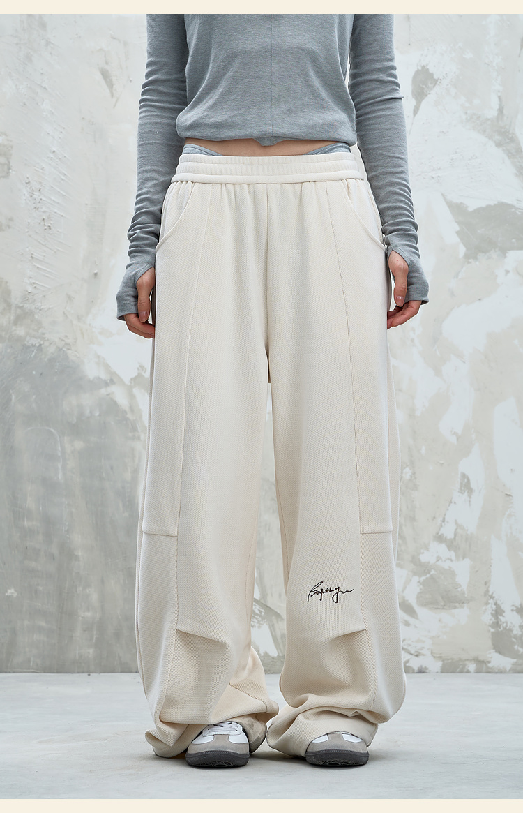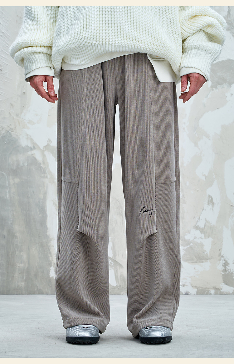 BJHG不计后果慵懒垂感休闲裤子男款秋季刺绣设计感针织阔腿裤子女