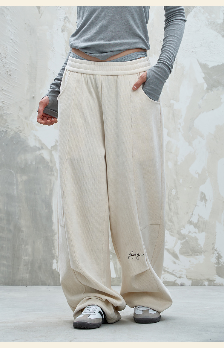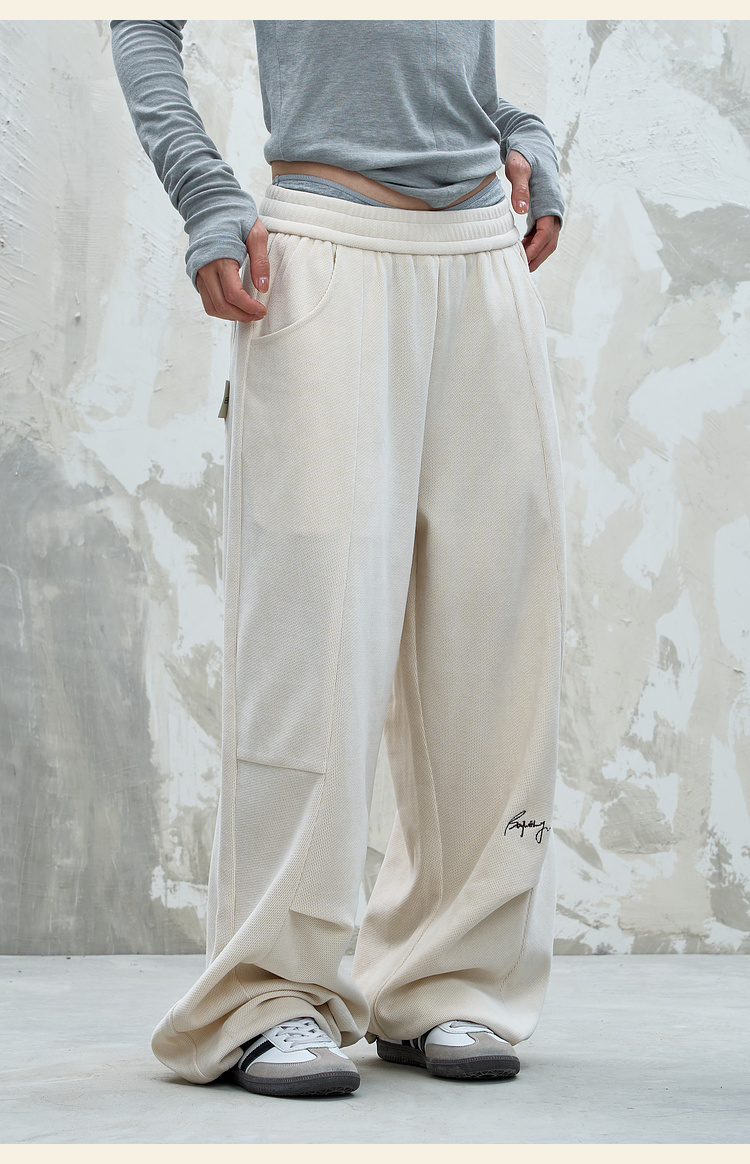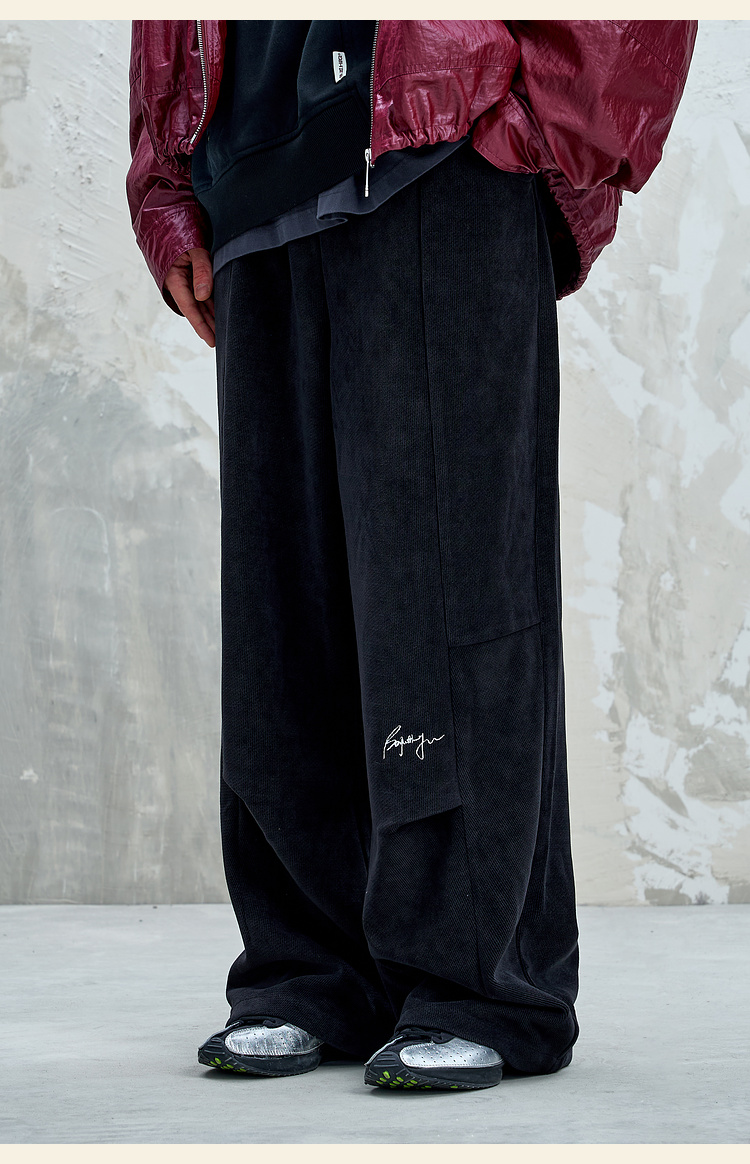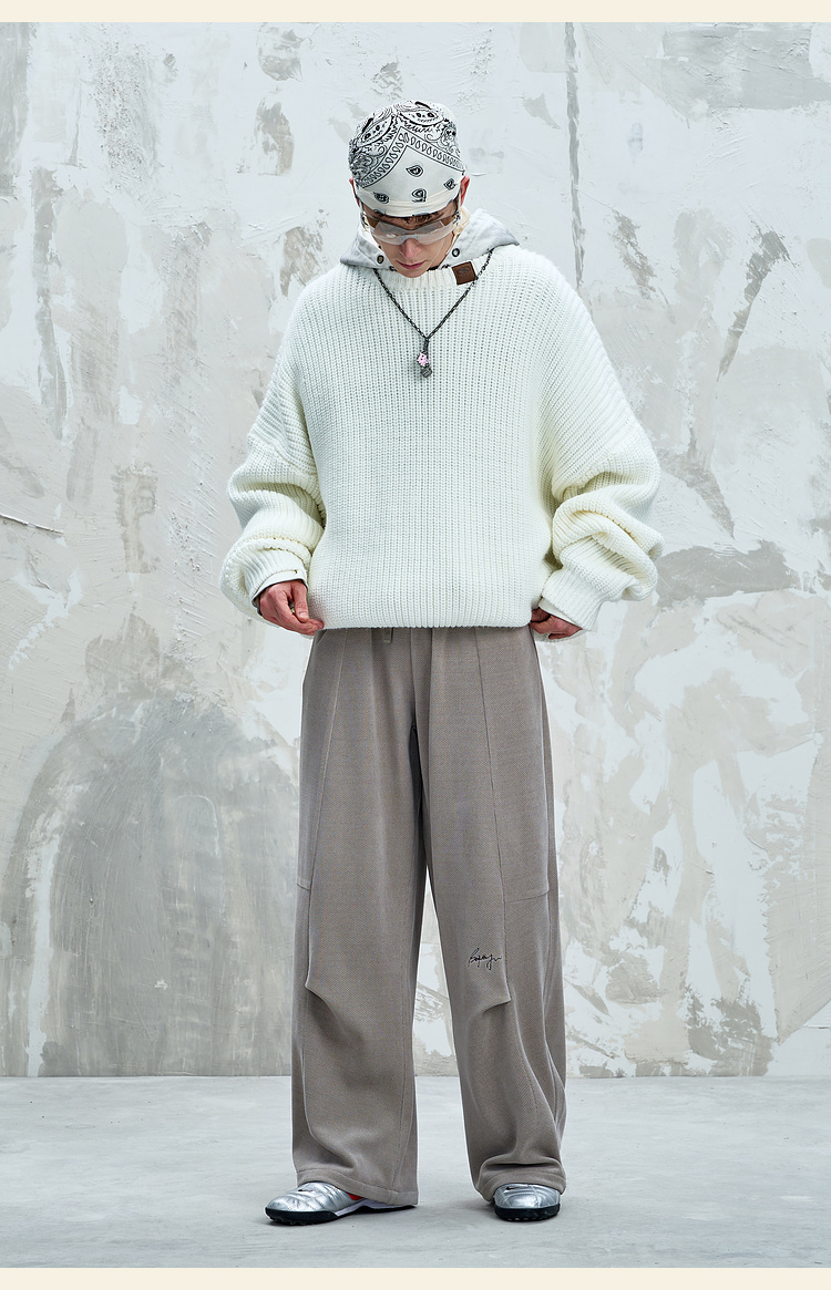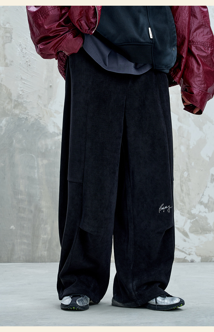 BJHG不计后果慵懒垂感休闲裤子男款秋季刺绣设计感针织阔腿裤子女