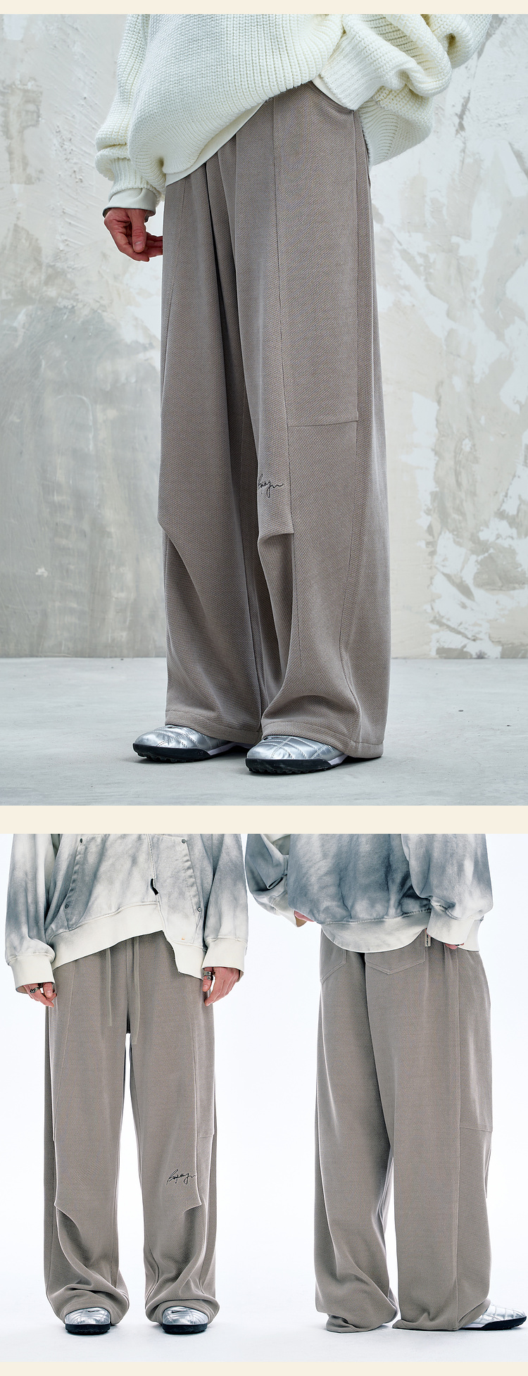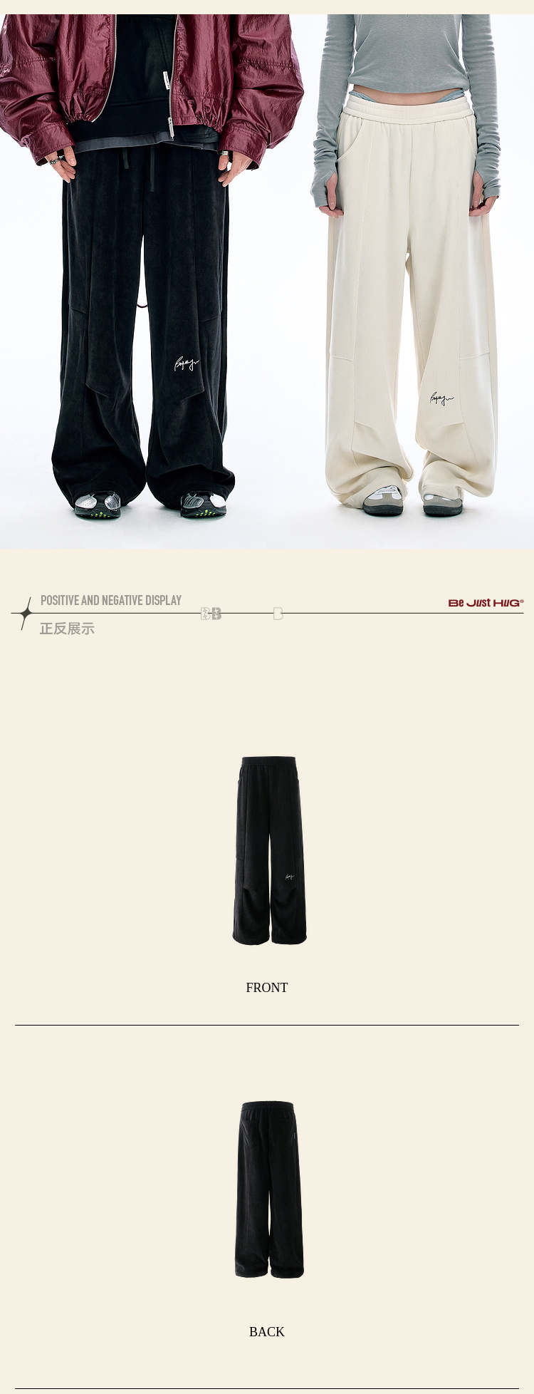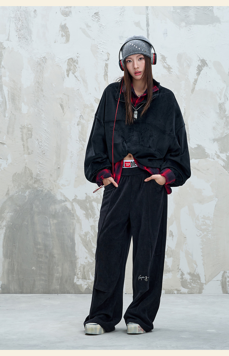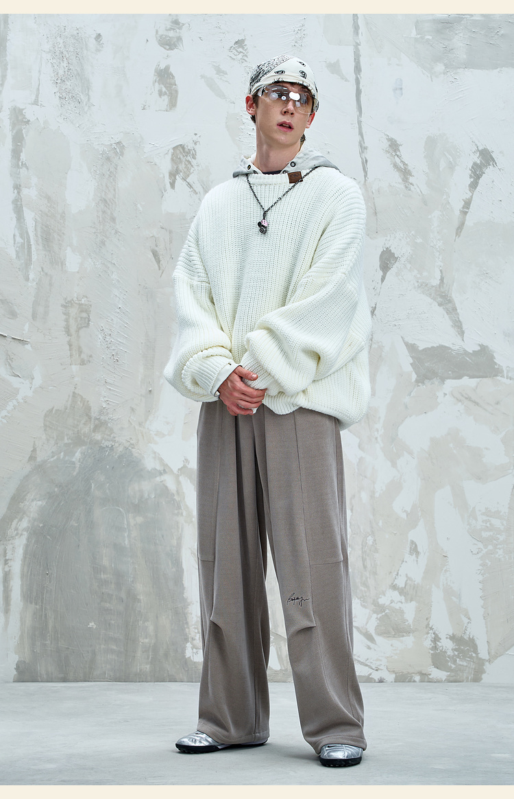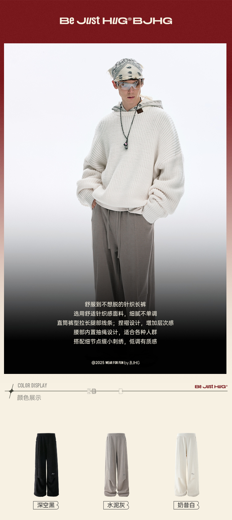 BJHG不计后果慵懒垂感休闲裤子男款秋季刺绣设计感针织阔腿裤子女