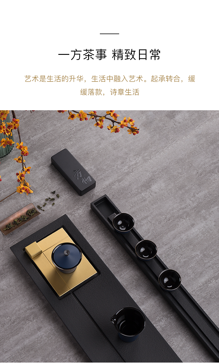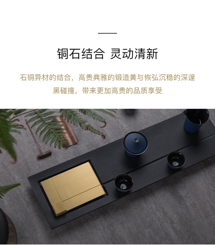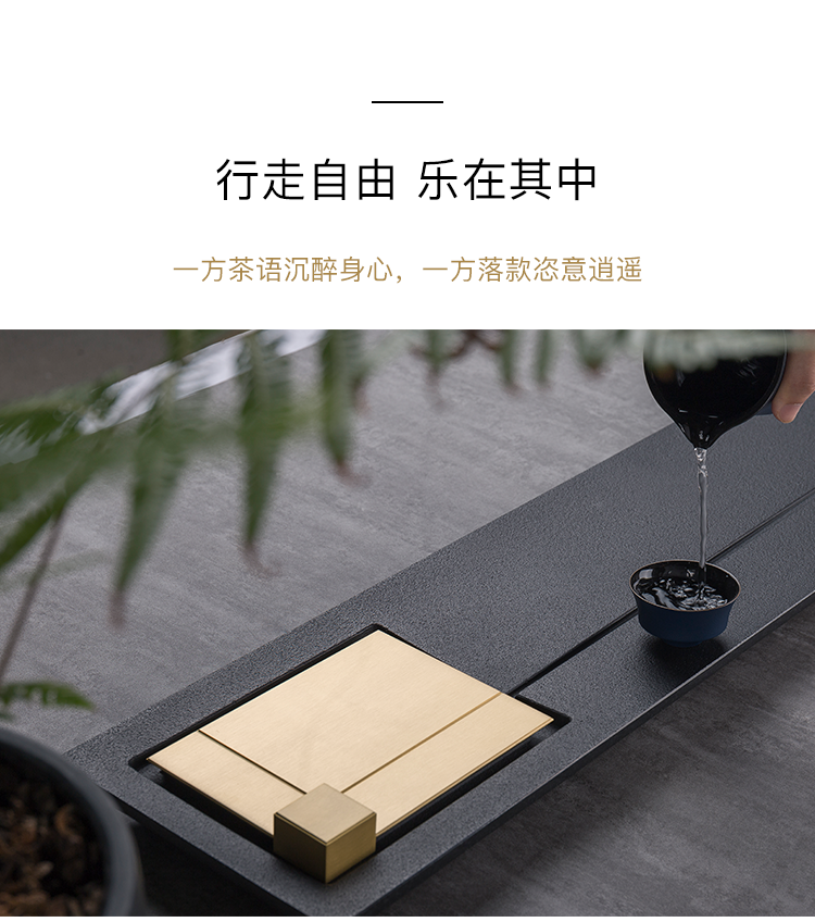 原创乌金石茶盘家用客厅轻奢现代简约嵌入排水式长方形大茶台茶海