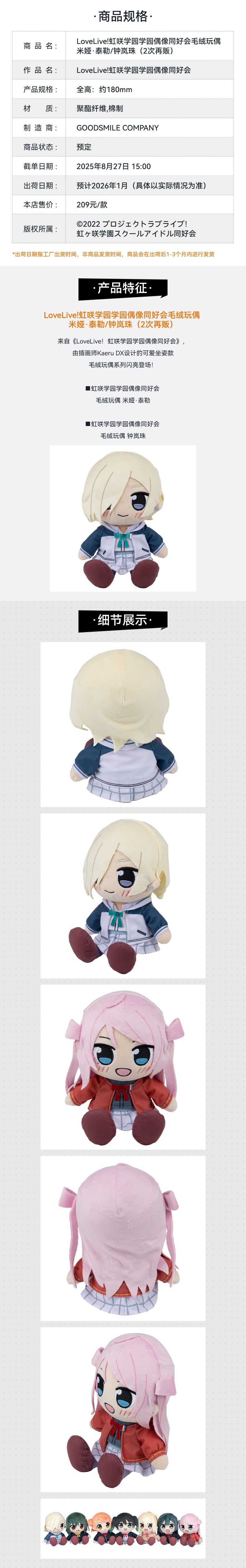 【GSC补款】LoveLive!虹咲学园学园偶像同好会毛绒玩偶 米娅·泰勒/钟岚珠