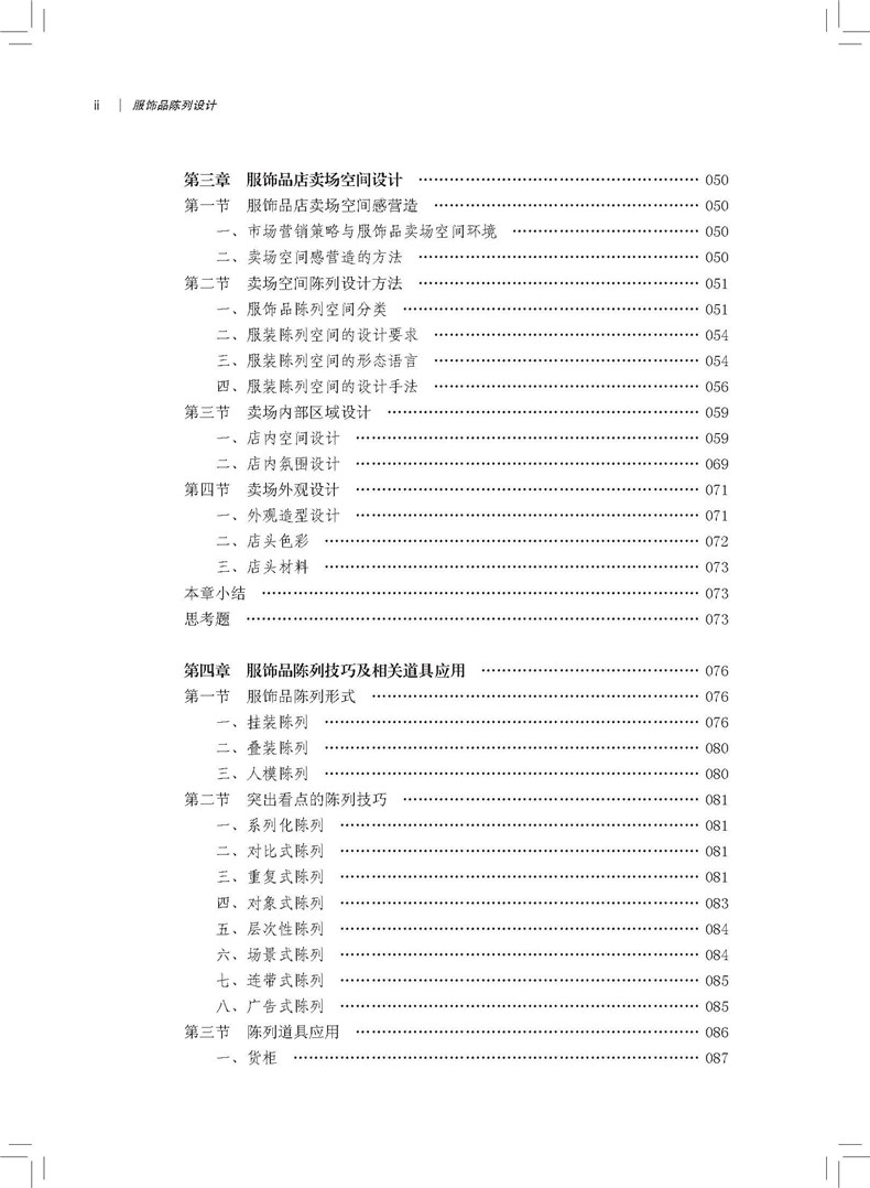 第一节 服饰品陈列形式… ……………………………………………………… 076