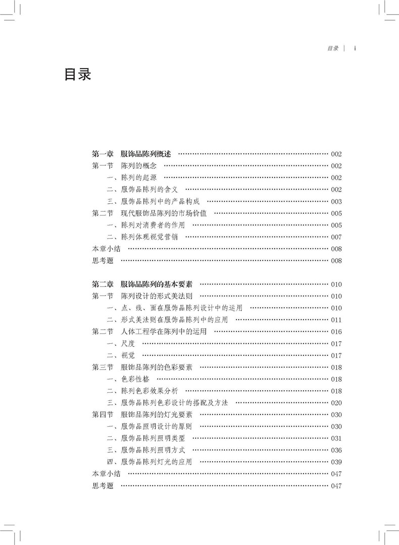 二、服饰品陈列的含义… …………………………………………………… 002