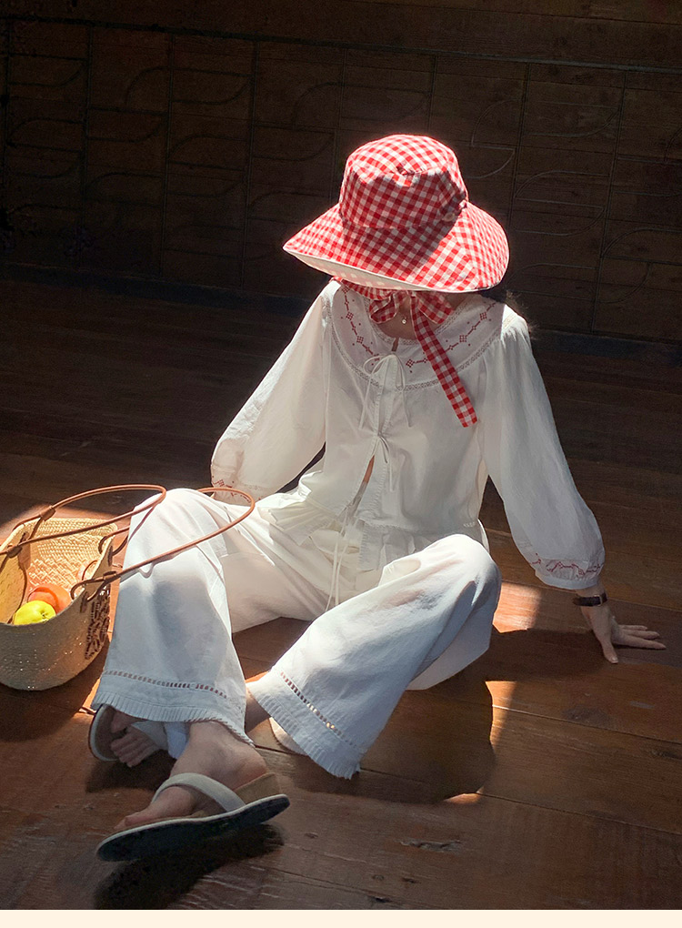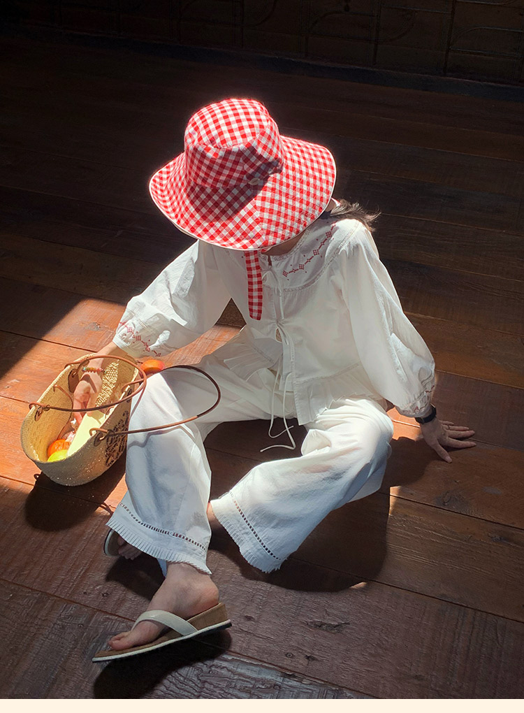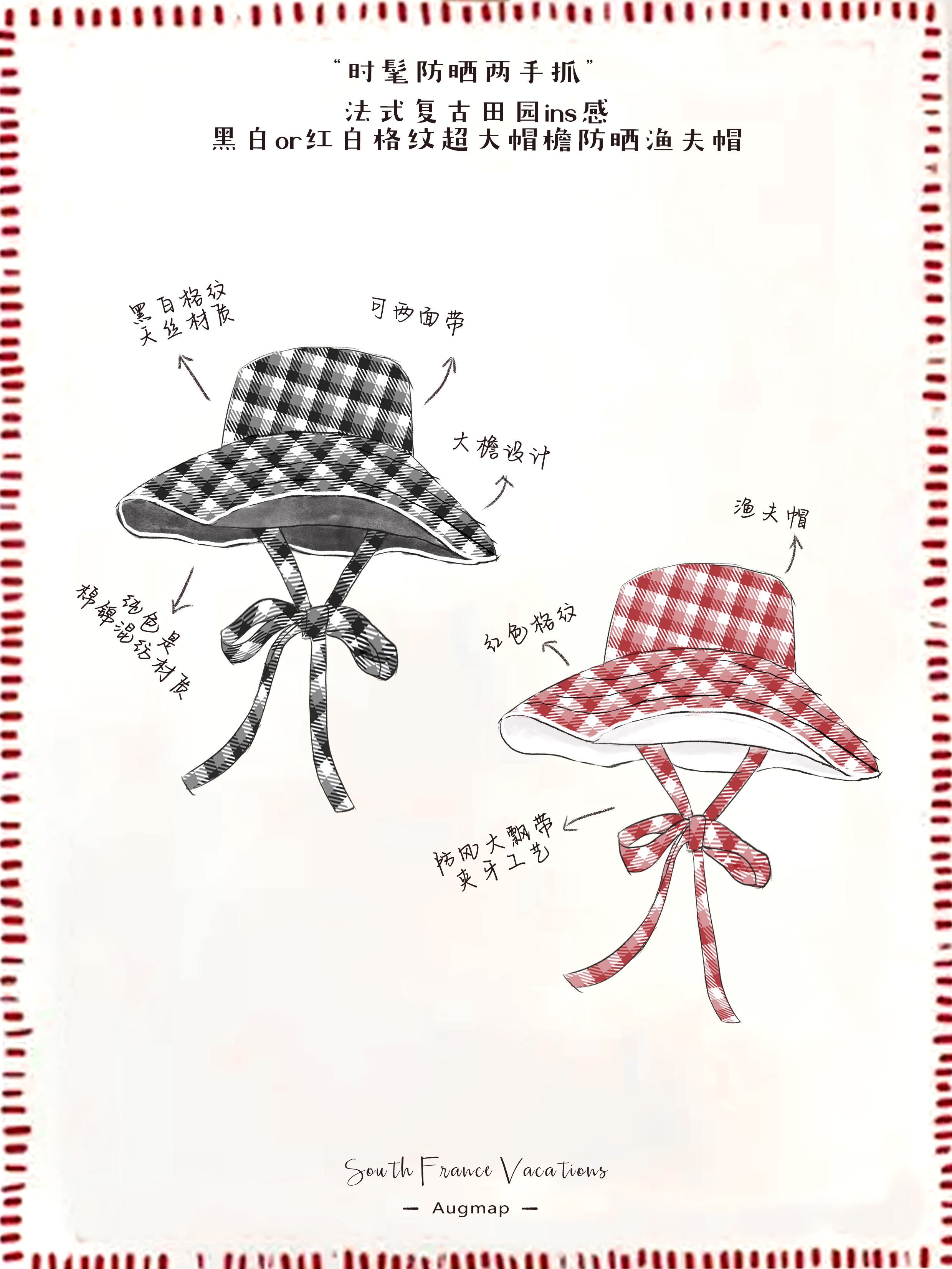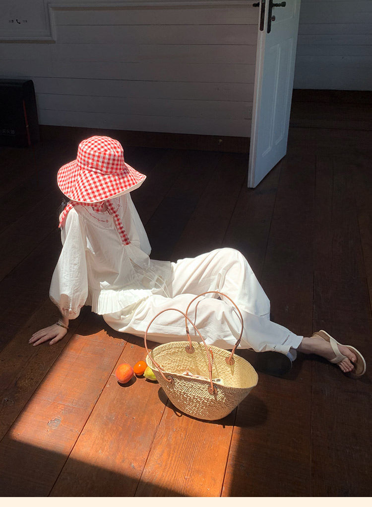 浮生八记/25B103/法式复古田园大帽檐防晒渔夫帽