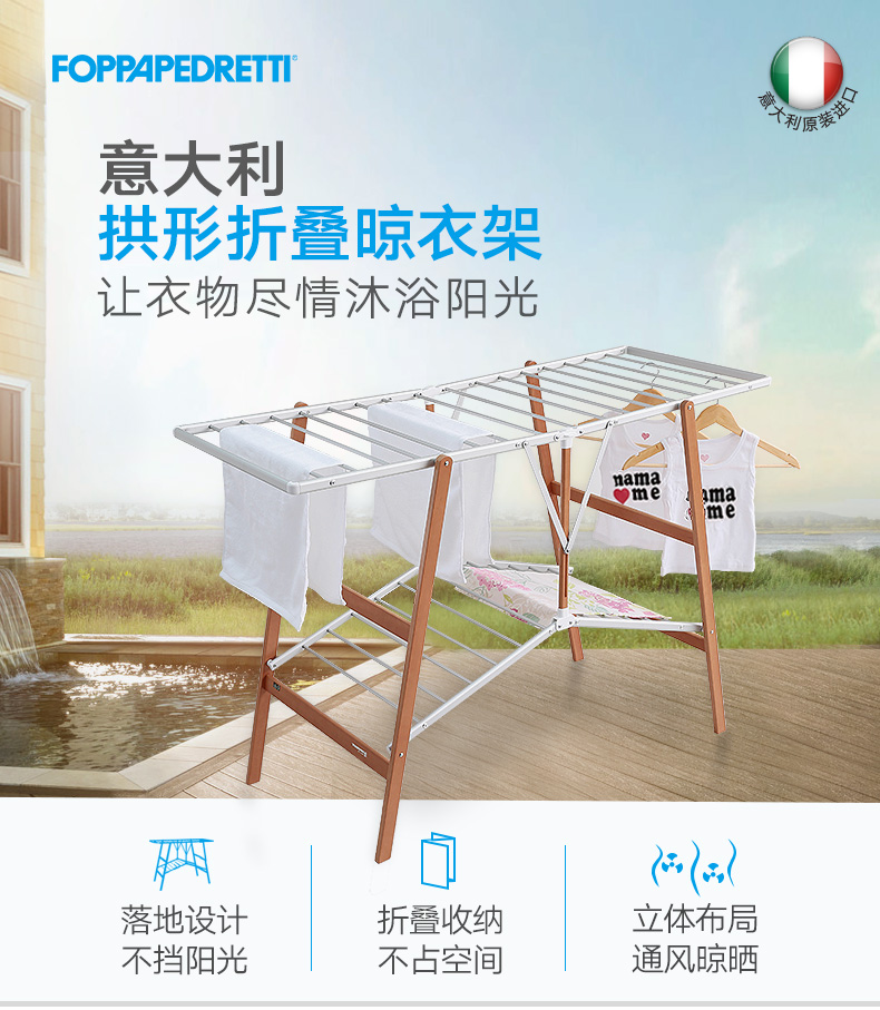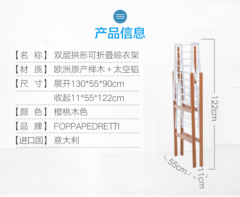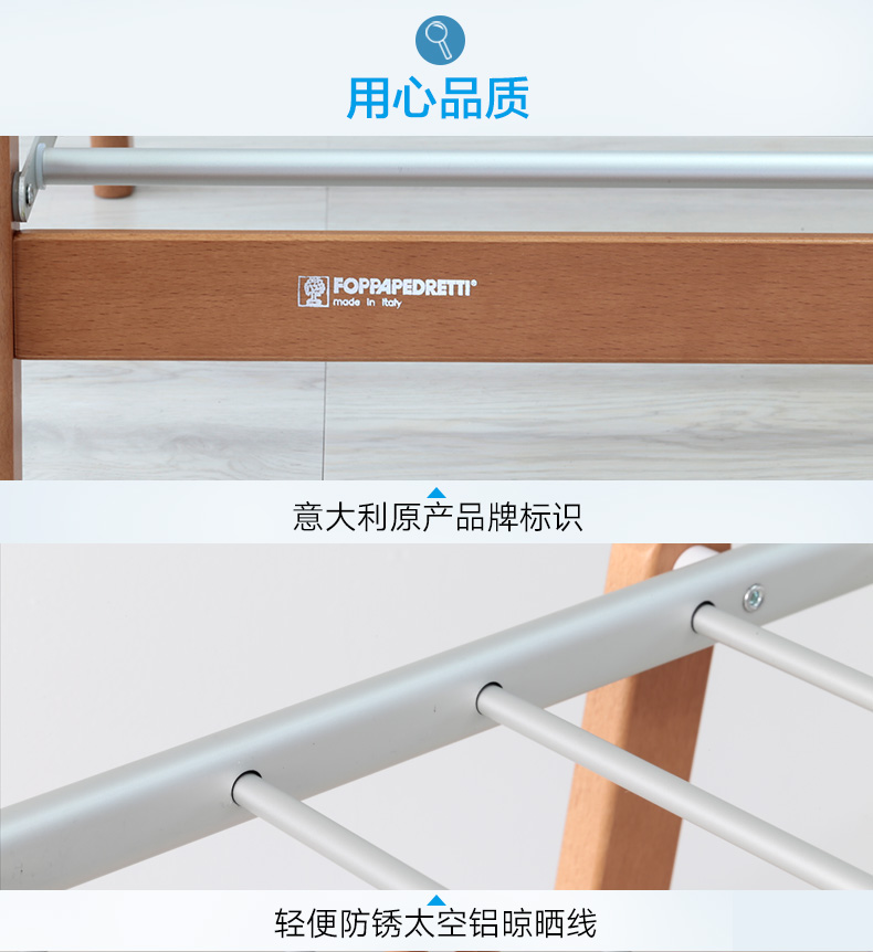 利快FOPPAPEDRETTI意大利进口榉木材质双层折叠晾衣架晒衣架