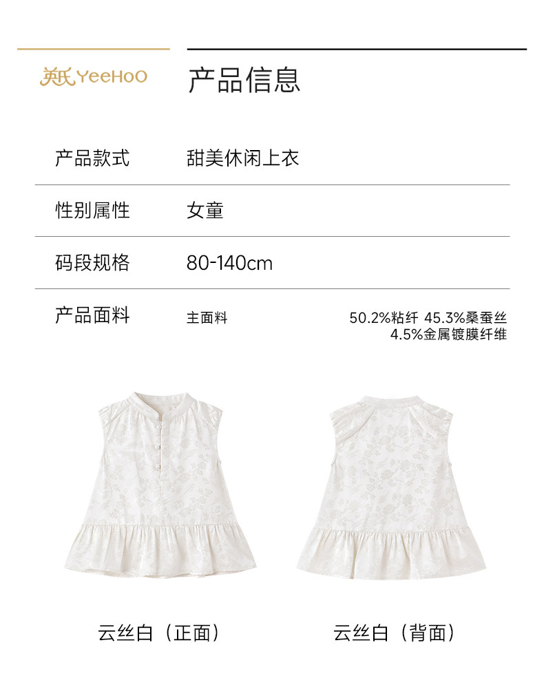 英氏女童T恤夏季新款短袖金丝杏上衣纯棉儿童打底衫YRTCJ2S044A