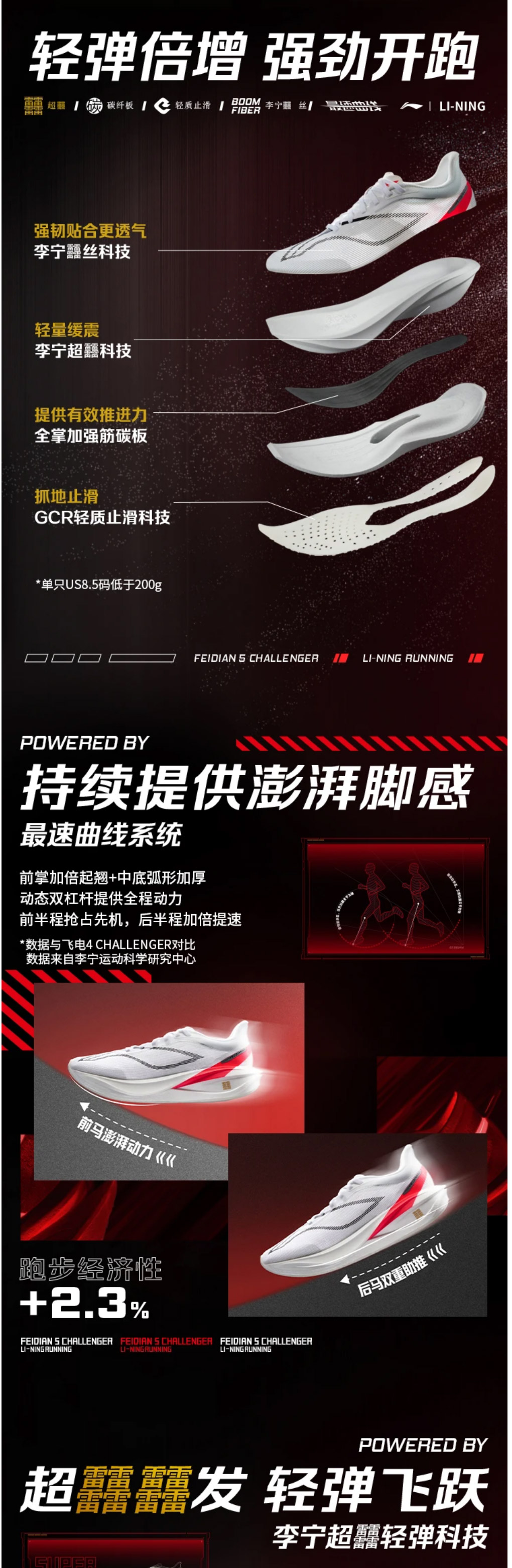 李宁飞电5challenger男女同款䨻科技高回弹竞速跑鞋ARMV001