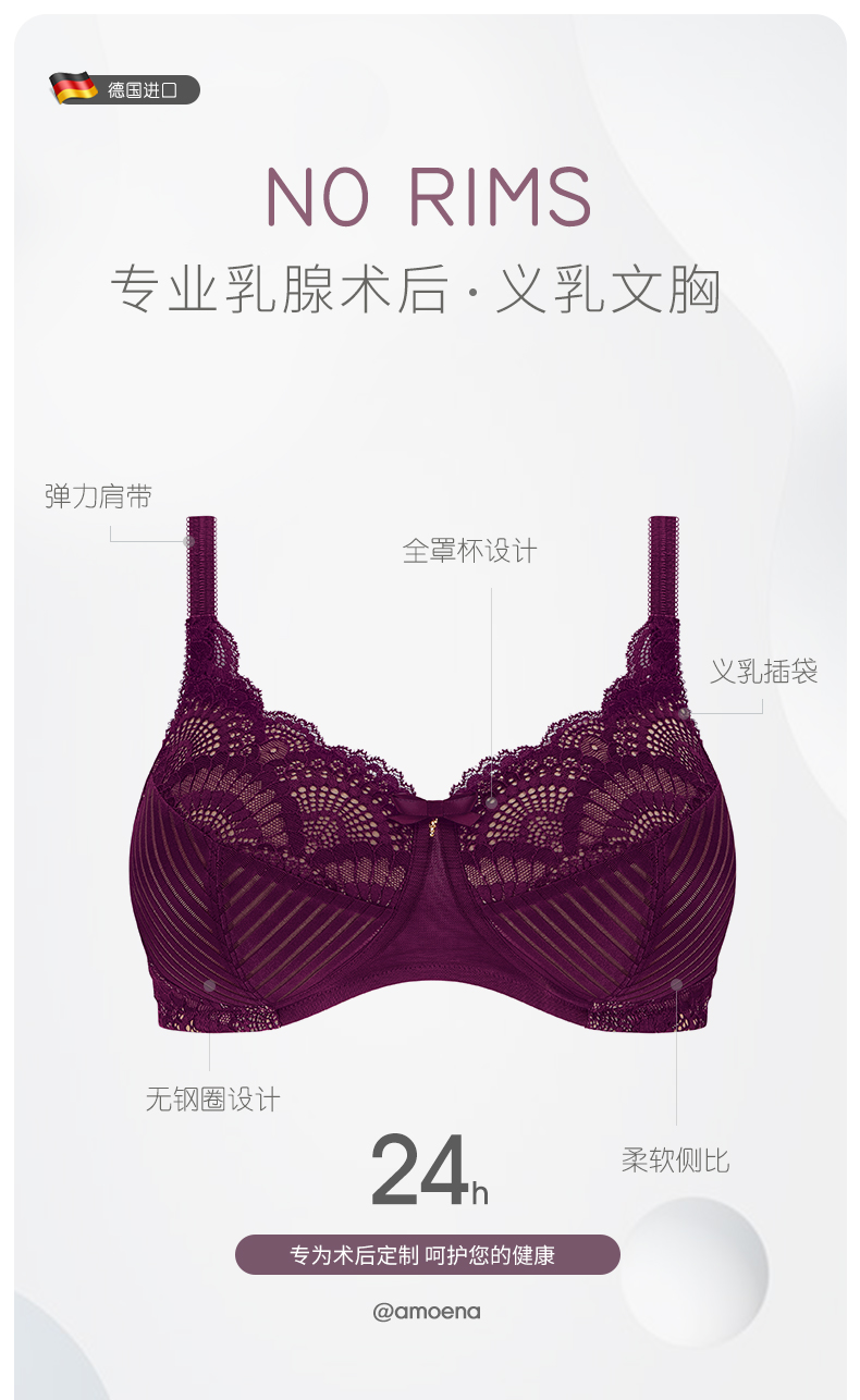【优惠详情咨询客服】爱蒙娜amoena 德国进口义乳文胸乳腺术后专用胸罩无钢圈内衣45055色有罩杯 (义乳专用文胸,不含义乳)