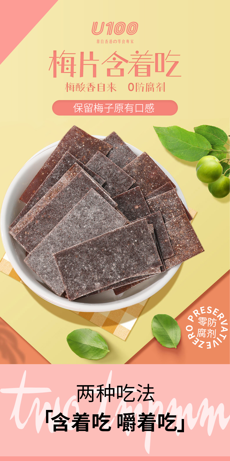 U100梅片系列(蜜饯)22g 原味/紫苏味/百香果味/山楂味 纯正酸甜久久回甘 051140/051141/152419/152420
