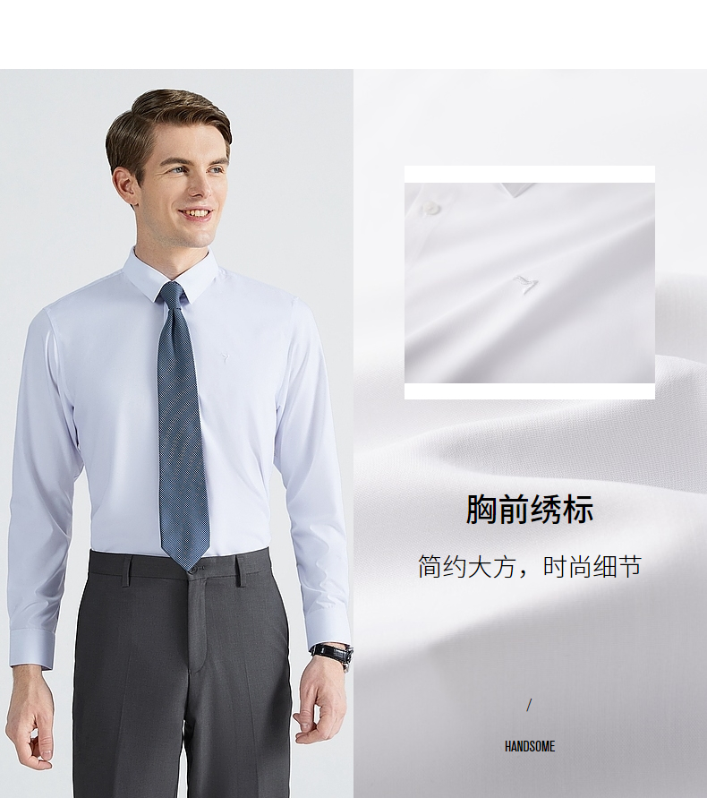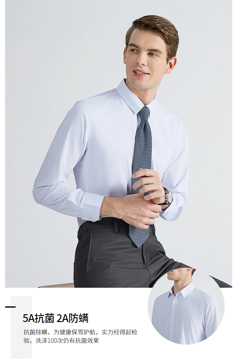 【抗菌】柒牌正装长袖衬衫春秋新款男士时尚百搭商务翻领防螨衬衣 124A70400