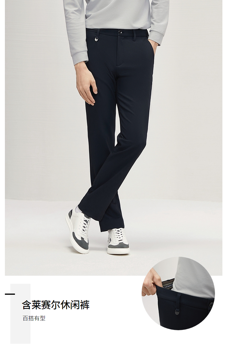 【含莱赛尔】柒牌男装休闲裤2024秋冬新款商务修身男士直筒长裤子127H70740