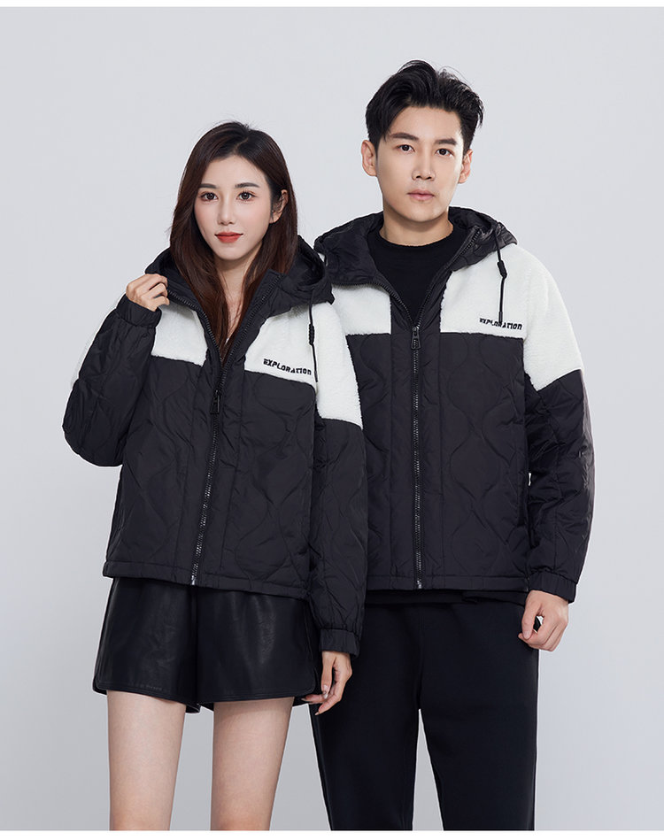 独特的拼接撞色设计,这可是它成为时尚必备单品的关键因素。不同颜色的羽绒和羊羔毛拼接在一起,形成了鲜明而和谐的视觉对比。这种撞色效果就像是时尚大师精心调配的色彩组合,充满了艺术感和潮流感。无论是低调奢华的配色,还是大胆张扬的色彩碰撞,都能瞬间提升你的时尚品味,让你在人群中脱颖而出,成为时尚的焦点,无论搭配什么风格的内搭和下装都超级合适。