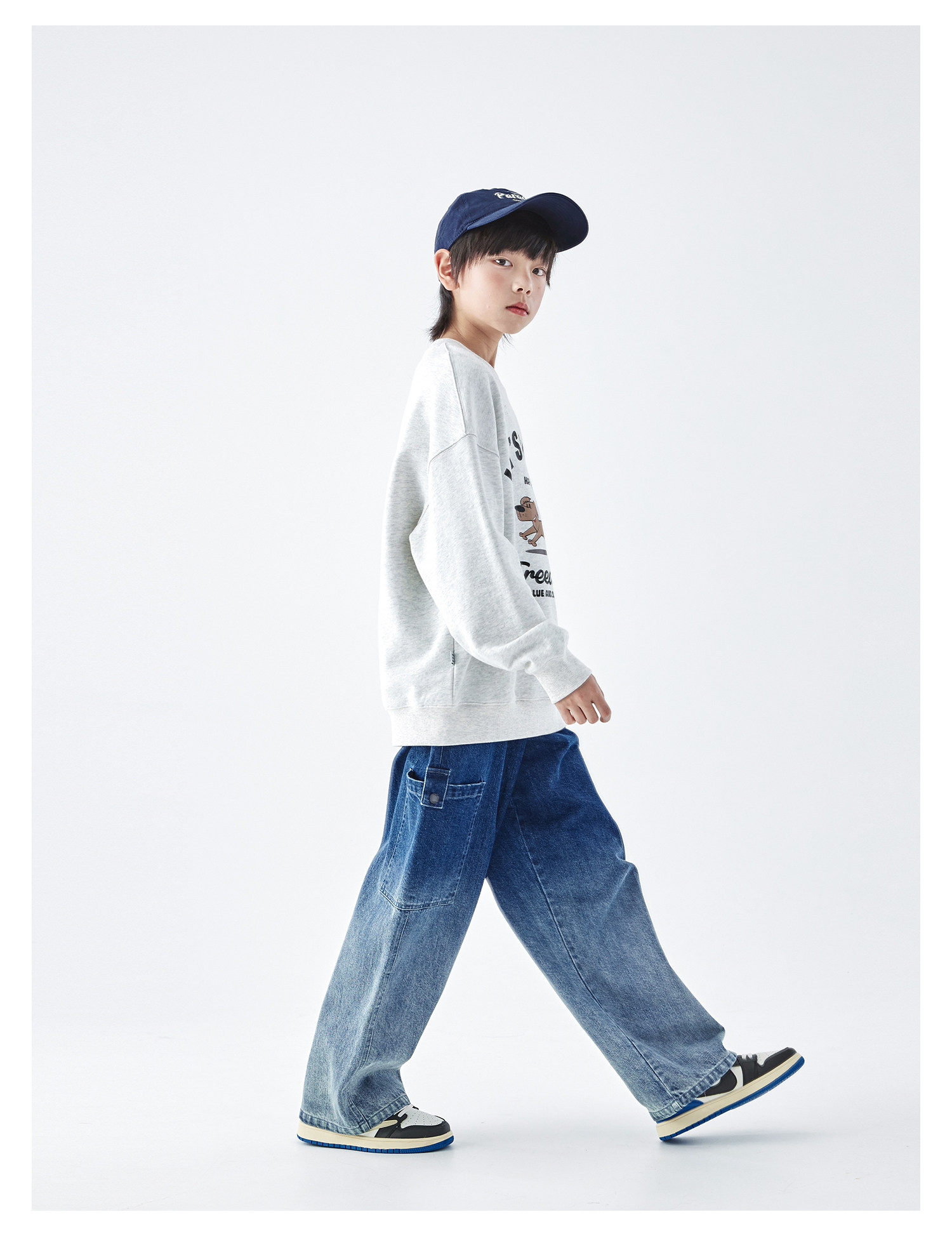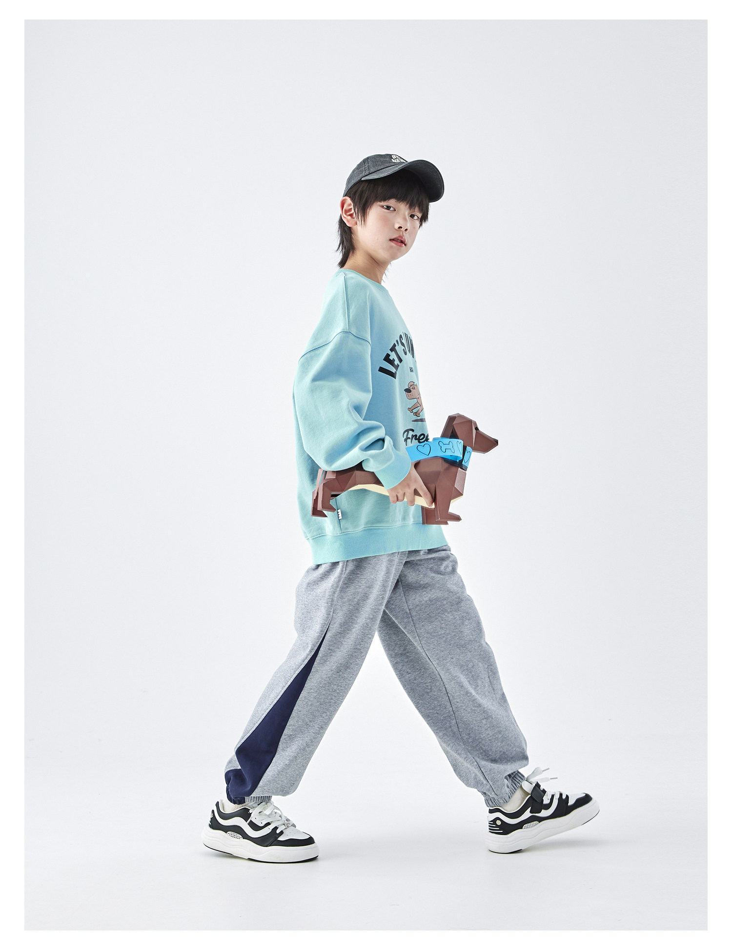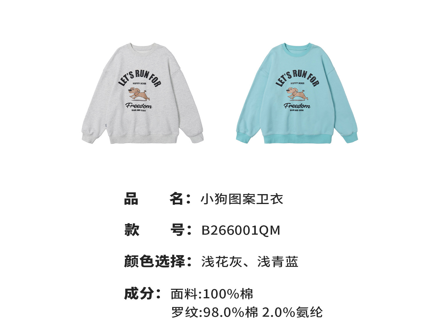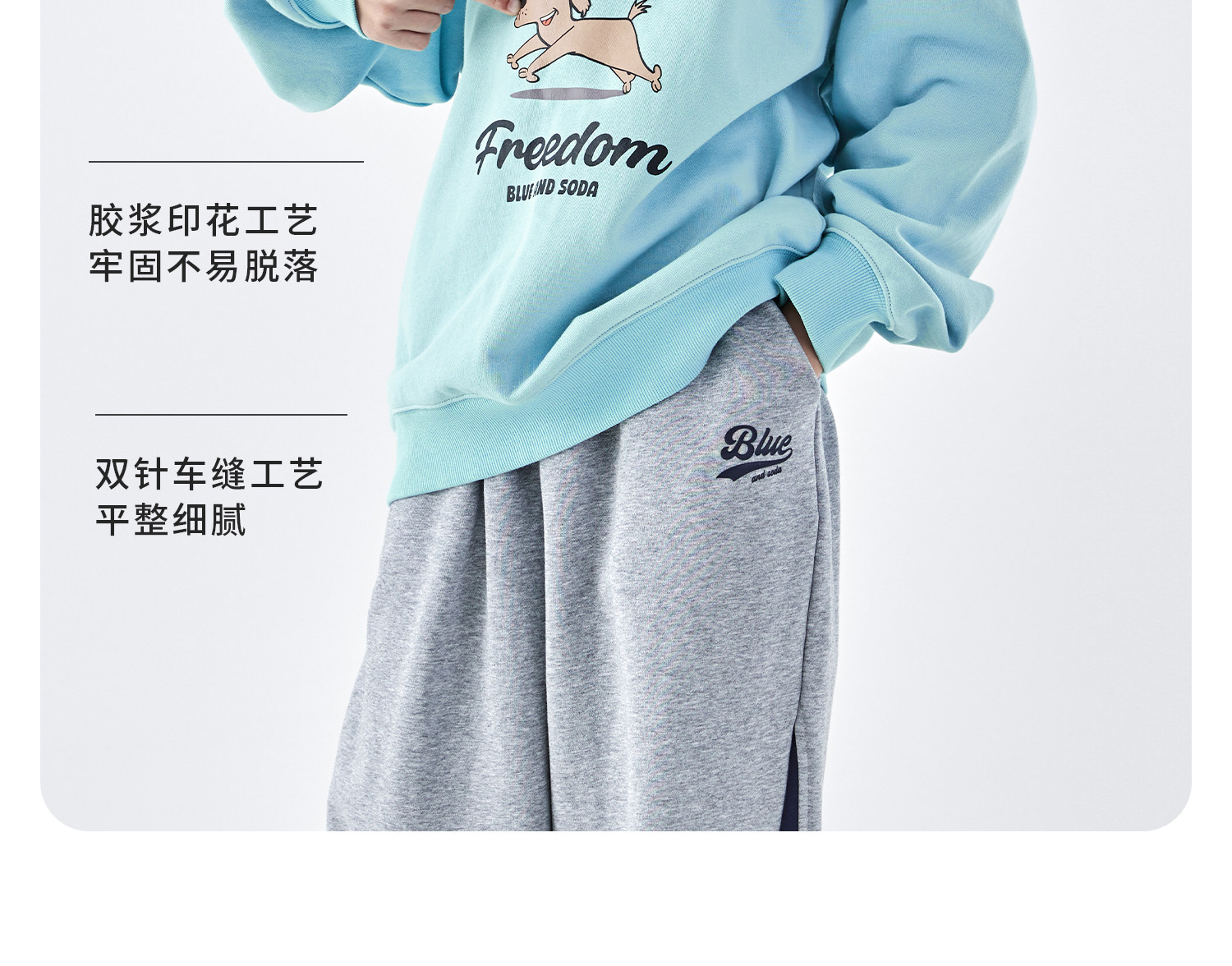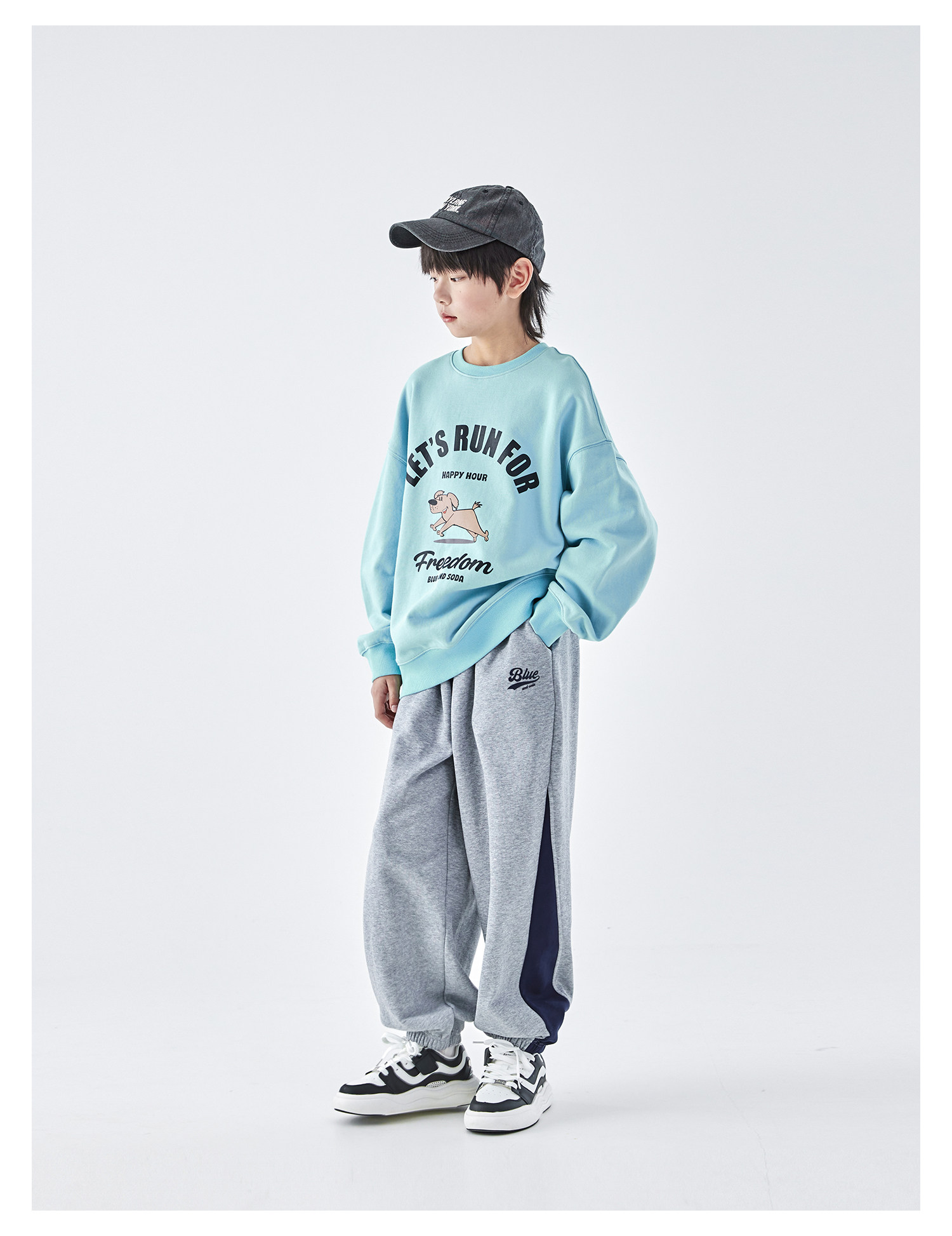 【代发】蓝汽水男童上衣青少年小狗图案印花全棉卫衣浅花灰/浅青蓝