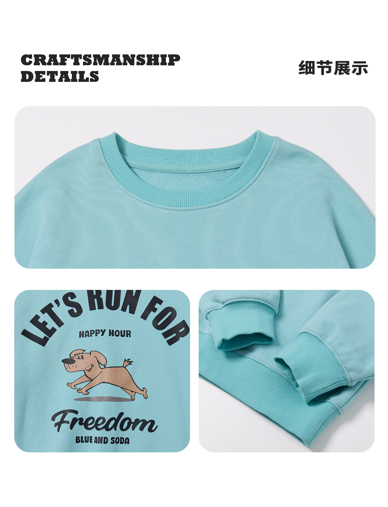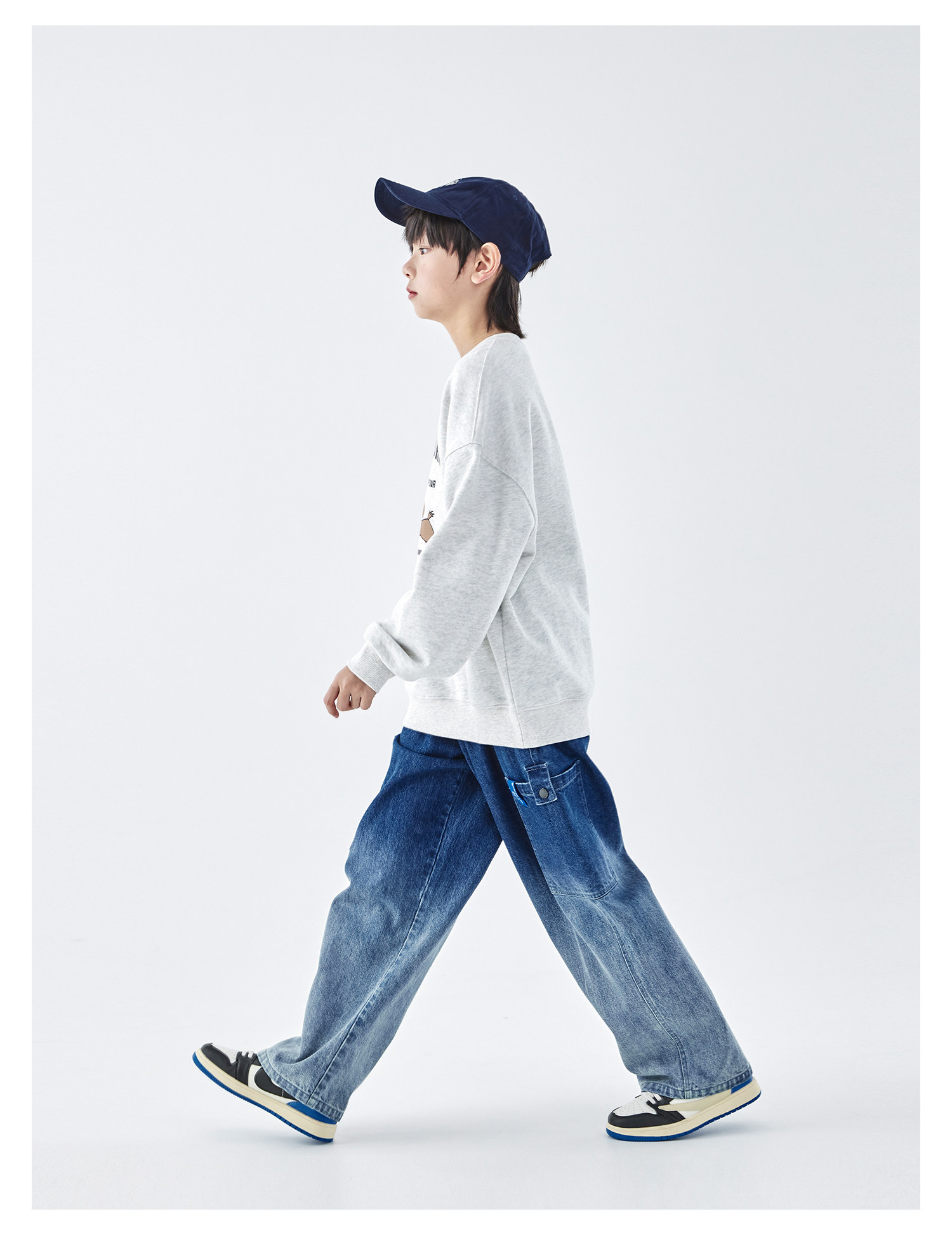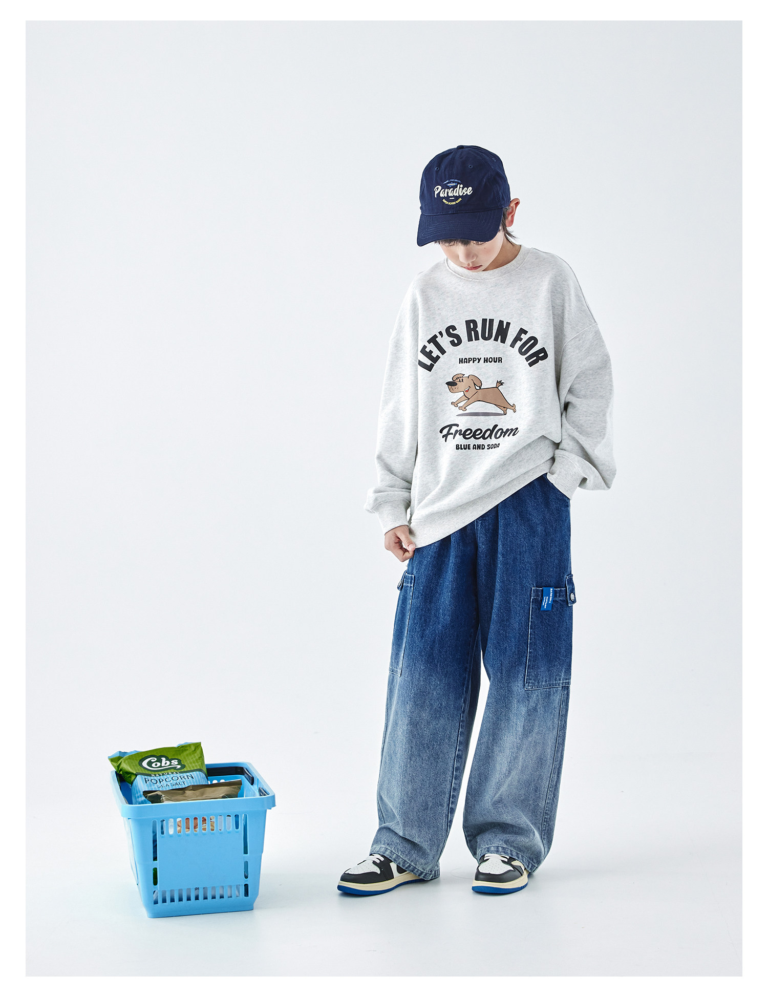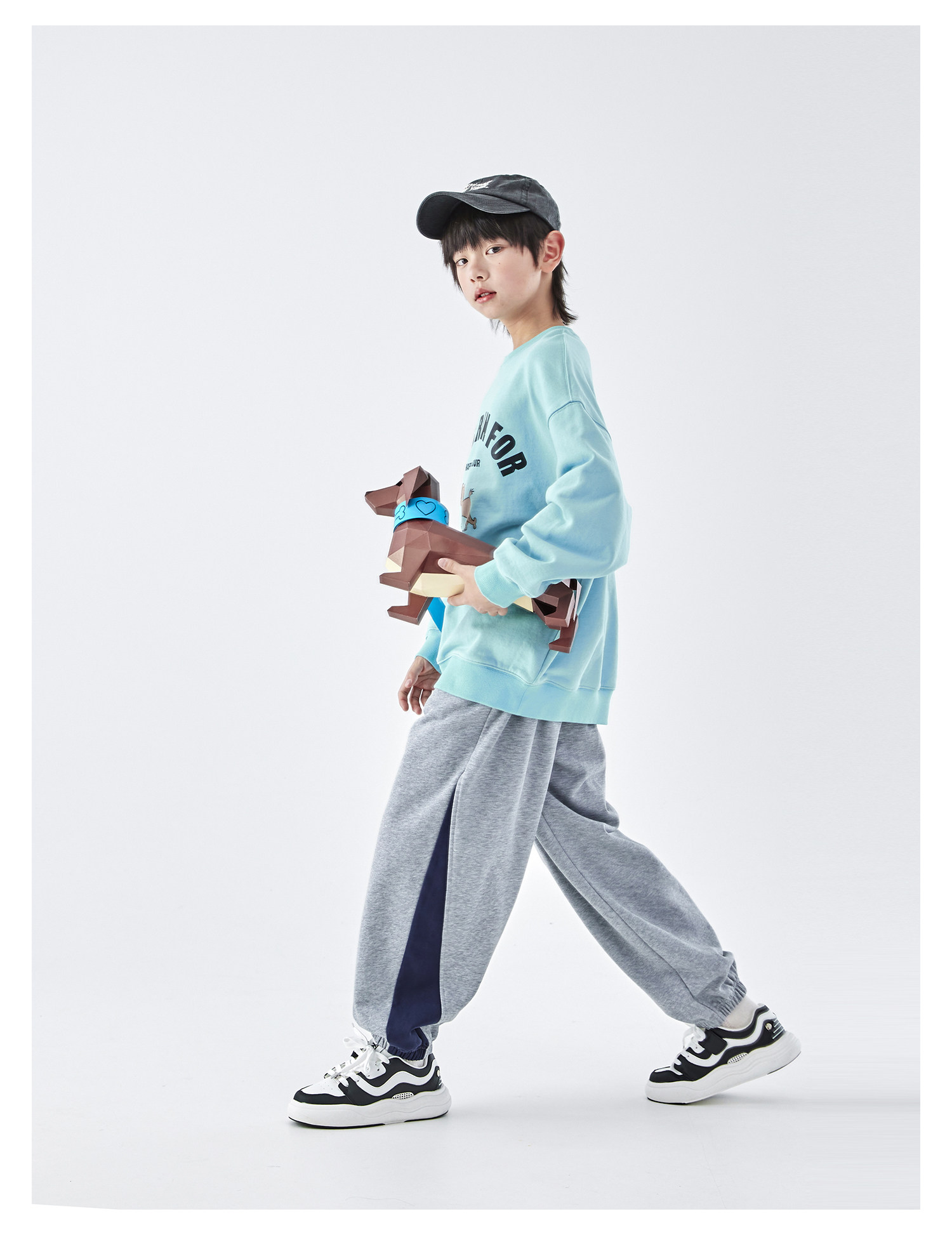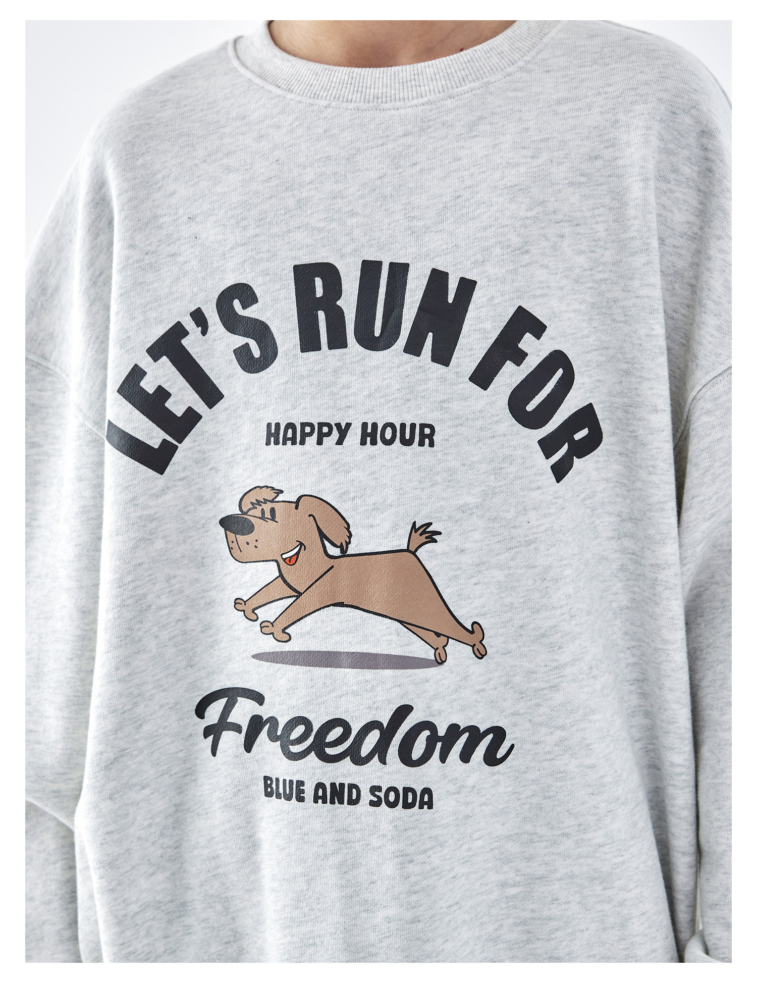 【代发】蓝汽水男童上衣青少年小狗图案印花全棉卫衣浅花灰/浅青蓝