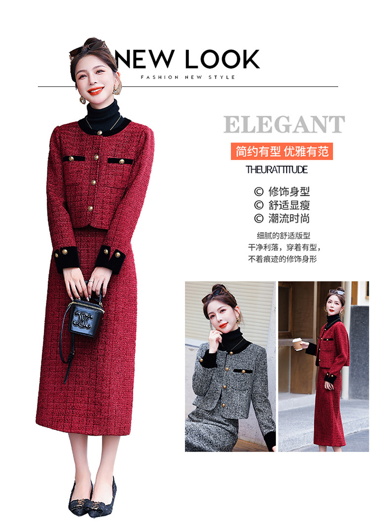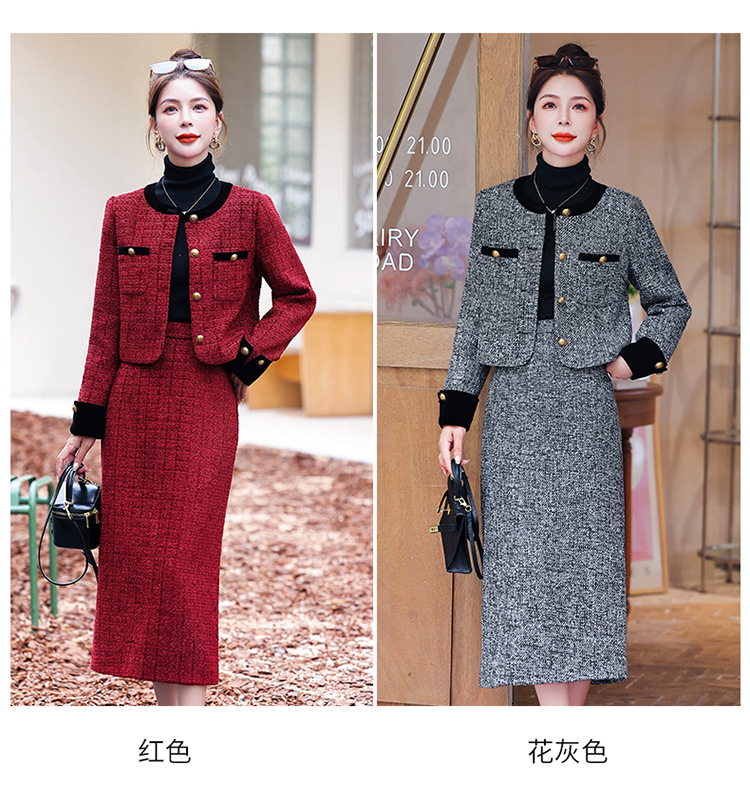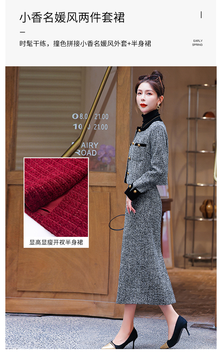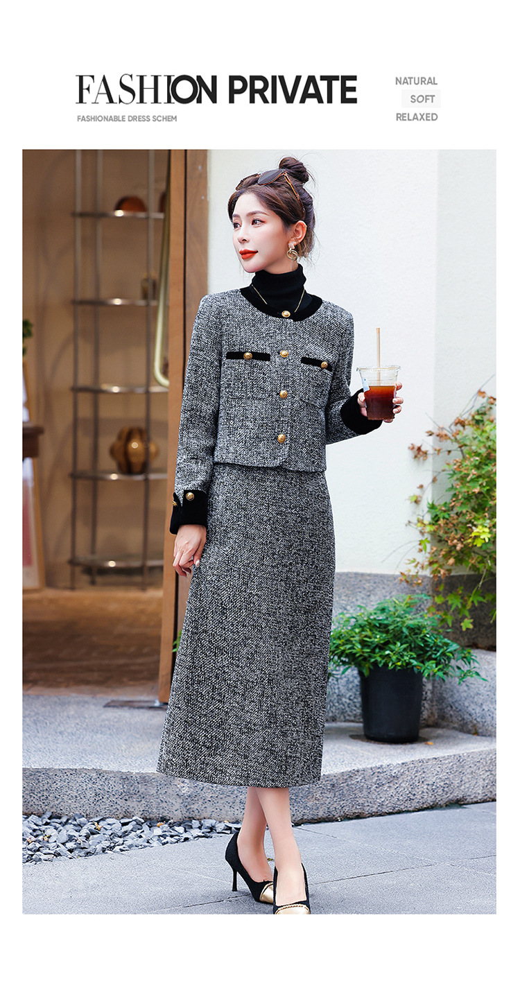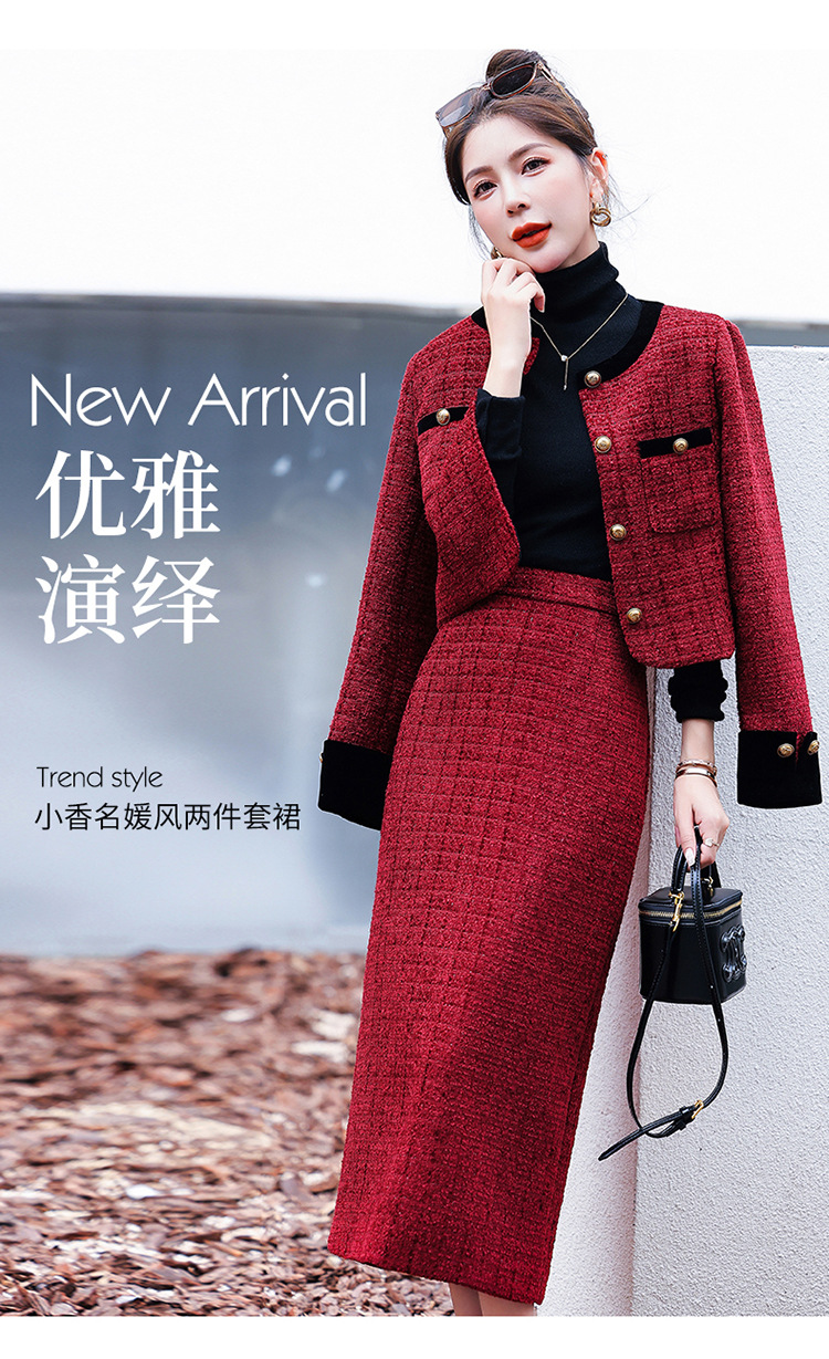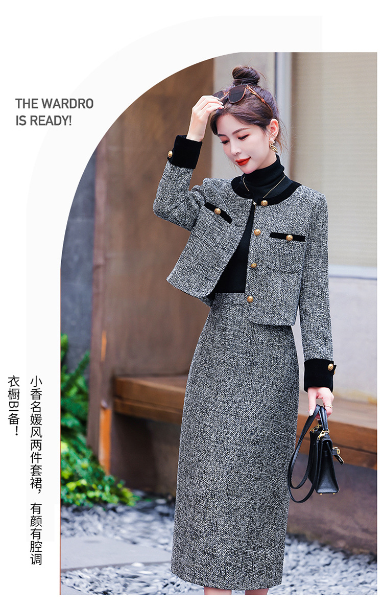 小香风外套半身裙两件套,气质女神范过膝长裙套装HR-YJLY8053
