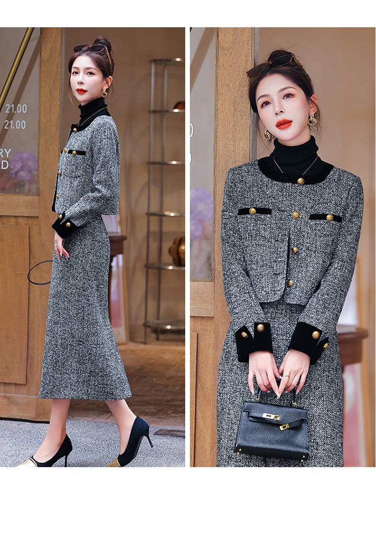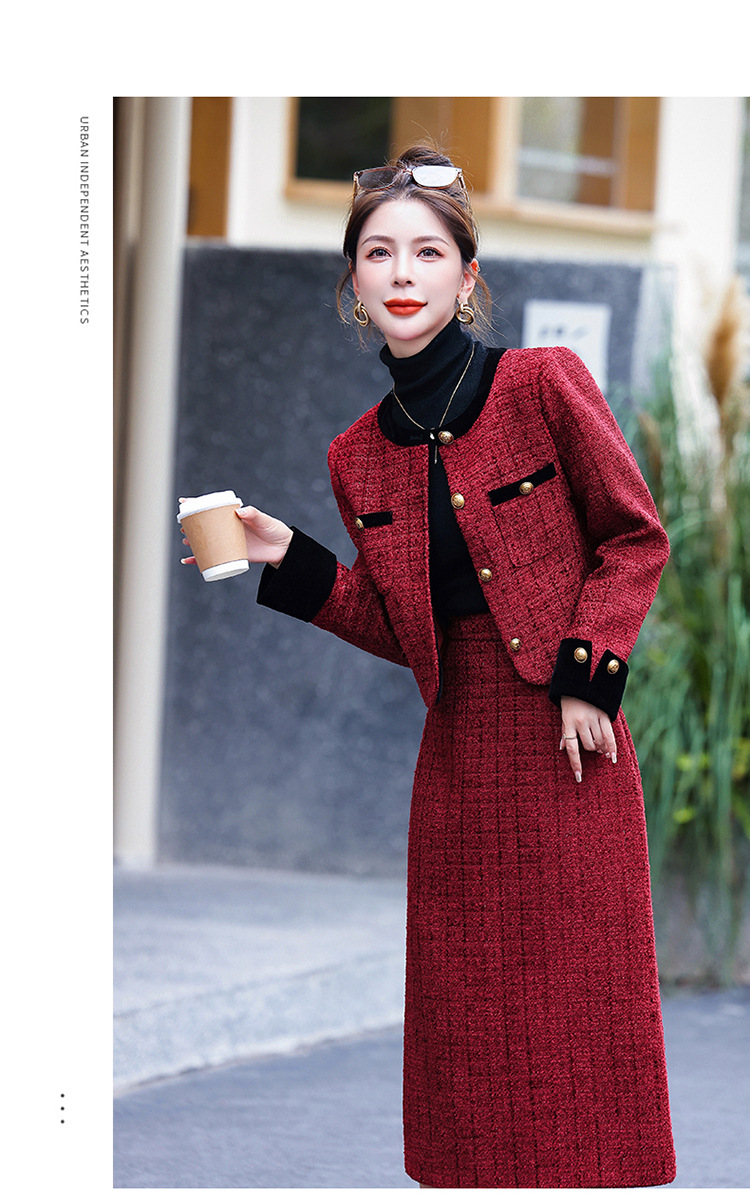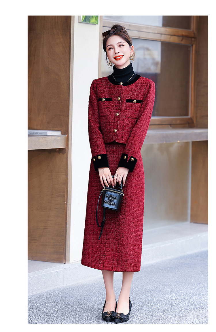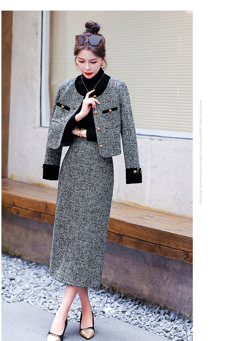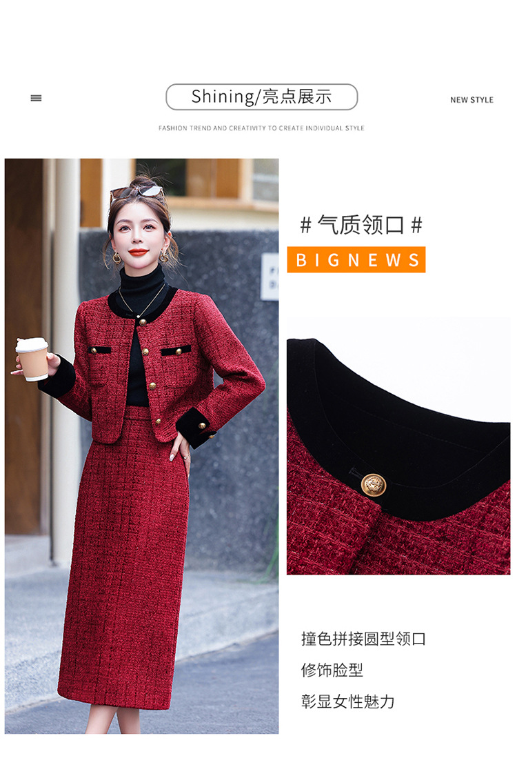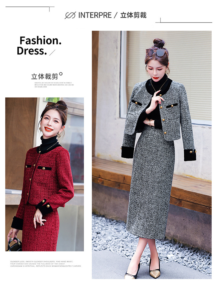 小香风外套半身裙两件套,气质女神范过膝长裙套装HR-YJLY8053