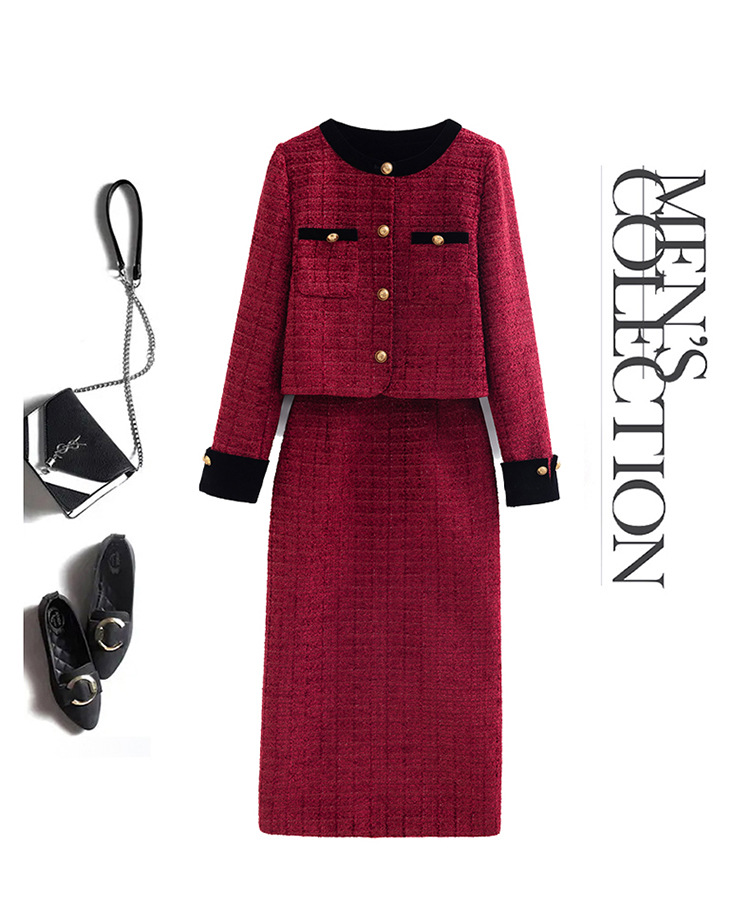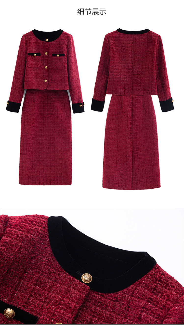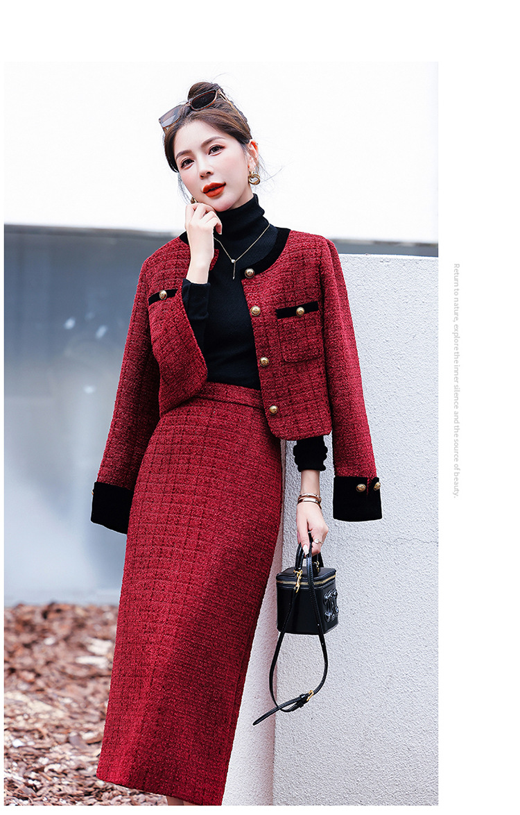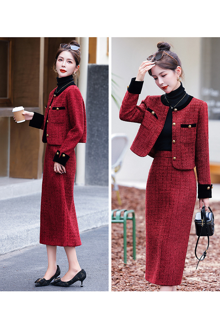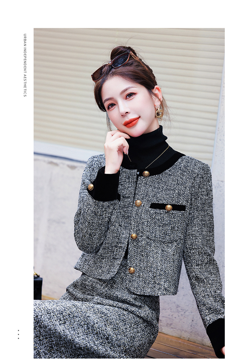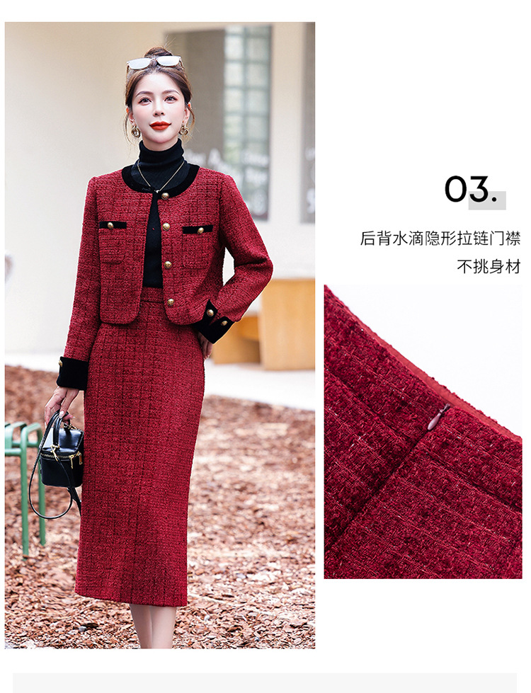 小香风外套半身裙两件套,气质女神范过膝长裙套装HR-YJLY8053