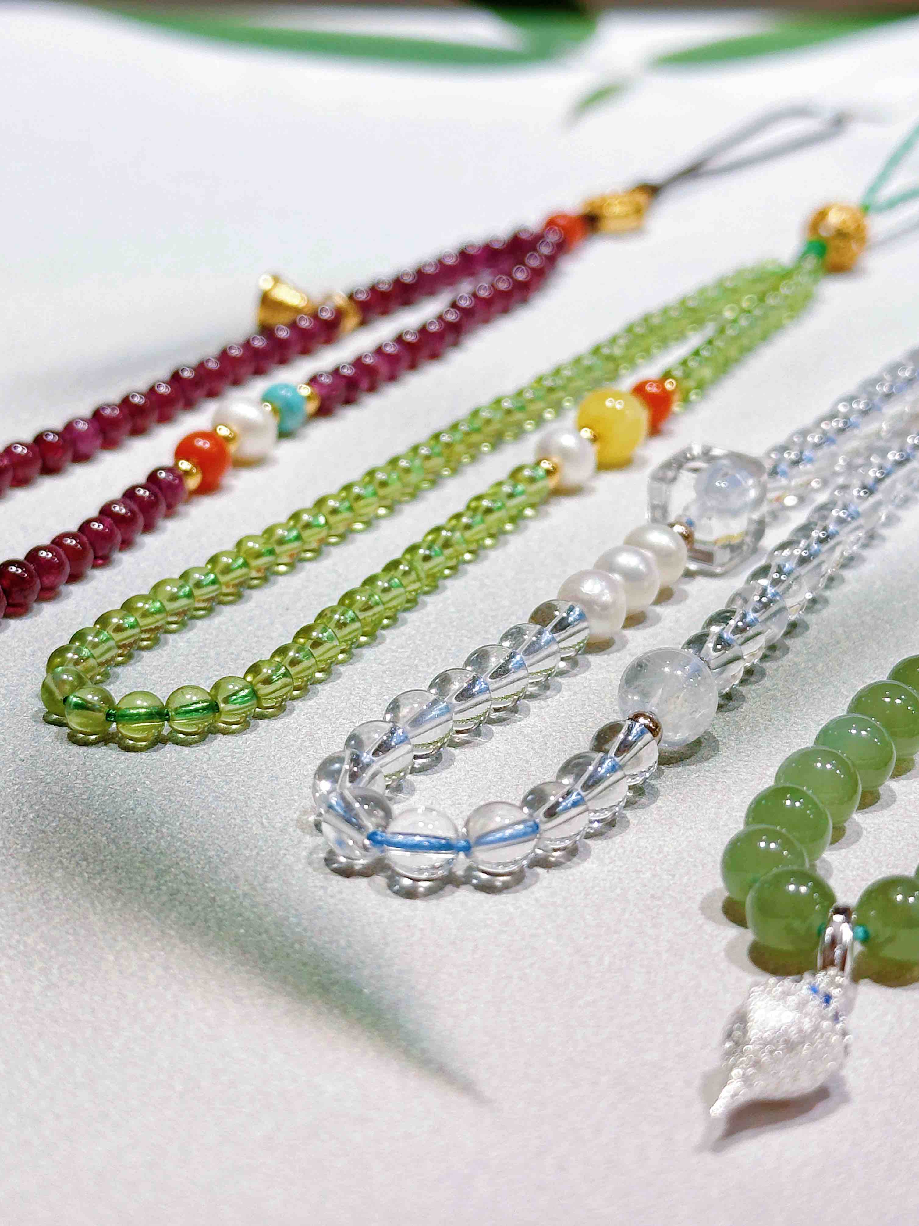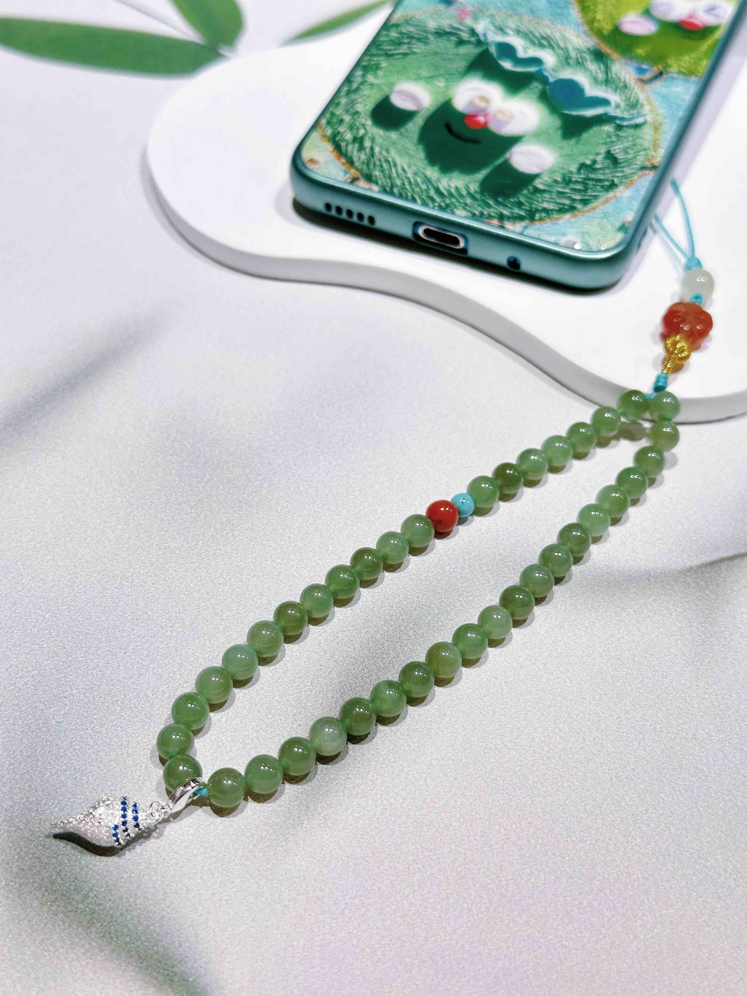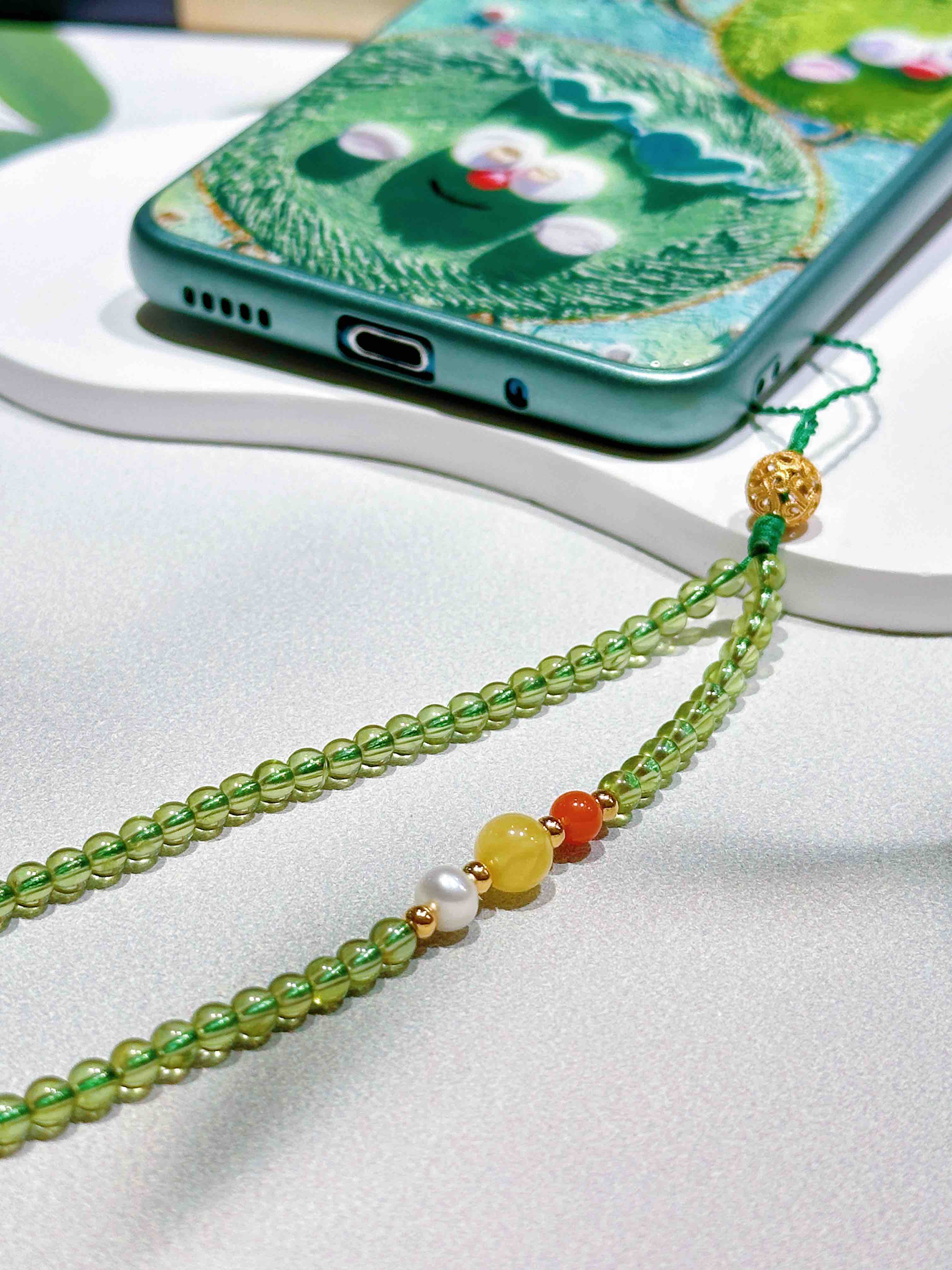 国风原创新中式酒红石榴石水晶橄榄石碧玉手机链手机挂件手腕绳淡水珍珠彩虹蜜蜡南红