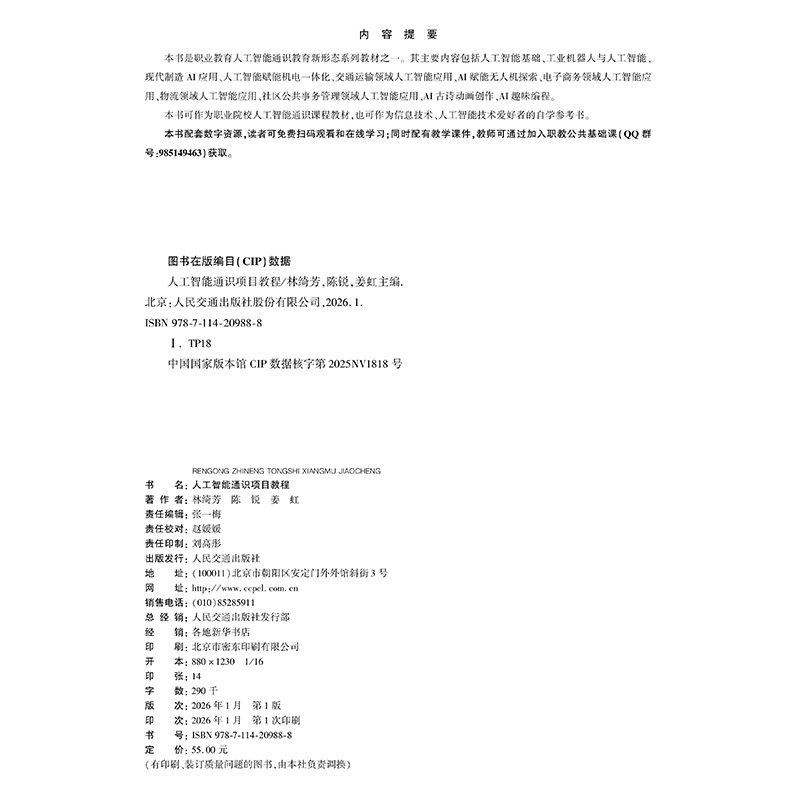 书名:人工智能通识项目教程