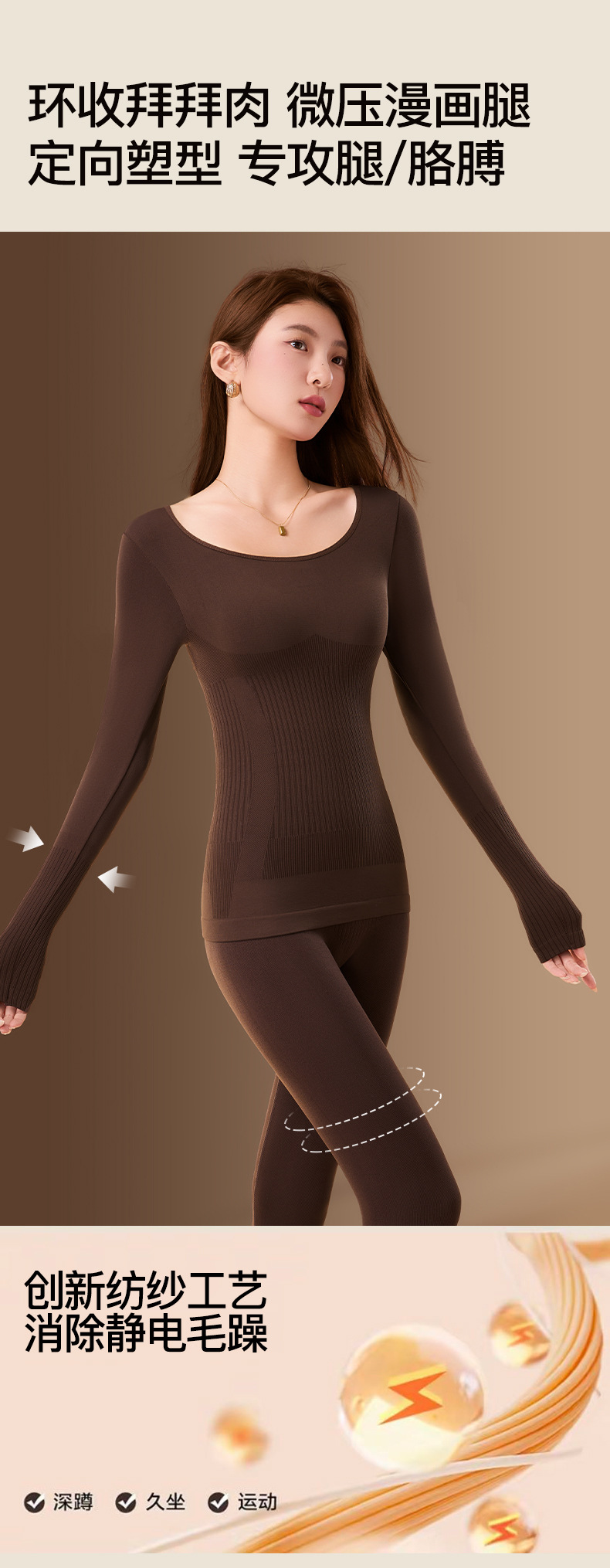 【解锁冬日轻盈穿搭❗️温暖时髦两不误】爆款冬季保暖塑身收腹美体套装打底修身秋衣秋裤内搭。ja