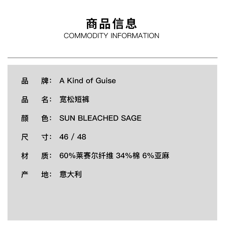 A Kind of Guise JUNO SHORTS 意大利制天丝混纺宽松短裤