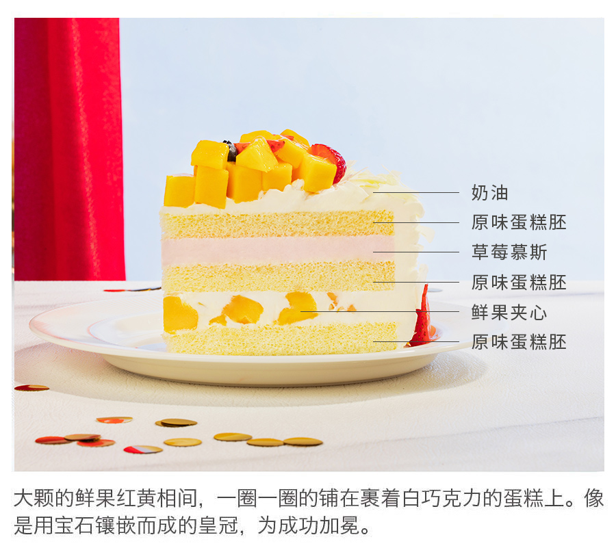 温馨提示:由于蛋糕新鲜现做,且需要较长工艺时长,请预约上午11点以后的时间配送。