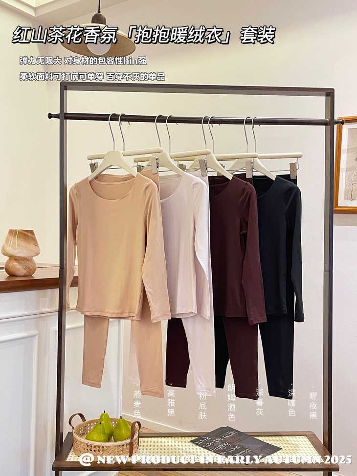 整套打底都采用高密织面料打造 密不透风的包裹 穿起来很保暖 还是双面细绒绒的质感贴合肌肤 享受软糯/柔滑/不刺挠的触感