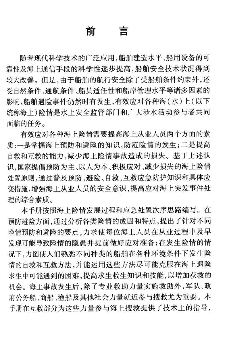 书名:海上险情预防、避险、自救互救知识手册
