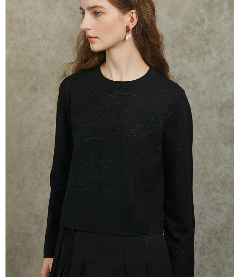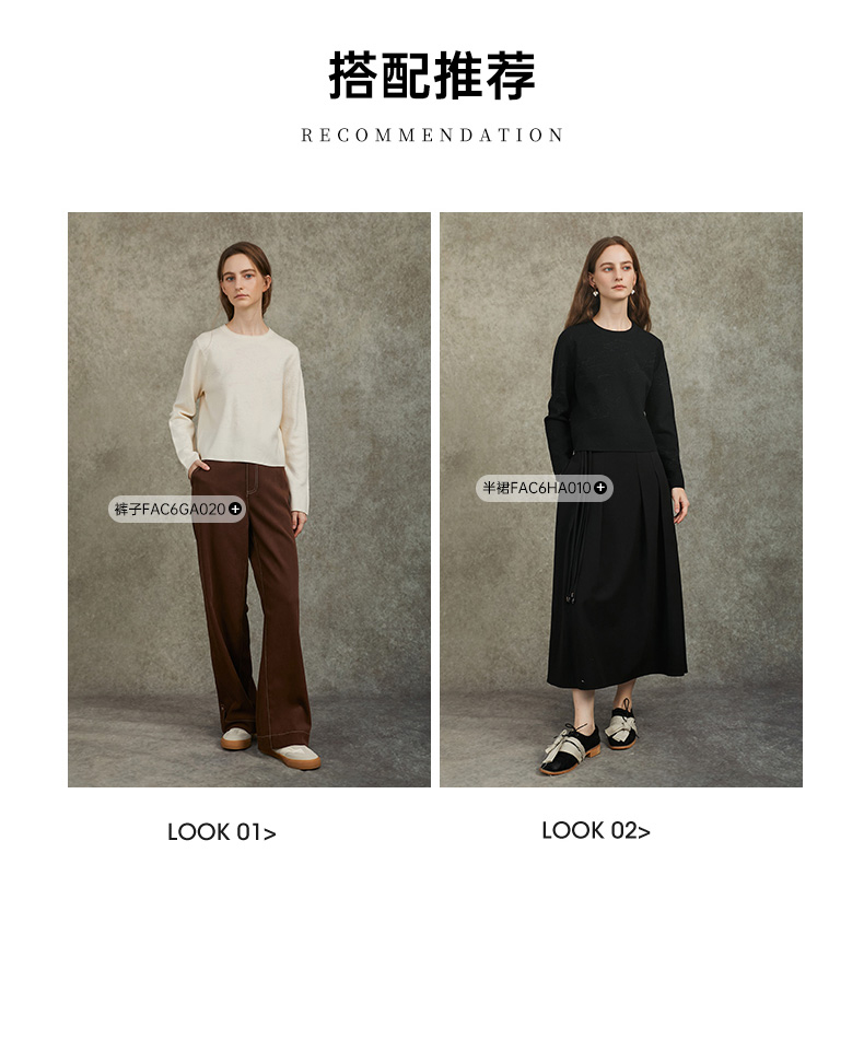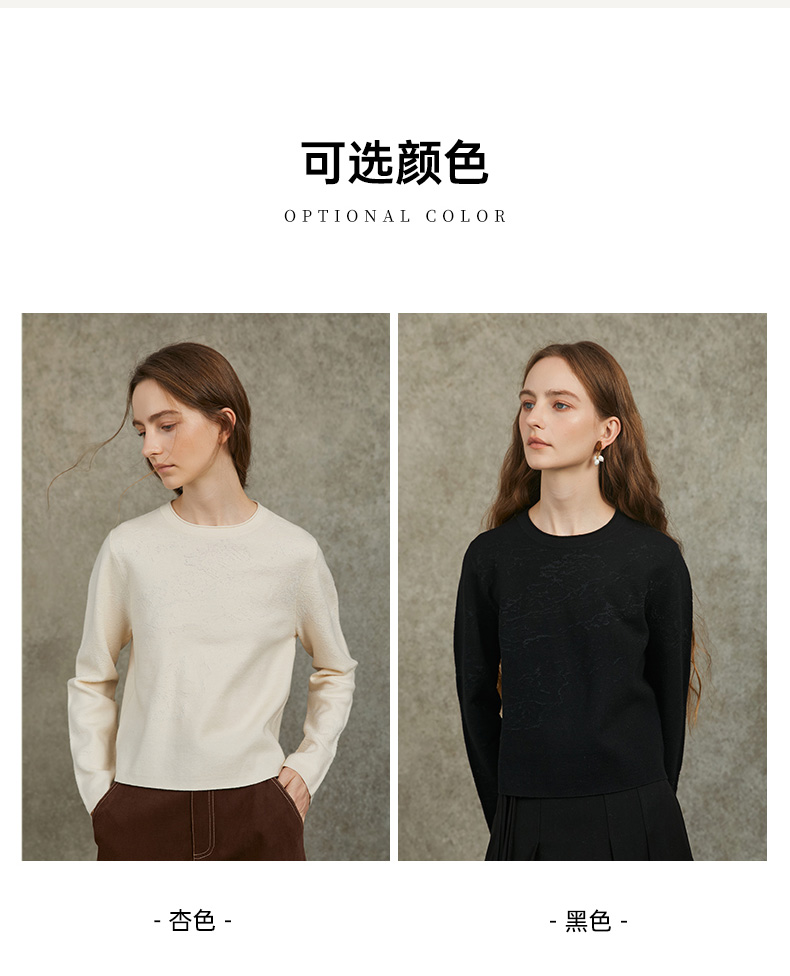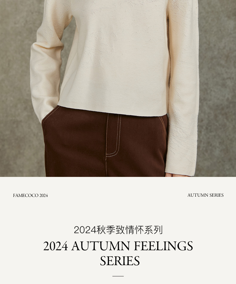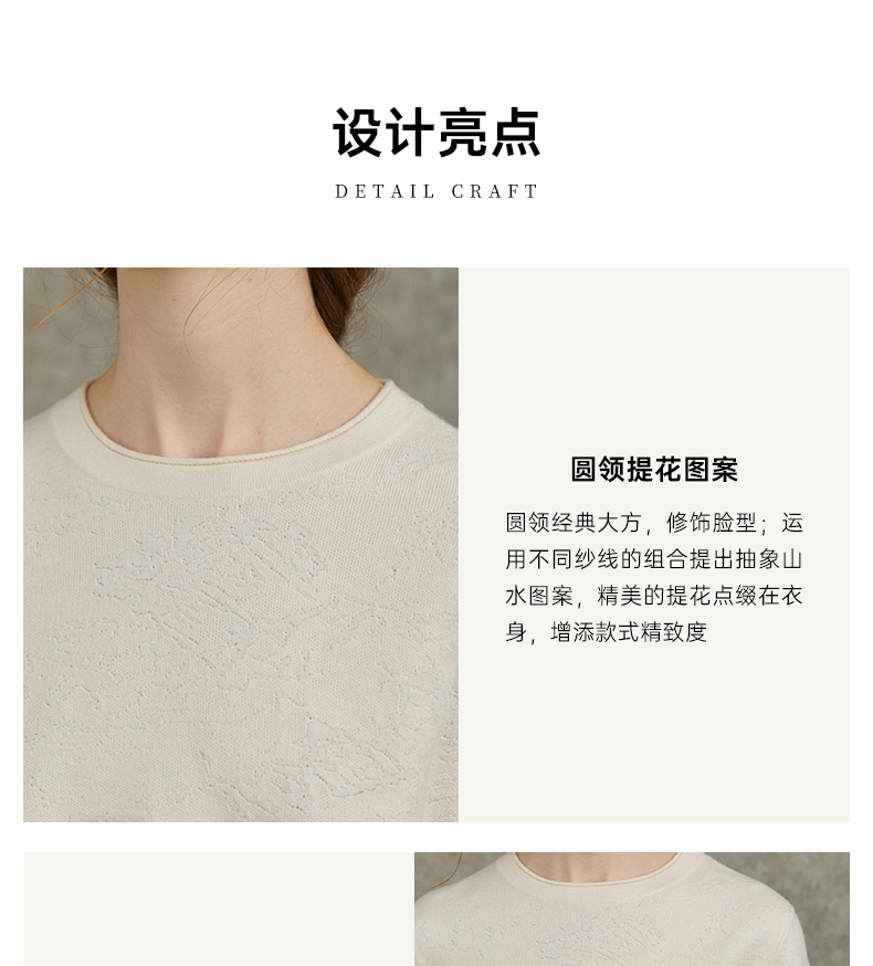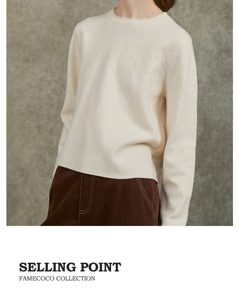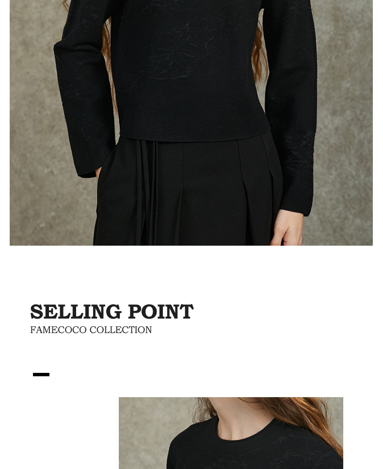 Famecoco范可儿通勤针织打底宽松*山水提花上衣FAC6DB004