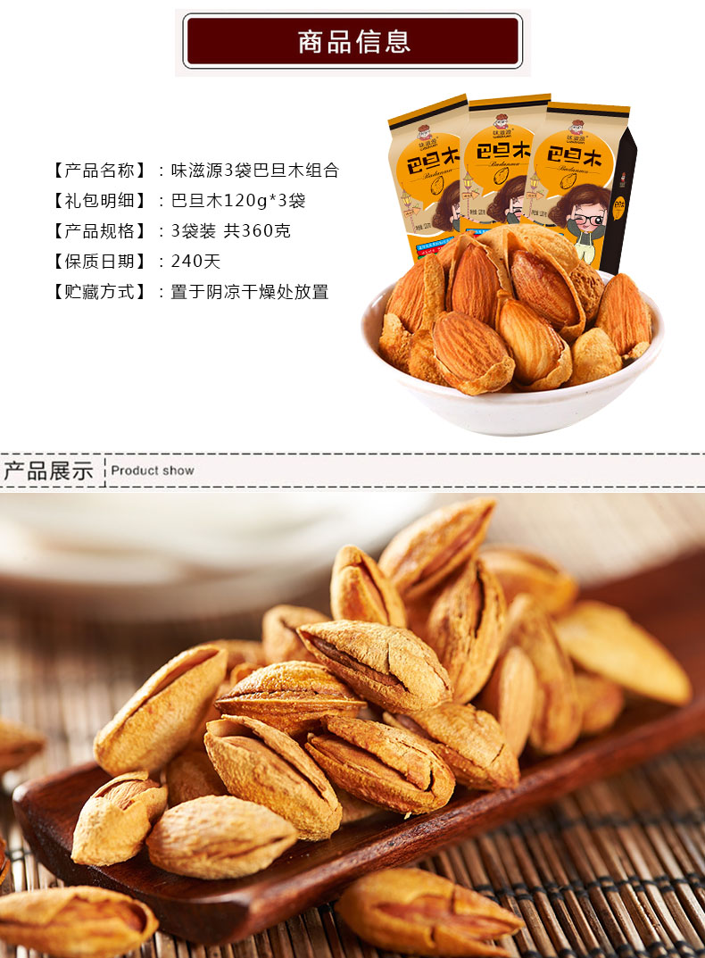 味滋源 巴旦木120g袋 坚果炒货休闲零食品 【分销】