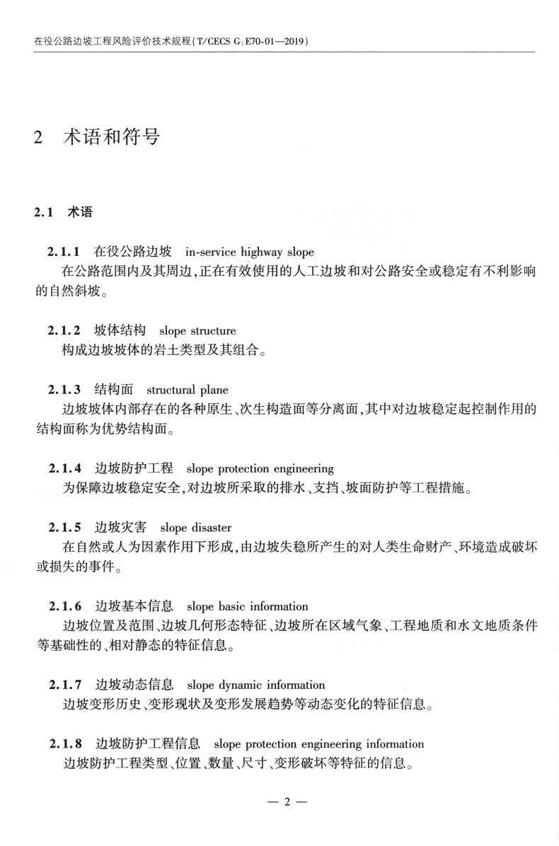 书名:在役公路边坡工程风险评价技术规程 (T/CECS G:E70-01—2019)