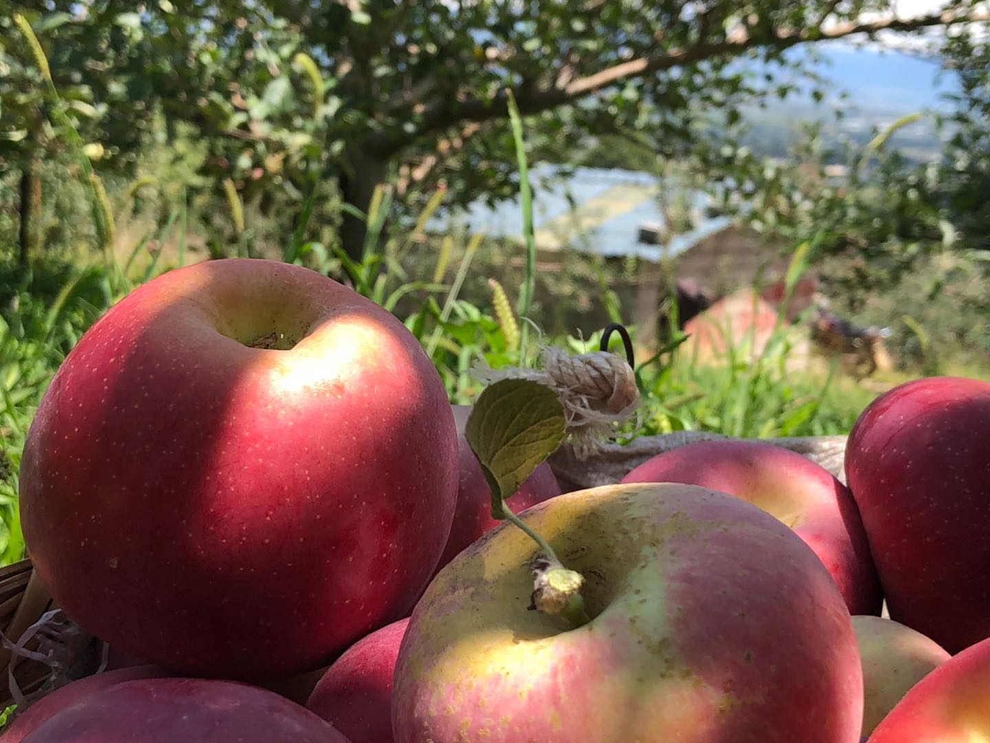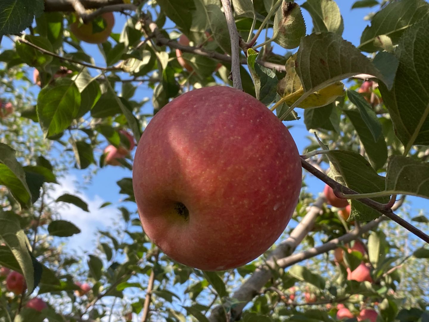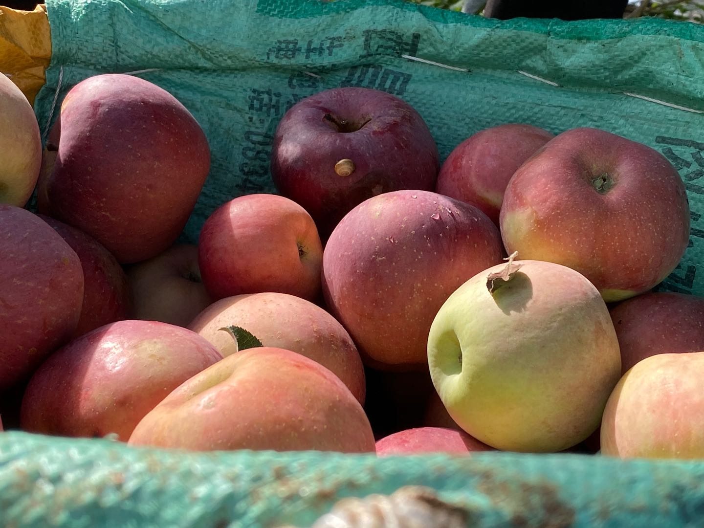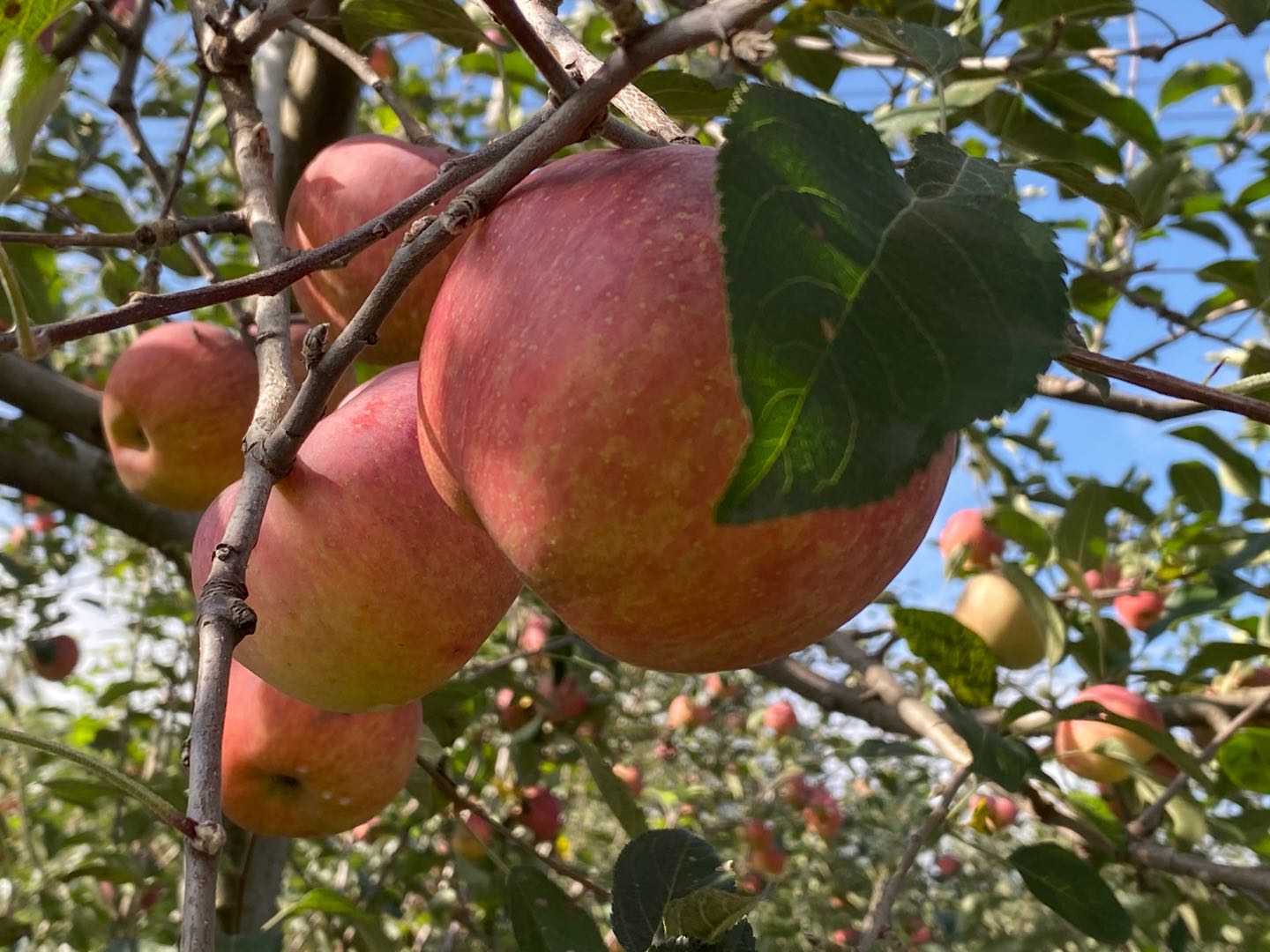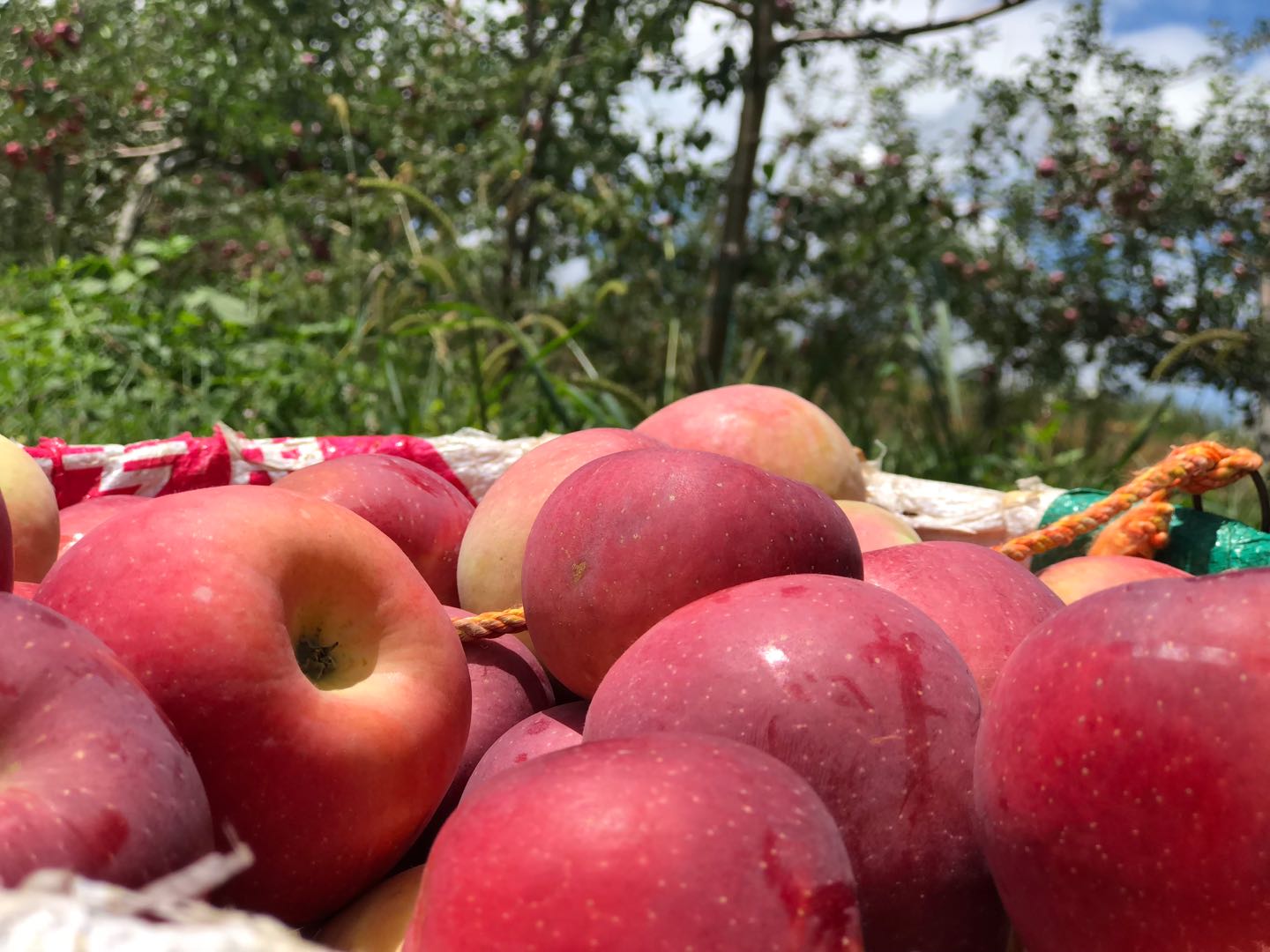 除此之外,这里有得天独厚的生态环境优势。土壤富含有机质,是苹果生长的适宜地带;灌溉水源来自周边高山雪域,为苹果的早结,质优,丰产提供了良好的自然环境;因为海拔高,所以污染少、病虫害也少,农药化肥几乎用不到。?