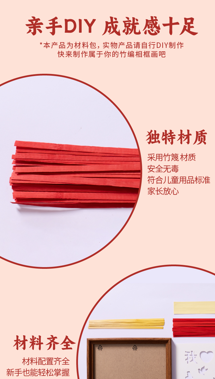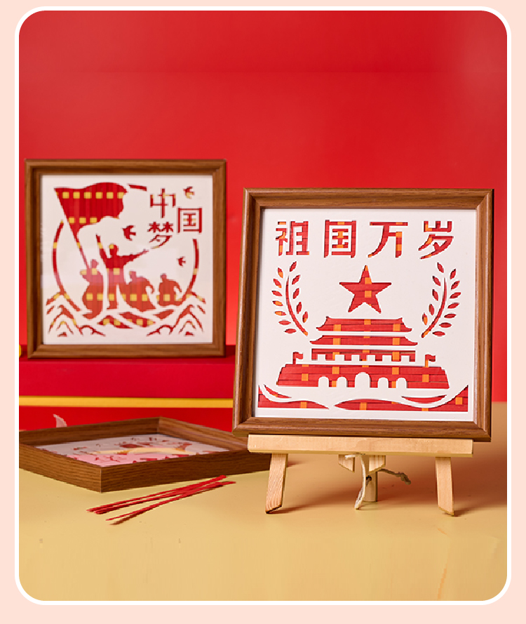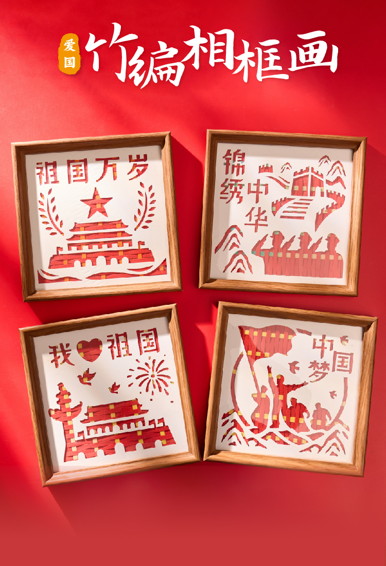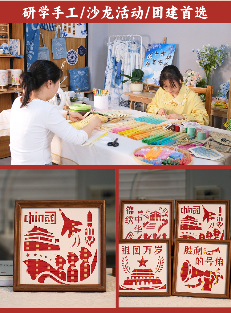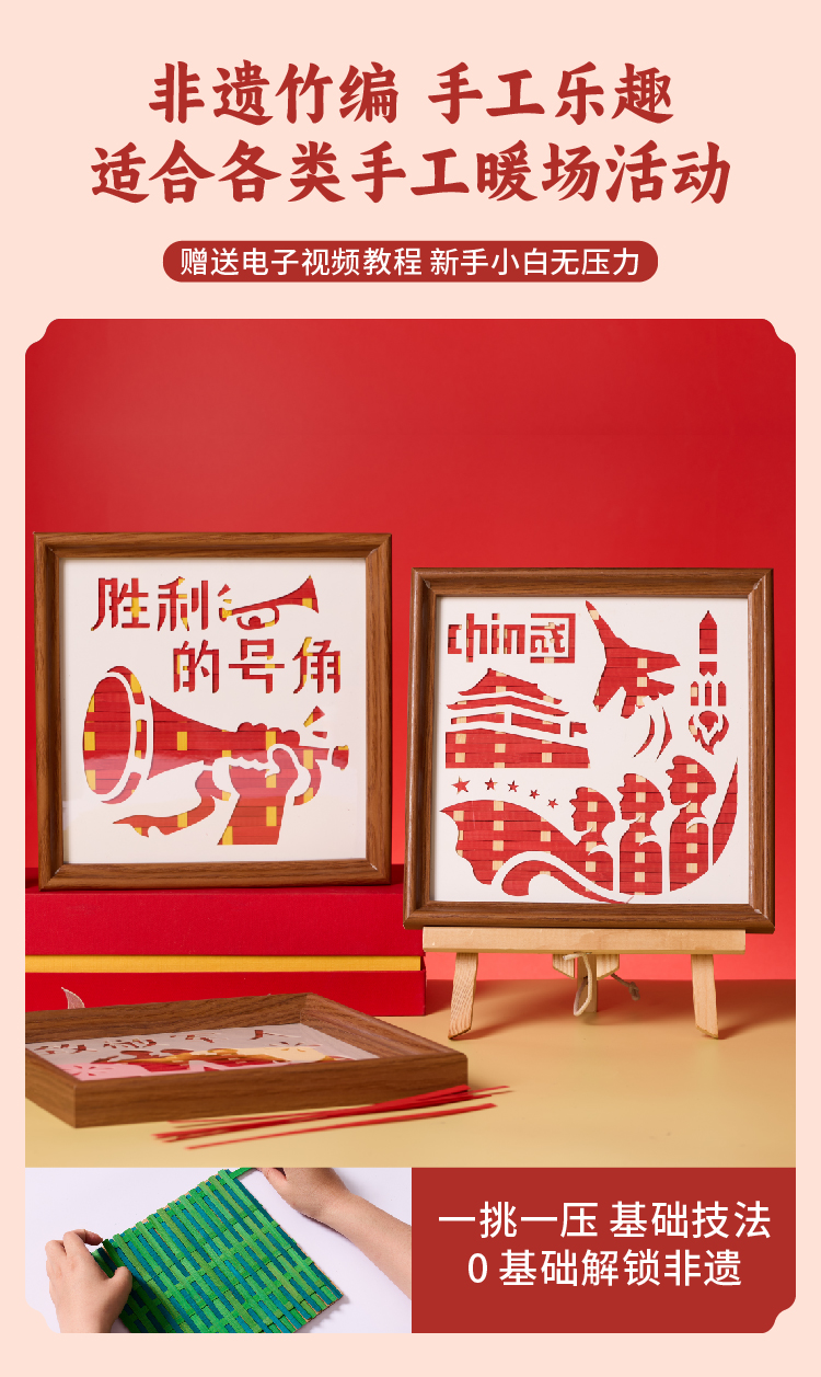 手工diy爱国竹编相框画儿童制作材料红色主题团建活动