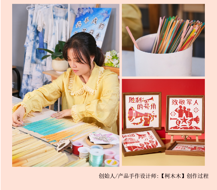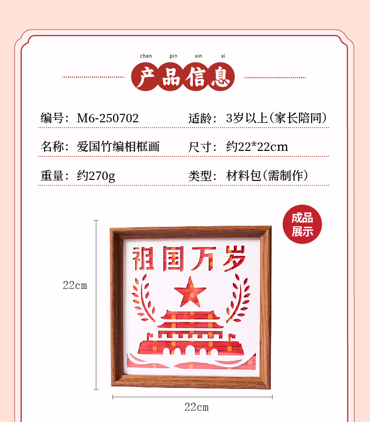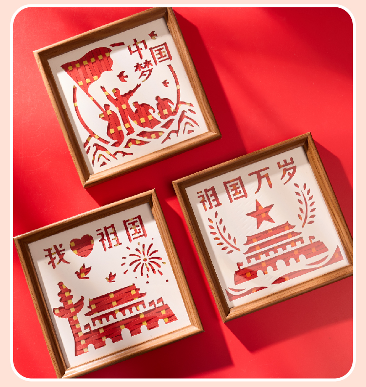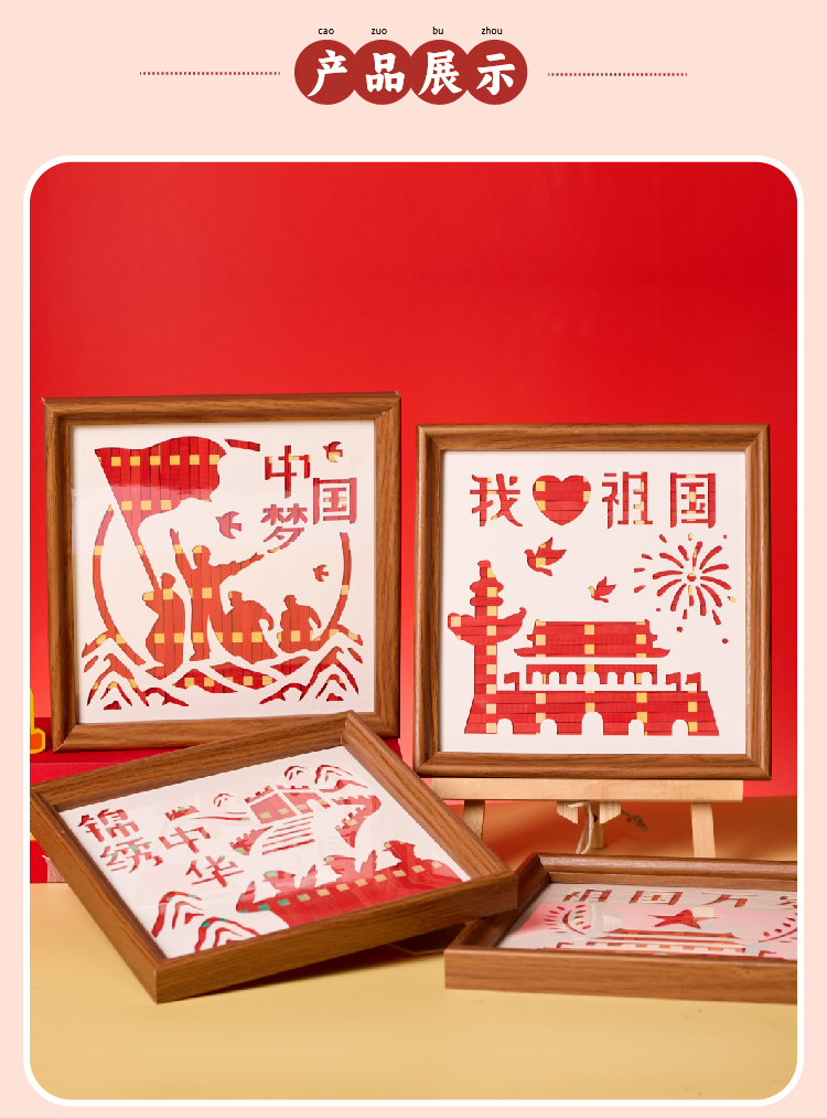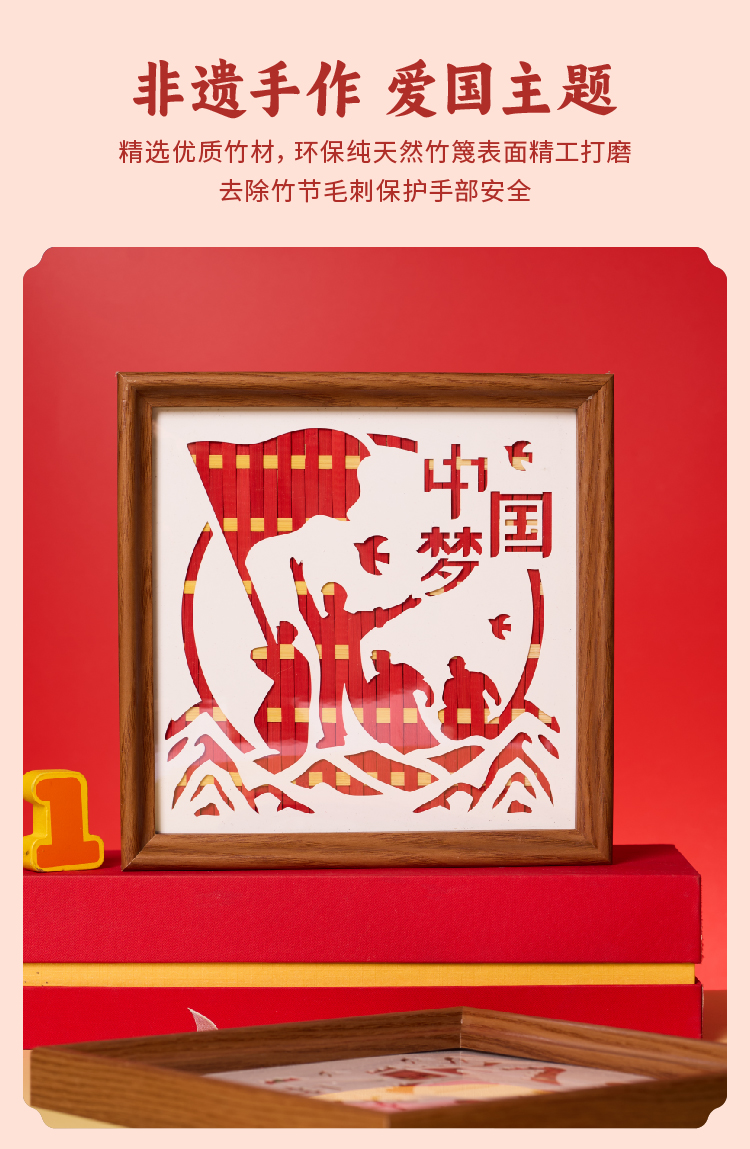 手工diy爱国竹编相框画儿童制作材料红色主题团建活动