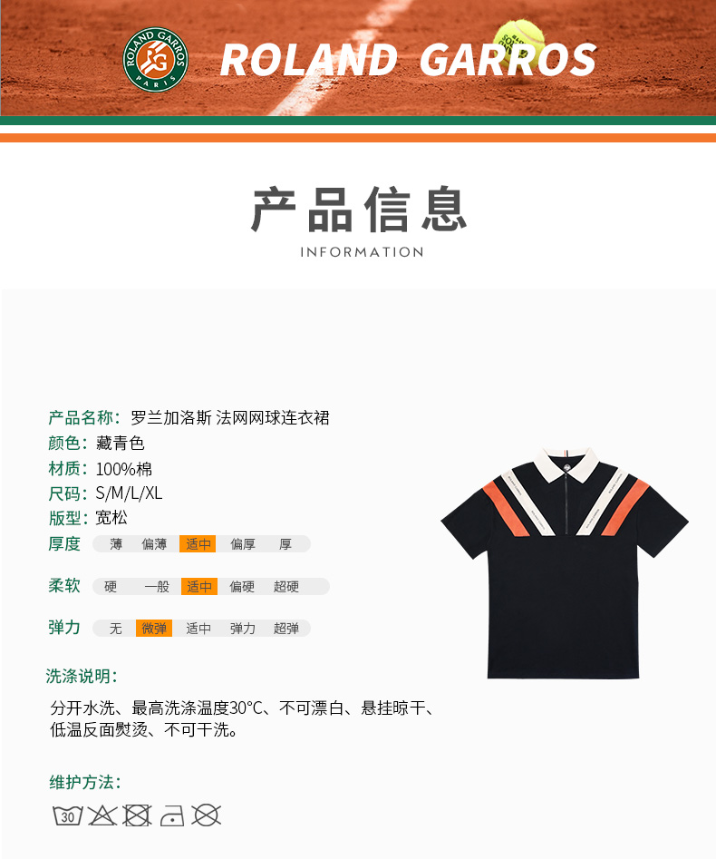 罗兰加洛斯2022法网网球裙女Polo领连衣裙夏季新款宽松运动裙