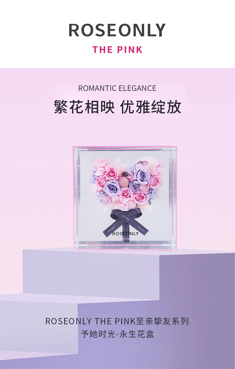 ROSEONLYTHE PINK 至亲挚友系列永生玫瑰予她时光繁花送爱人节日礼物