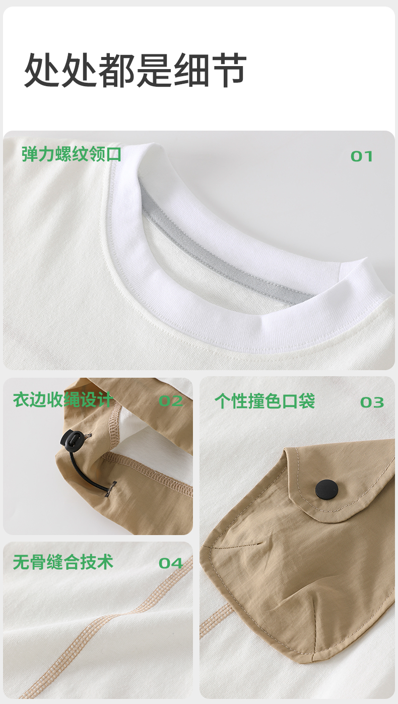 面料:大身:100%棉贴袋:100%锦纶罗纹:92棉8%氨纶