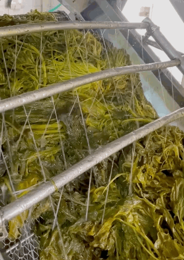 取菜后,用严格的工序保证出品:先粗清洗,后手工脱盐挑掉烂叶,再放入洗菜机彻底清洗。最后按标准流程切菜后罐装,罐装巴氏杀菌后才会装箱,抵达千家万户的饭桌。