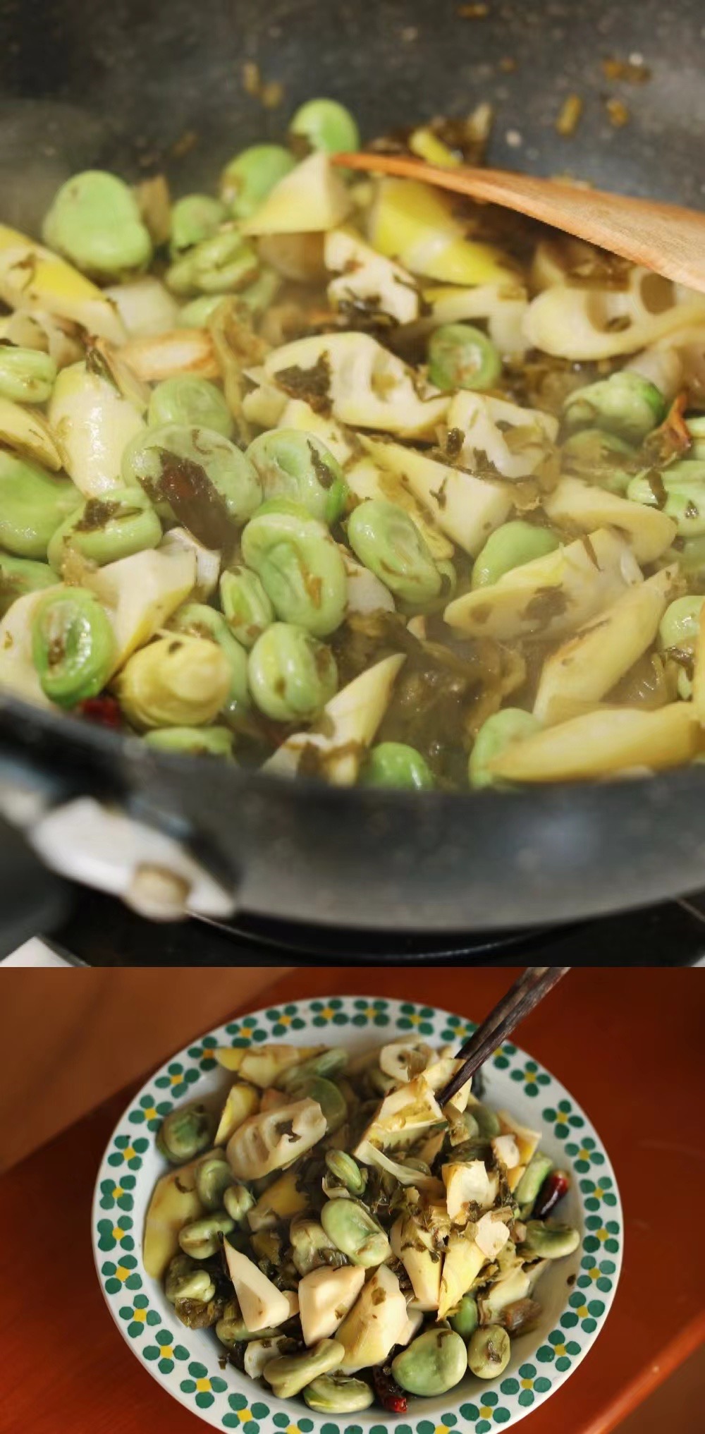 鄞州雪菜搭配春笋,真的太绝啦,甜嫩的春笋和蚕豆用热水焯熟,用雪菜代替盐佐味。炒出来的菜满嘴清甜,又增添了雪菜的鲜味。