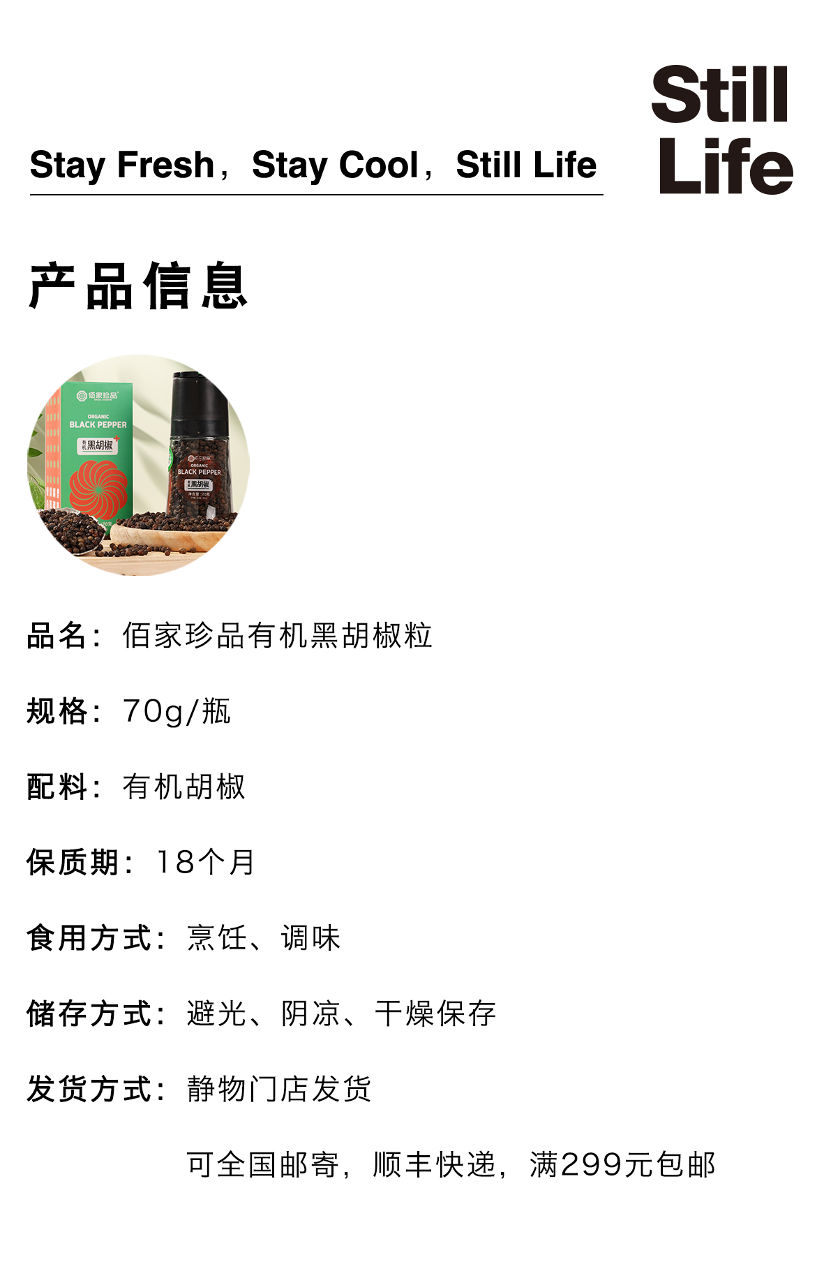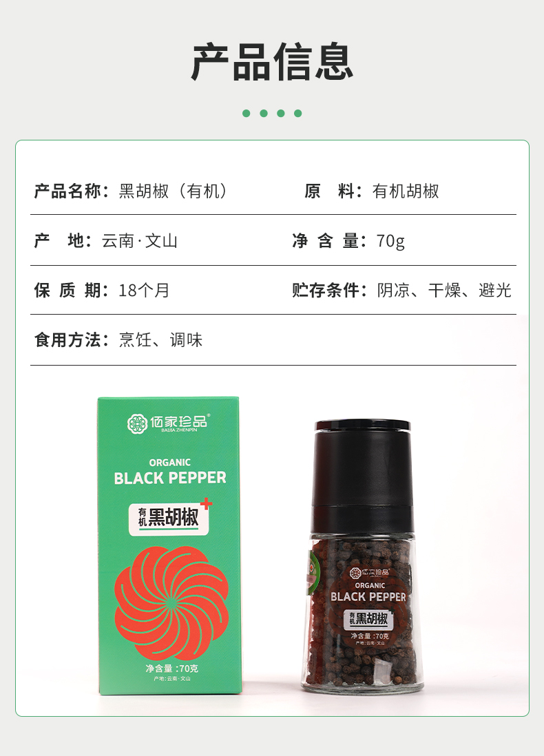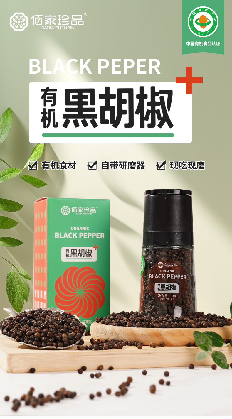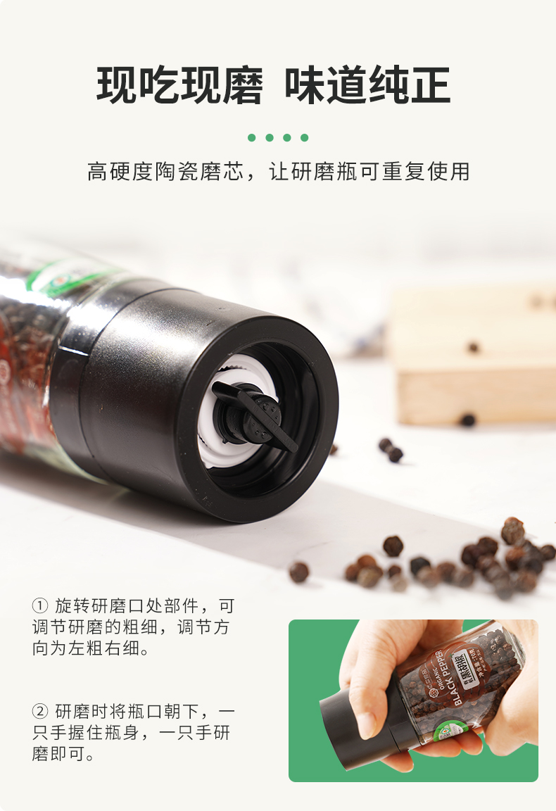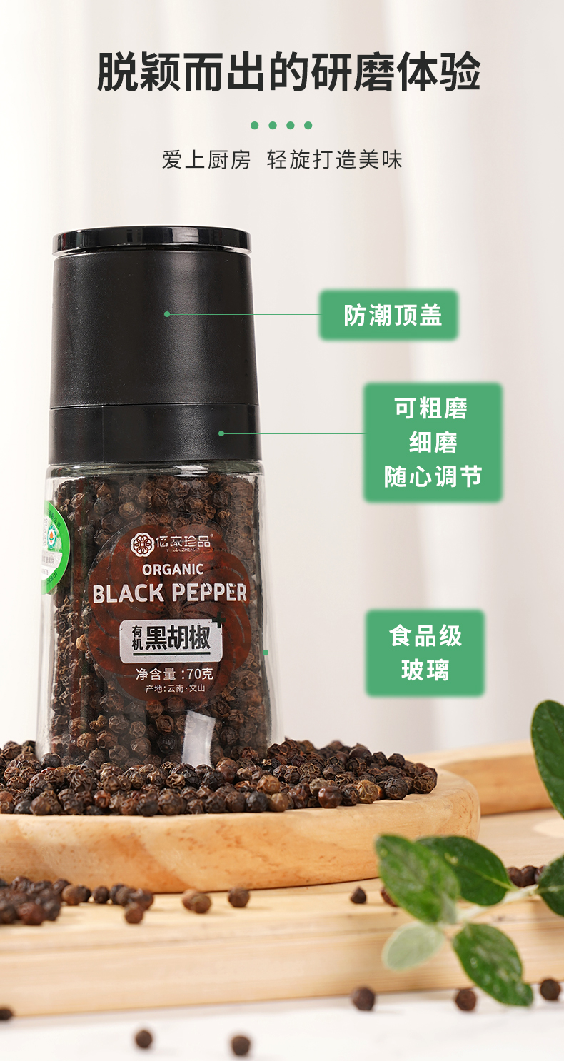 有机研磨黑胡椒粒70g|云南文山