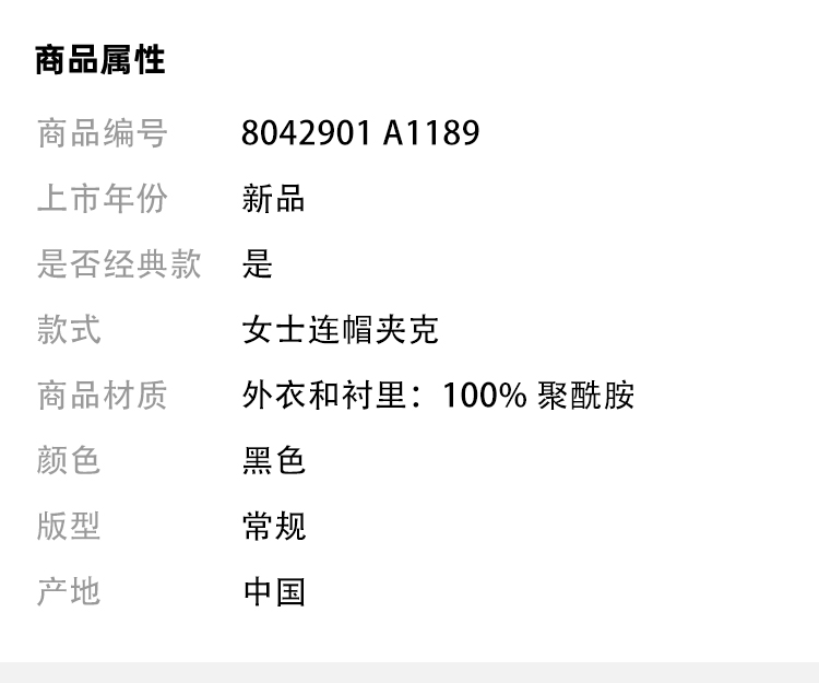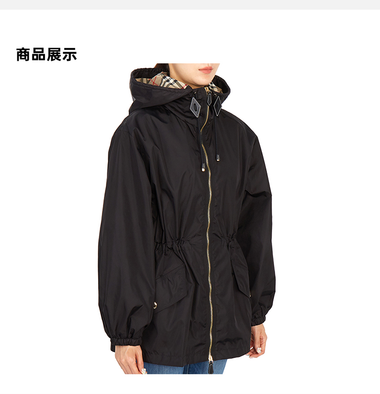 【一】BURBERRY 巴宝莉 女士尼龙轻质连帽夹克外套 黑色 8042901 A1189