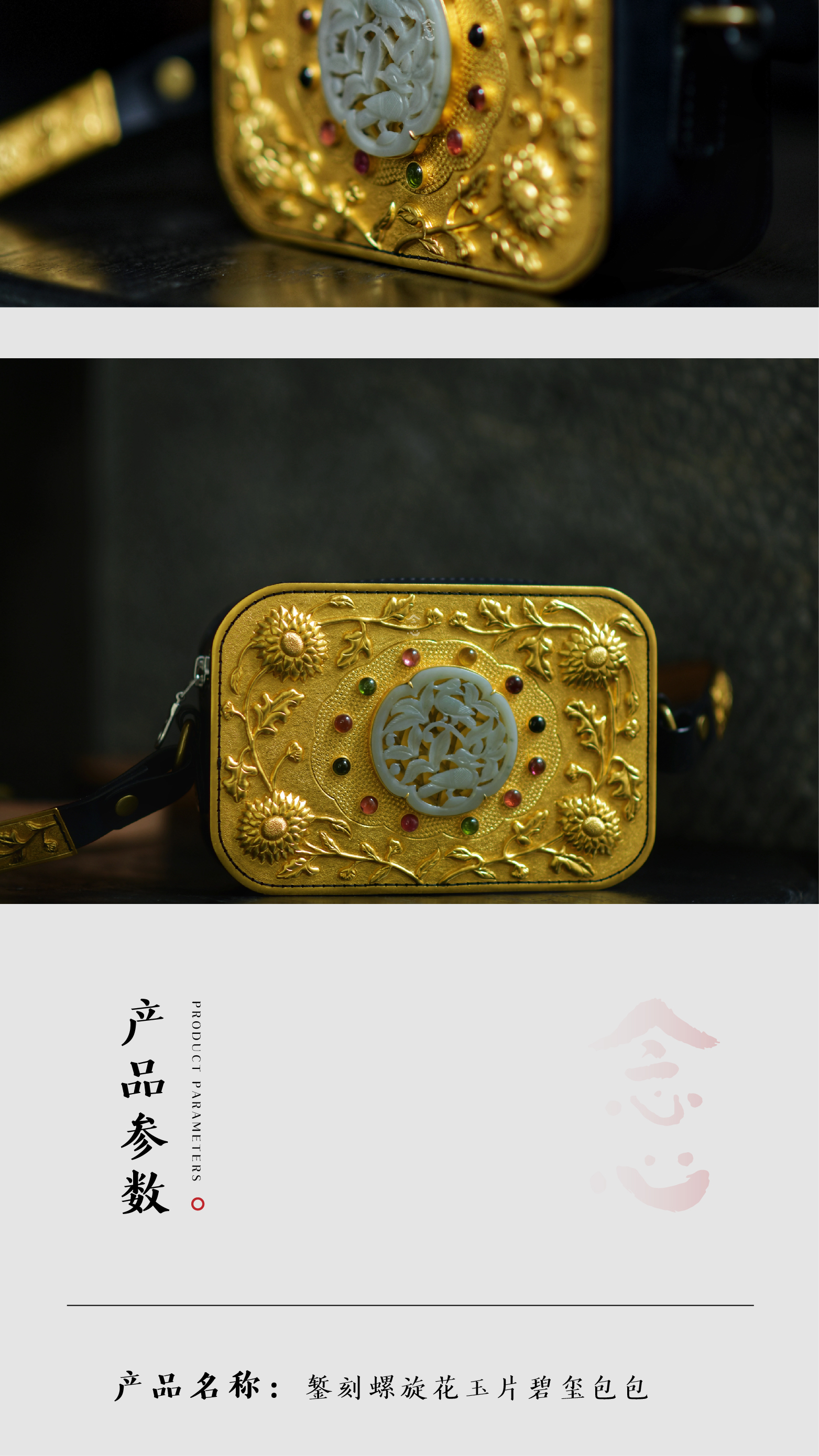 錾刻螺旋花玉片碧玺包包