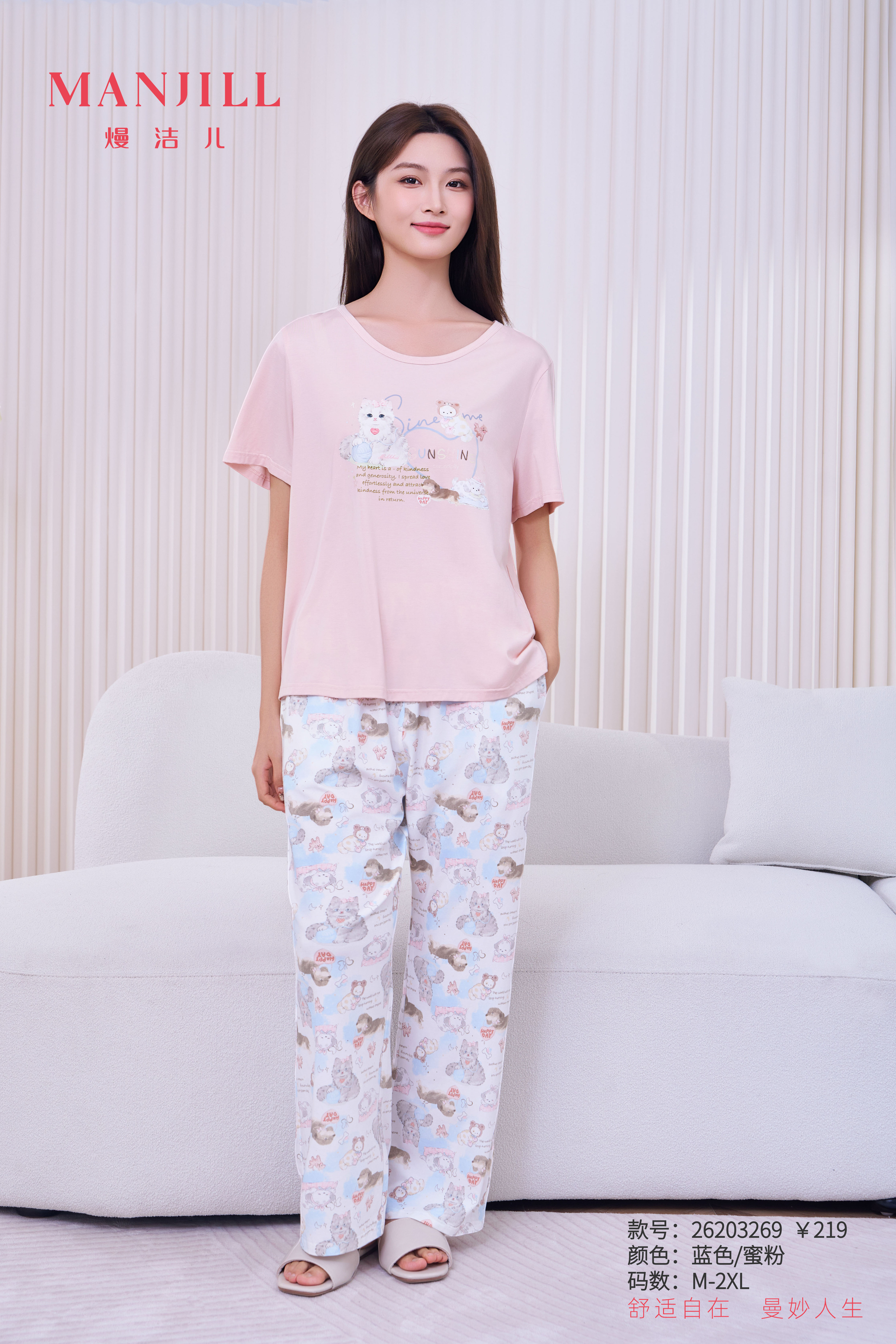 【商场同款】熳洁儿 短袖长裤套装春夏家居服羊脂玉26203269
