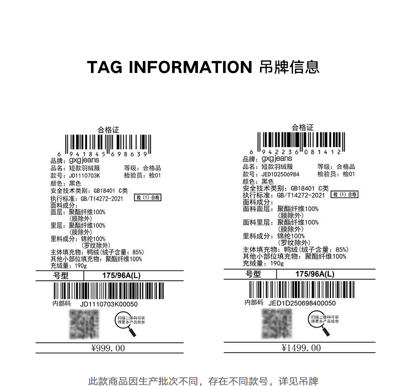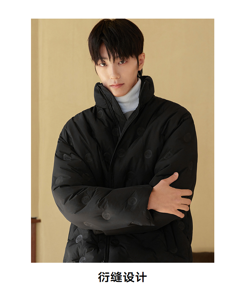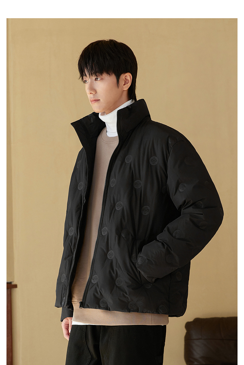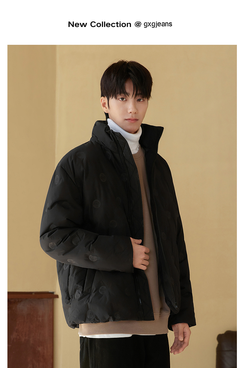 gxgjeans男装冬季羽绒服青年男立领短款时尚压花羽绒服