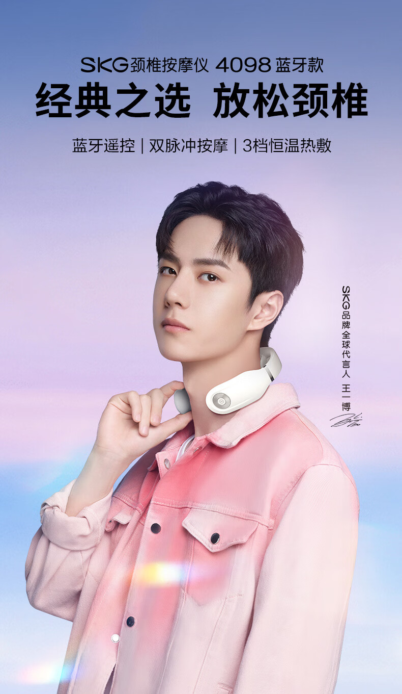 SKG颈椎按摩器颈椎按摩仪肩颈按摩器电脉冲护颈仪京东小家智能生态 4098蓝牙款 送礼礼物【王一博代言】