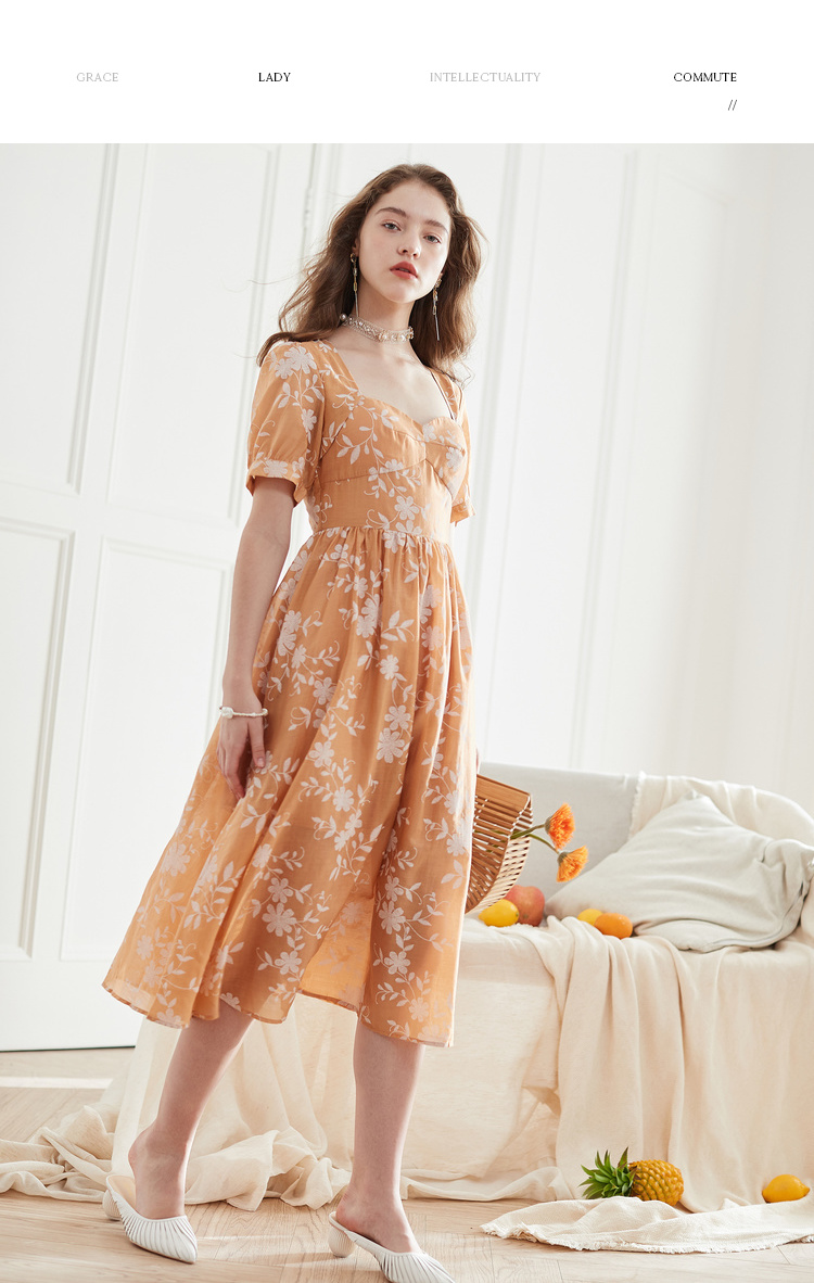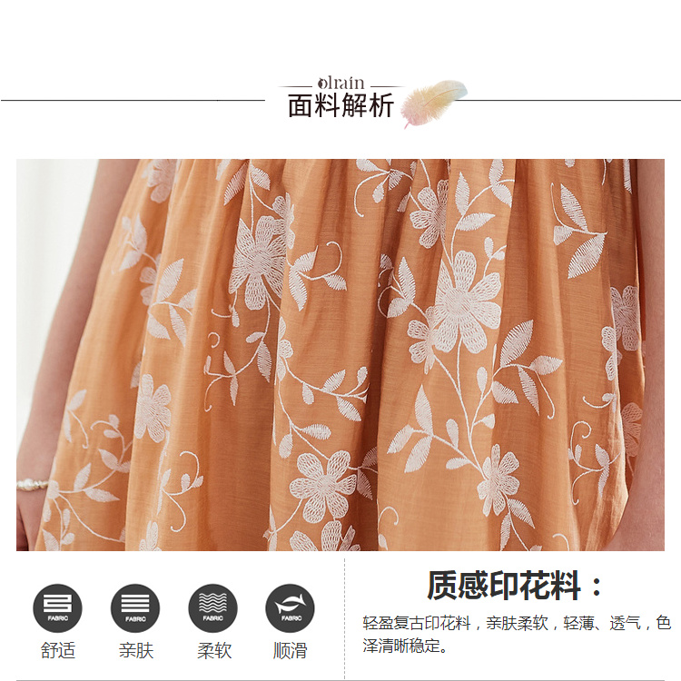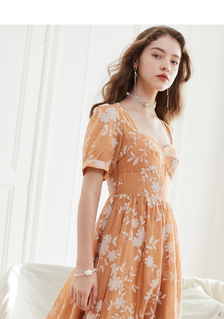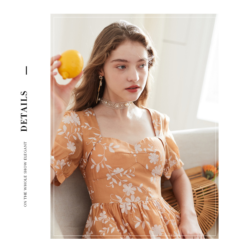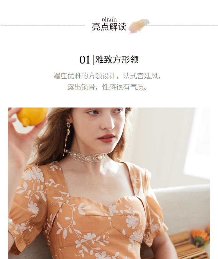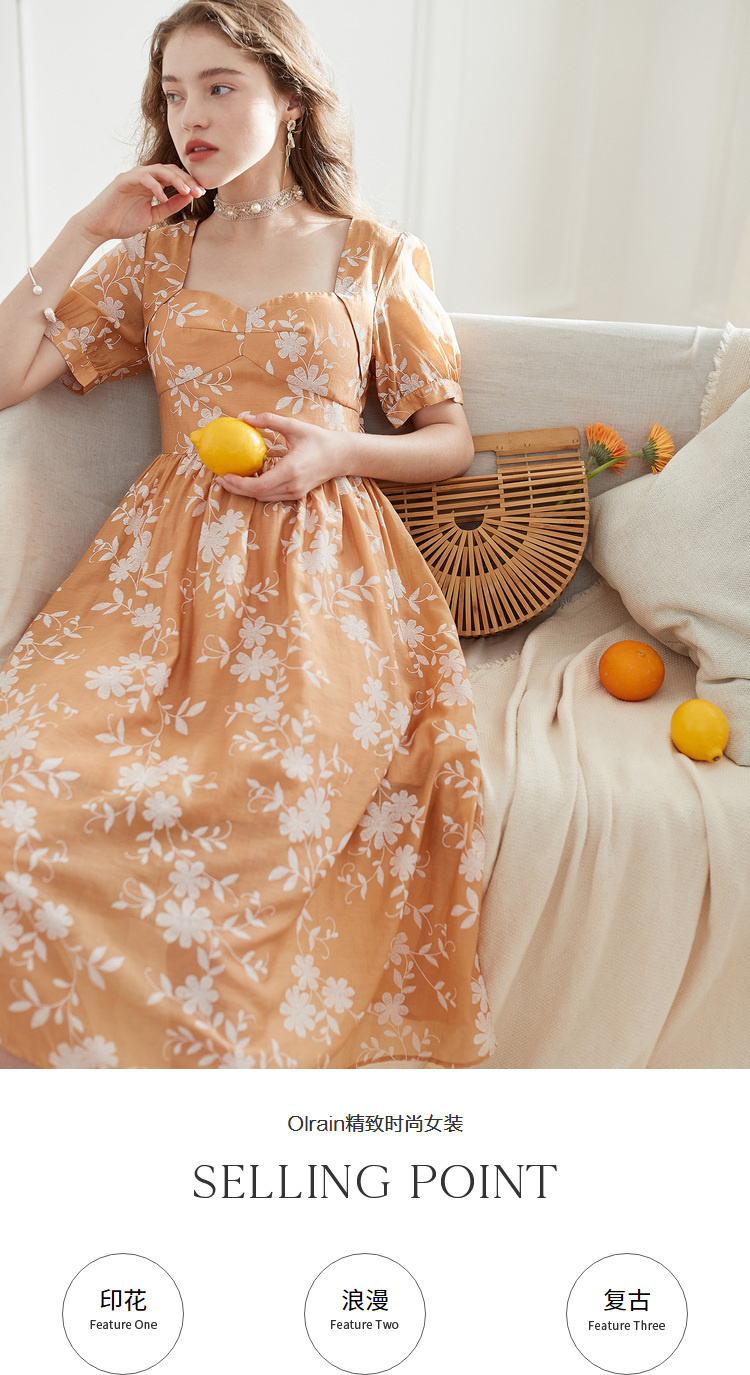 欧芮儿方领短袖印花雪纺连衣裙女显瘦复古裙子仙女超仙森系2019夏装