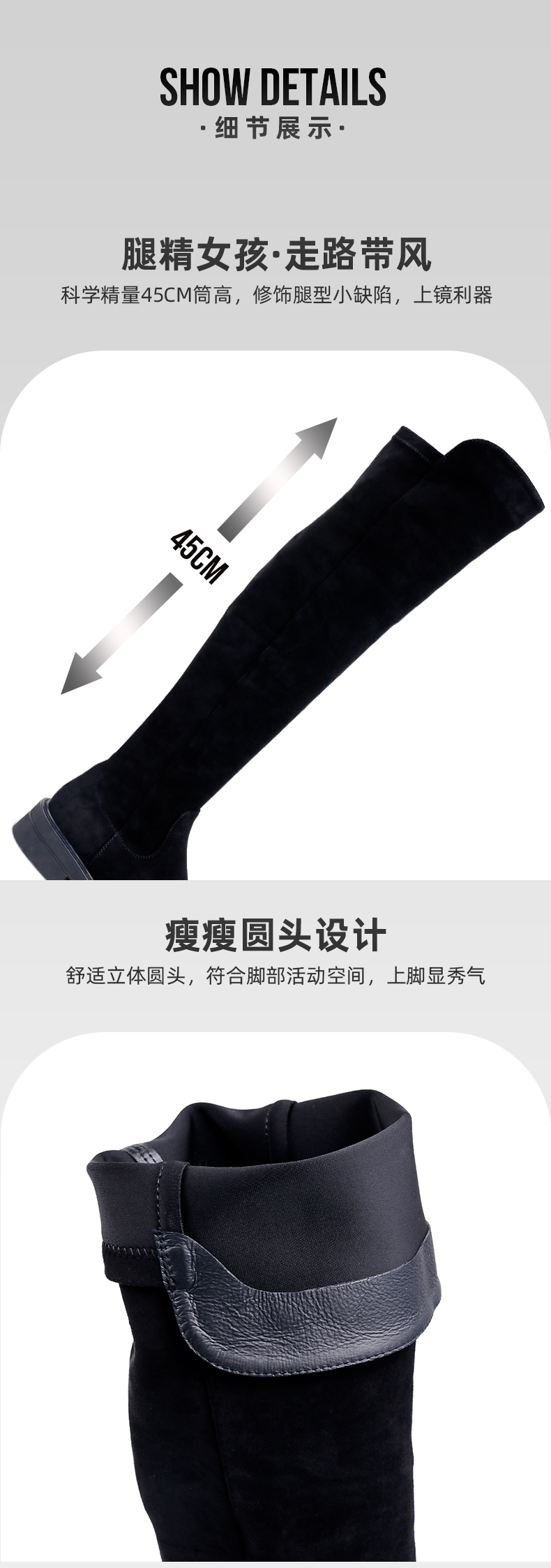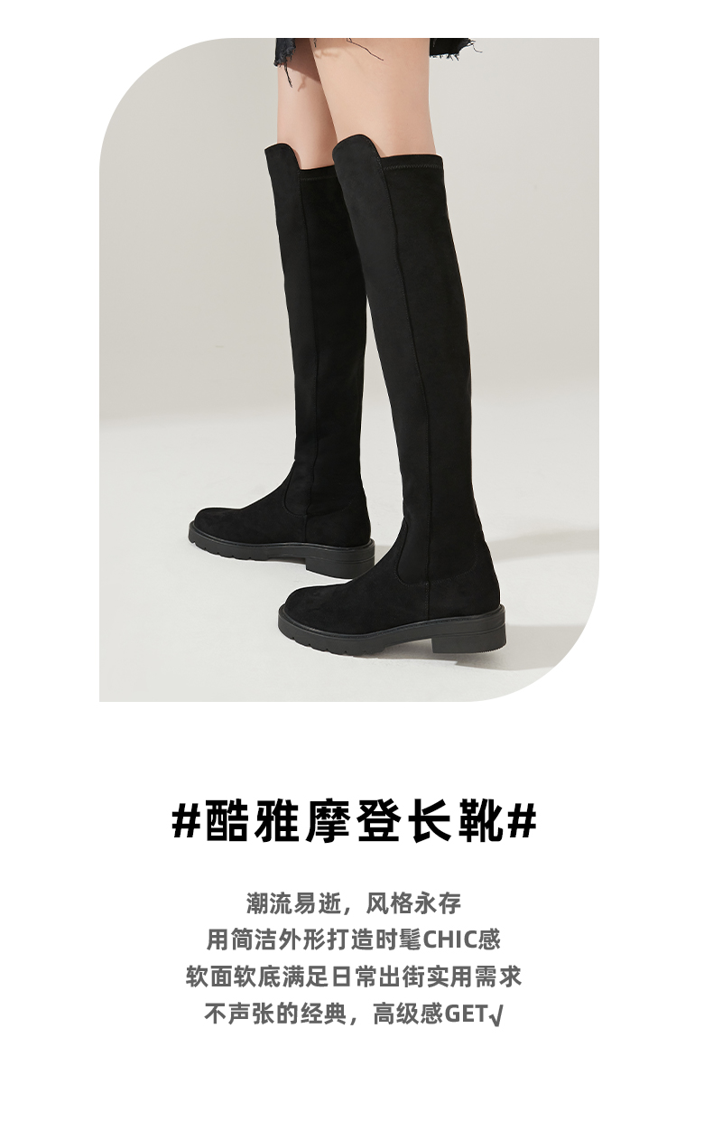 【春节不打烊】Safiya/索菲娅 女鞋2022年冬季新款圆头高筒平底弹力显瘦过膝长靴 SF24117032