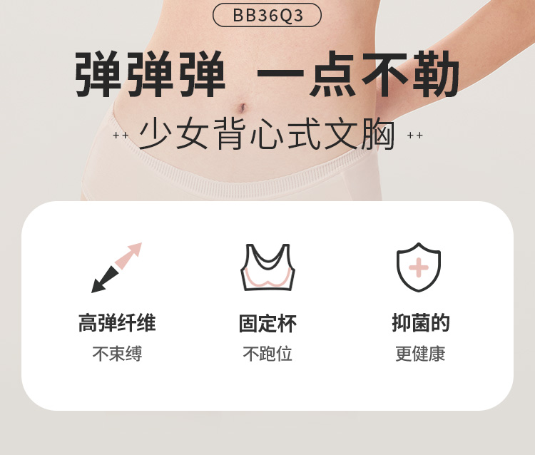 都市丽人少女优选二阶泳布内衣薄款背心式少女文胸无钢圈无排扣BB36Q3