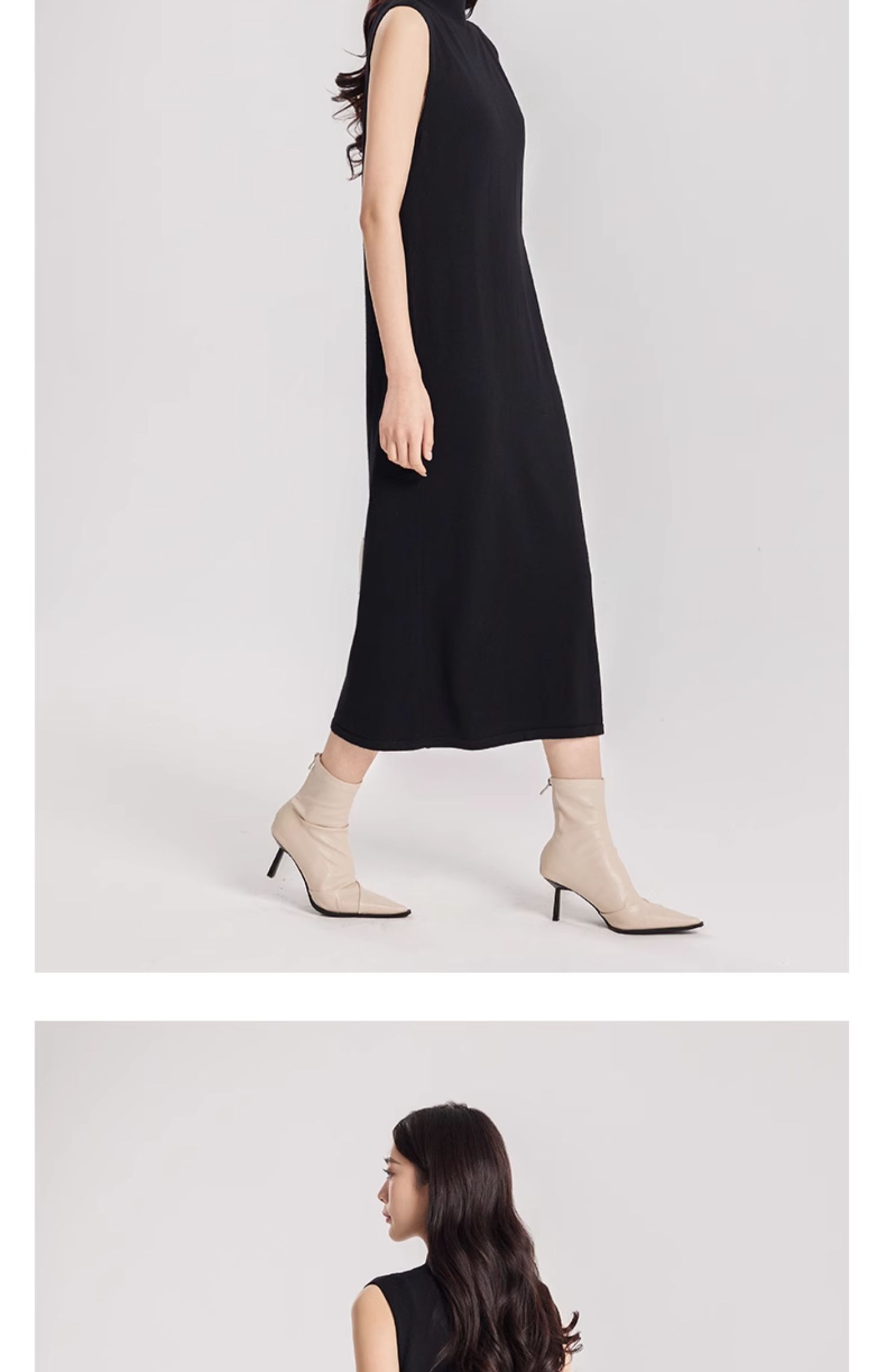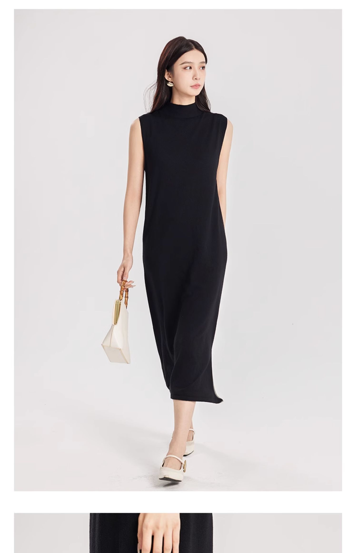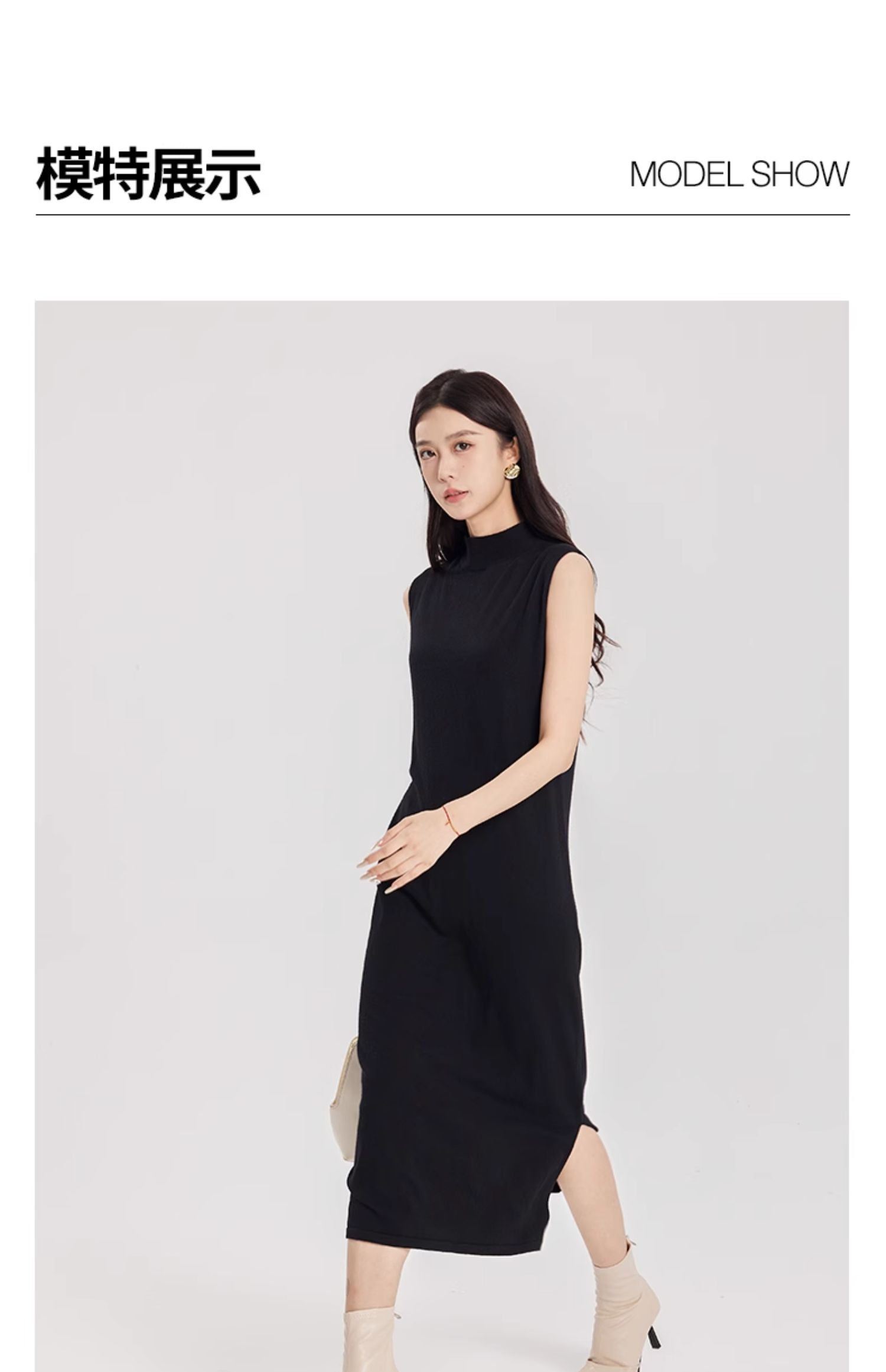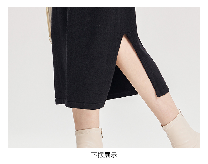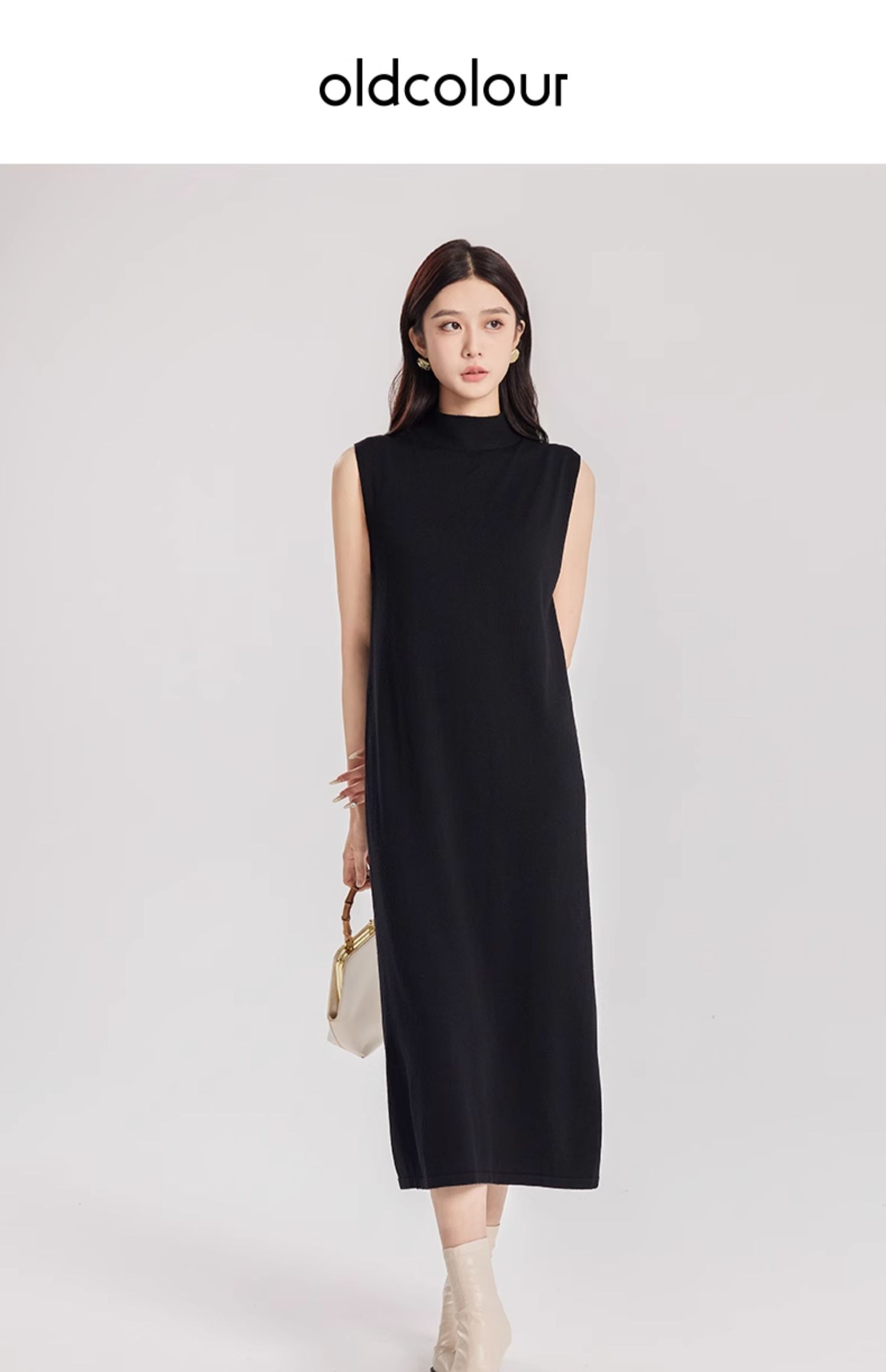 oldcolour春季新款黑色简约高级宽松半高领针织连衣裙女Q110513A1